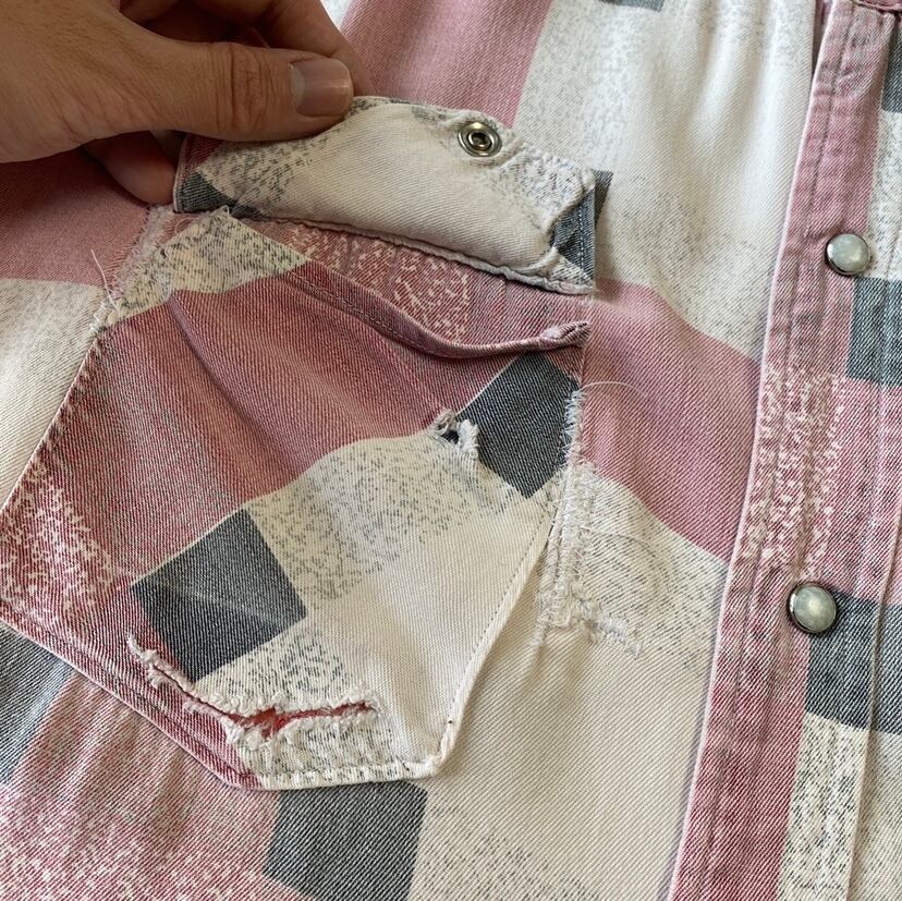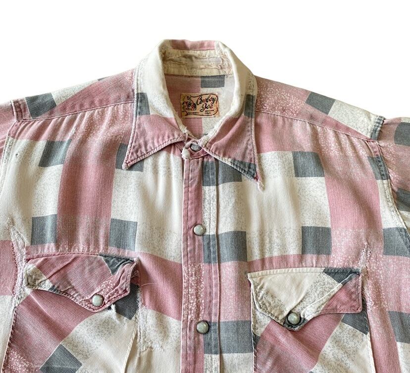 半袖のレーヨンウエスタンでこの配色、縮みの少ないサイズ感。リペアやダメージの入ったボロな状態含め雰囲気最高な一着です。