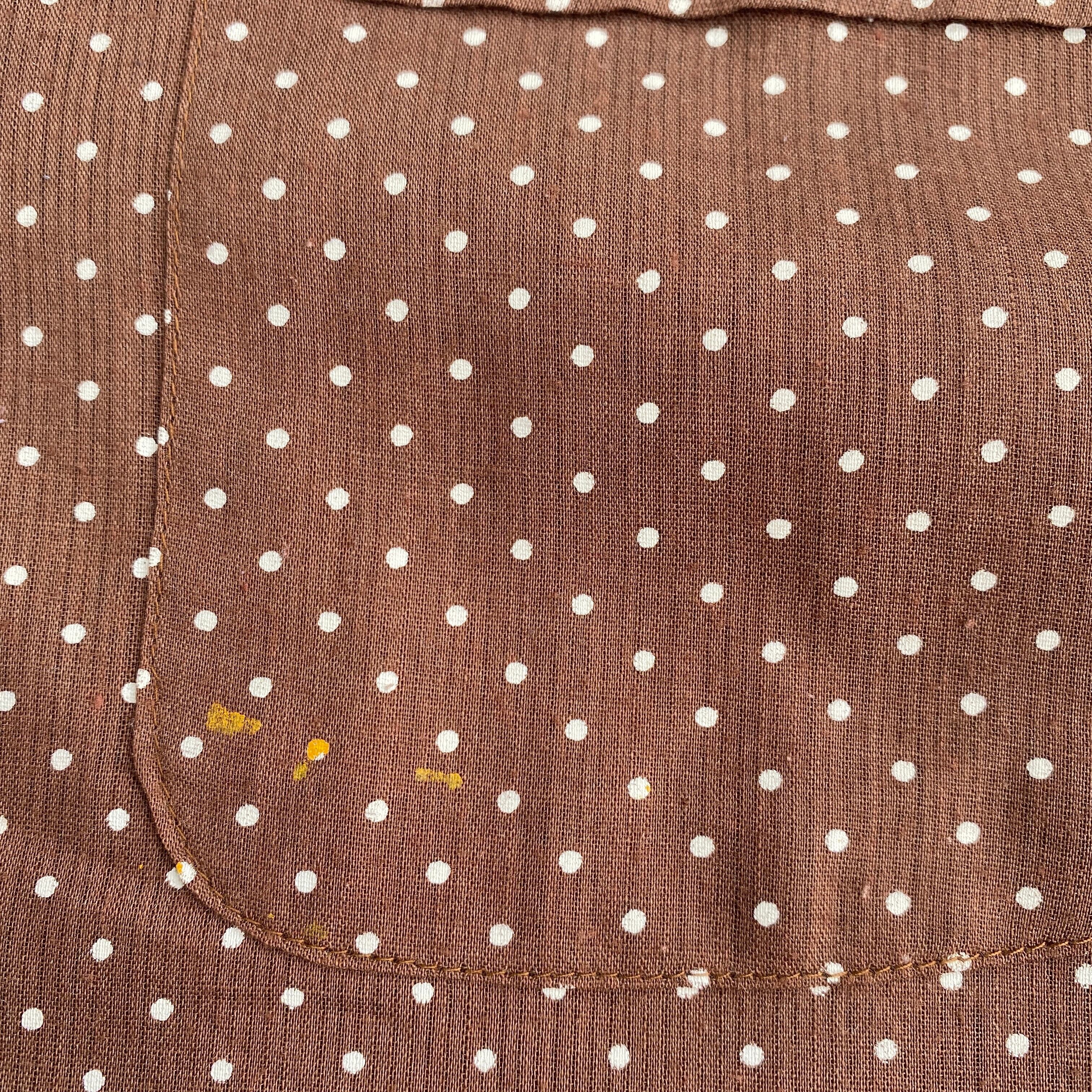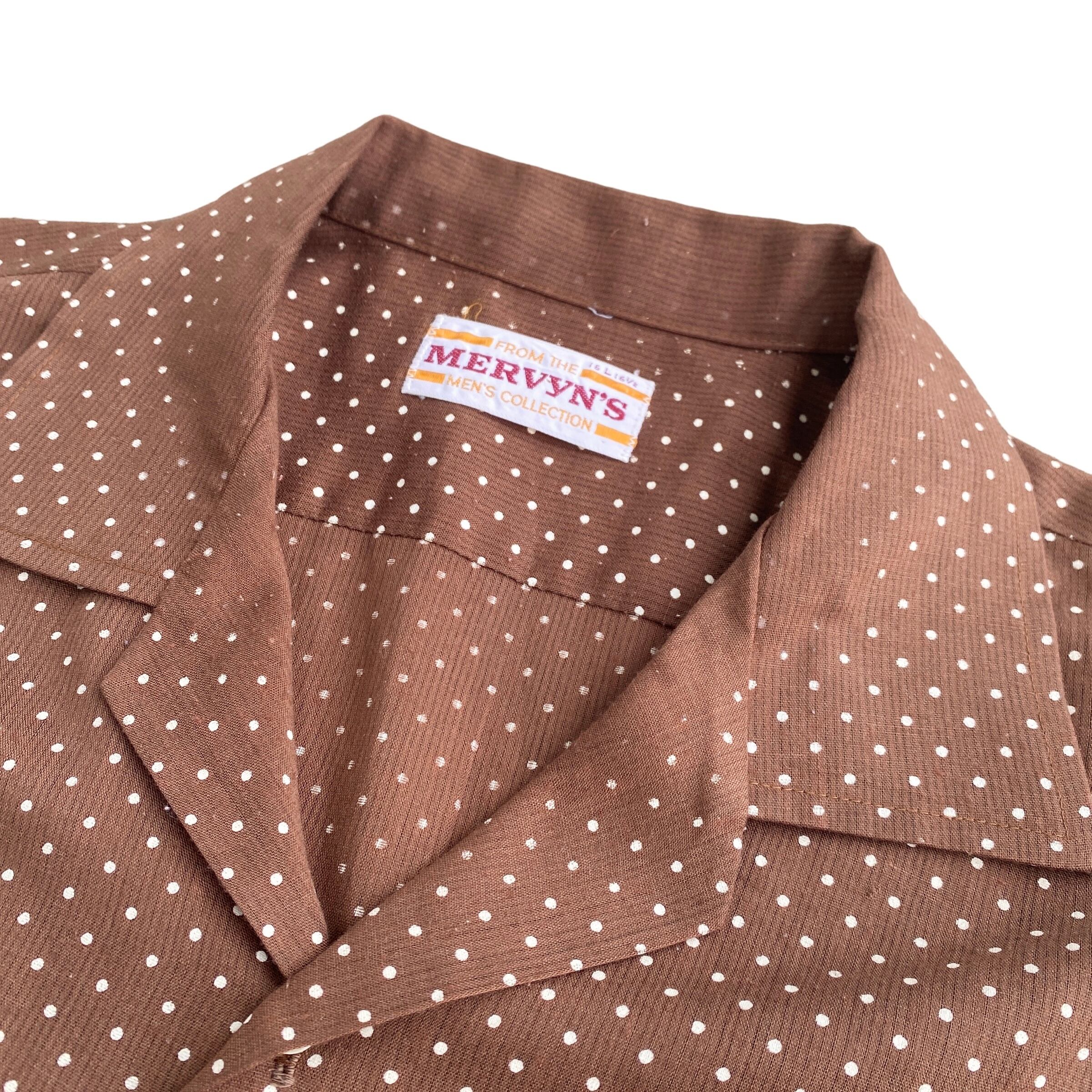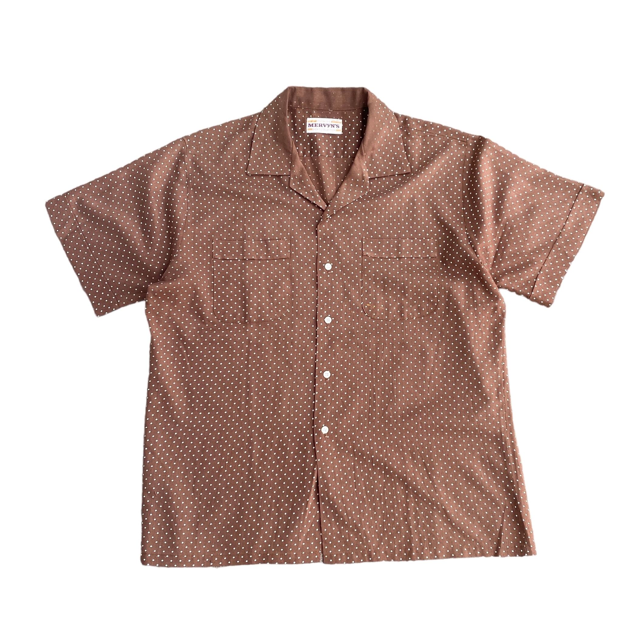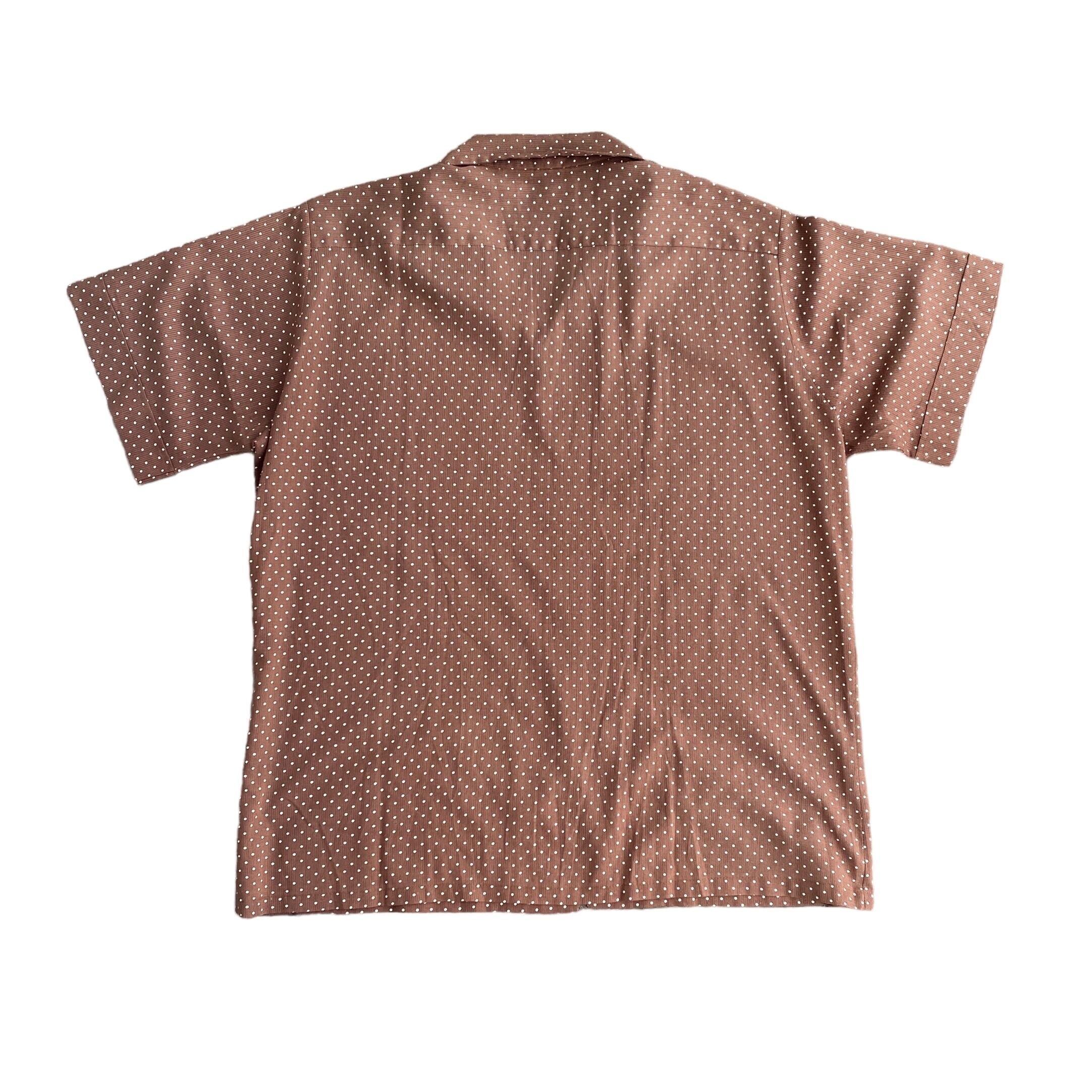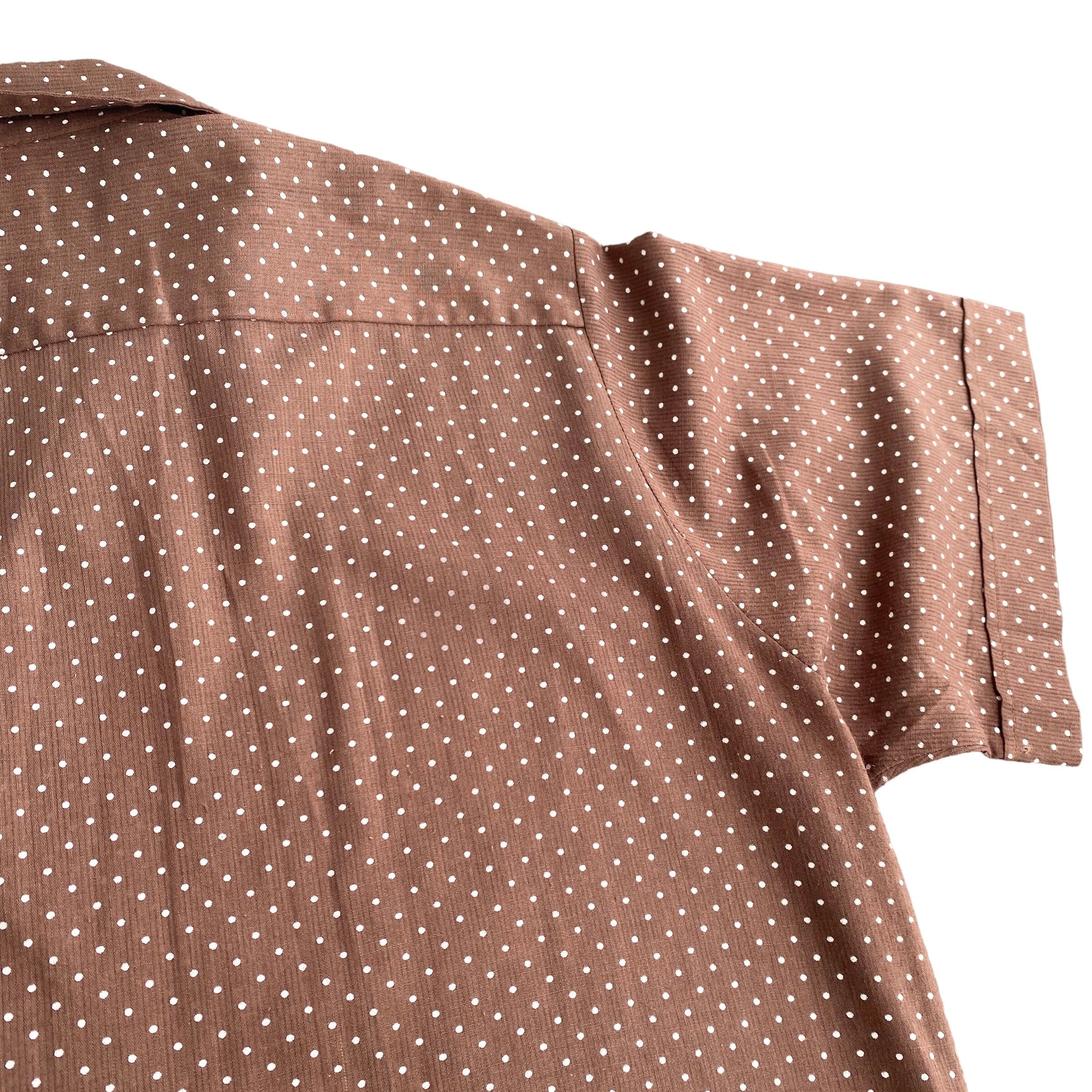 表記はないですが、おそらくポリコットン地のサラッとした素材感に、ブラウン×ホワイトのドットパターンが非常に格好良い一着。