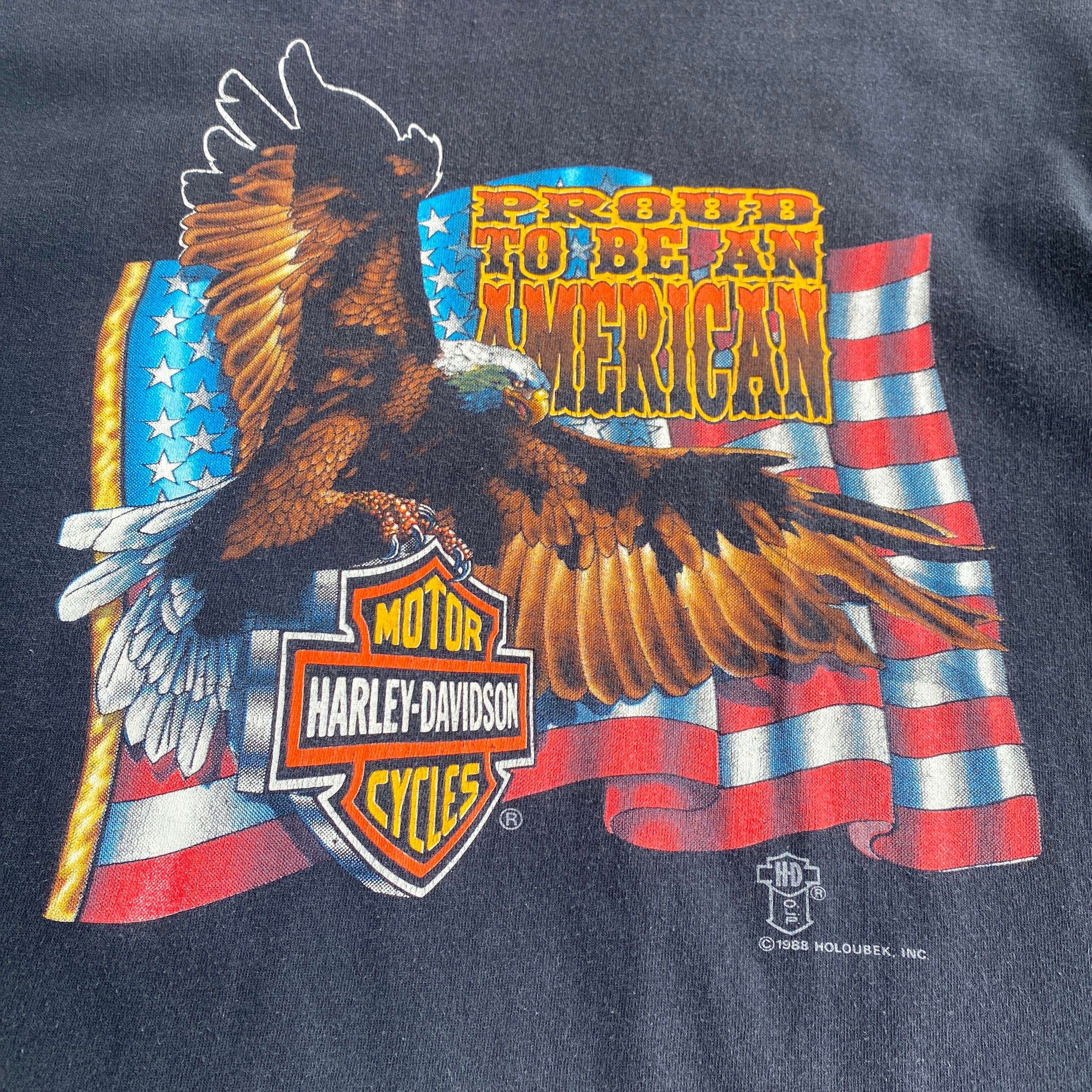 1980年代「ハーレーダビッドソン」のプリントTシャツになります。(表裏共に1988コピーライト)