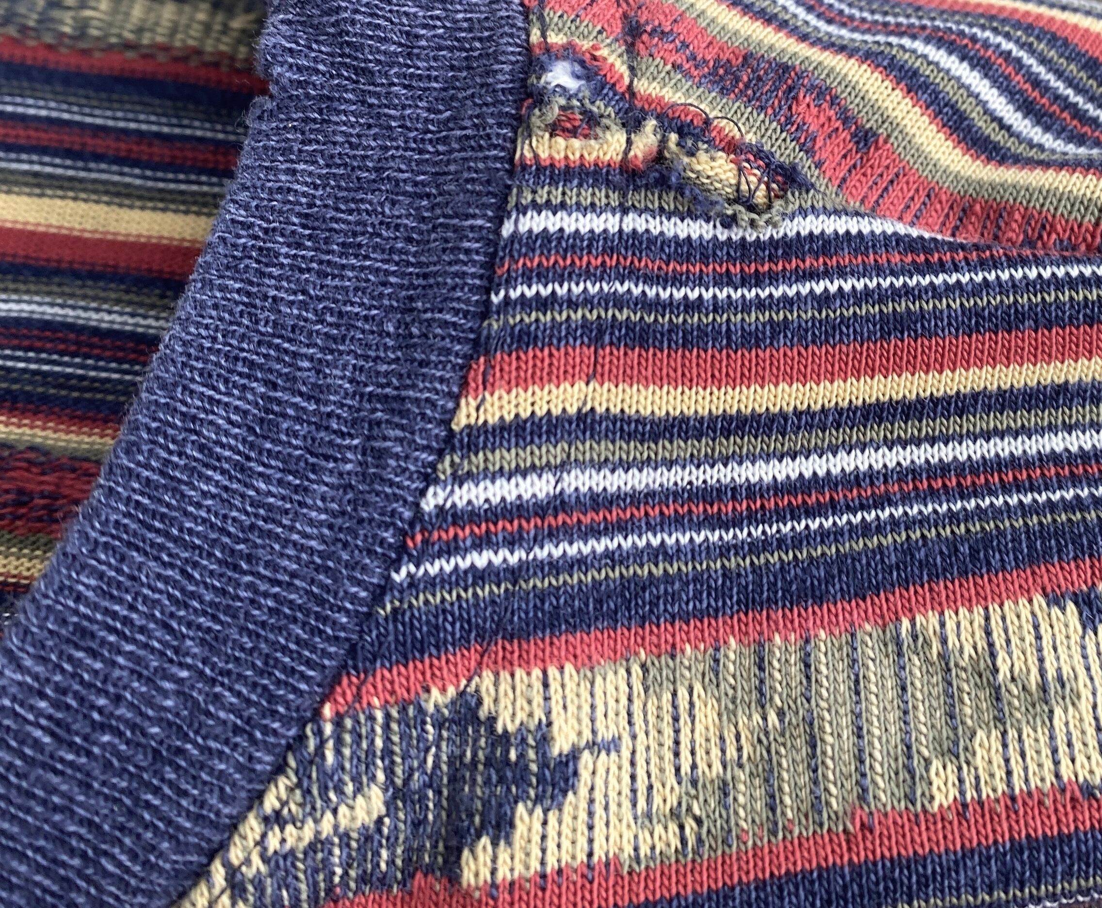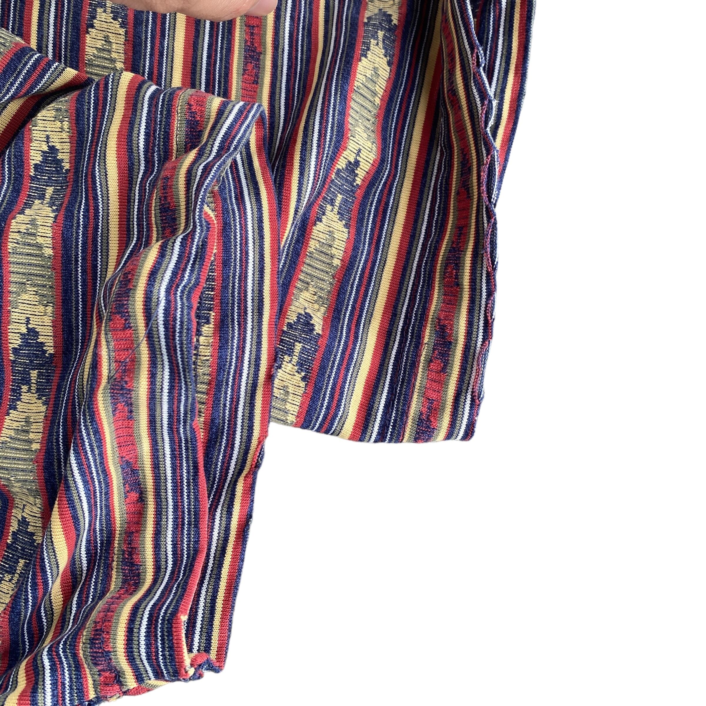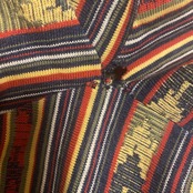 織柄で表現されたマルチボーダーパターンに、短丈ボックスなサイズ感が非常に格好良い一着。