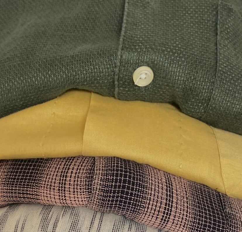 やや肉厚でフワッと柔らかな着心地の良いリネン素材に、上品なダークオリーブカラー(画像7の一番上が近いです)、丸みのあるゆったりとしたボックスシルエットが非常に格好良い一着。