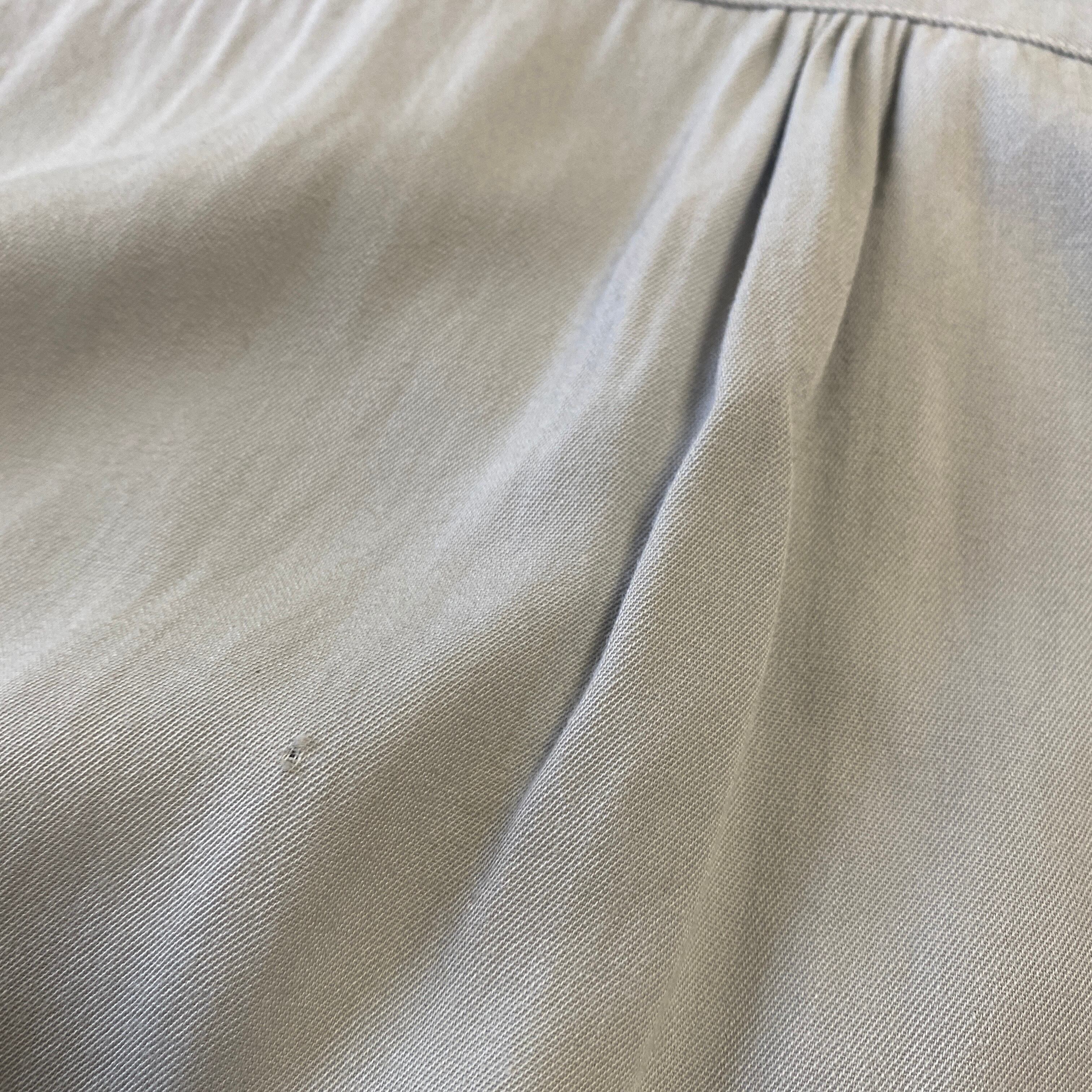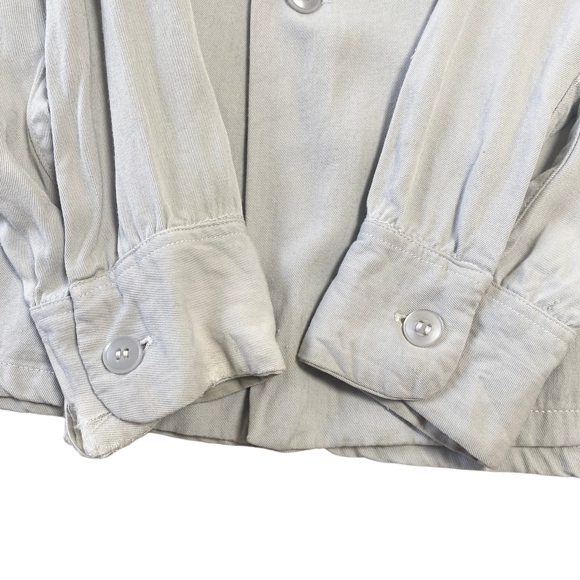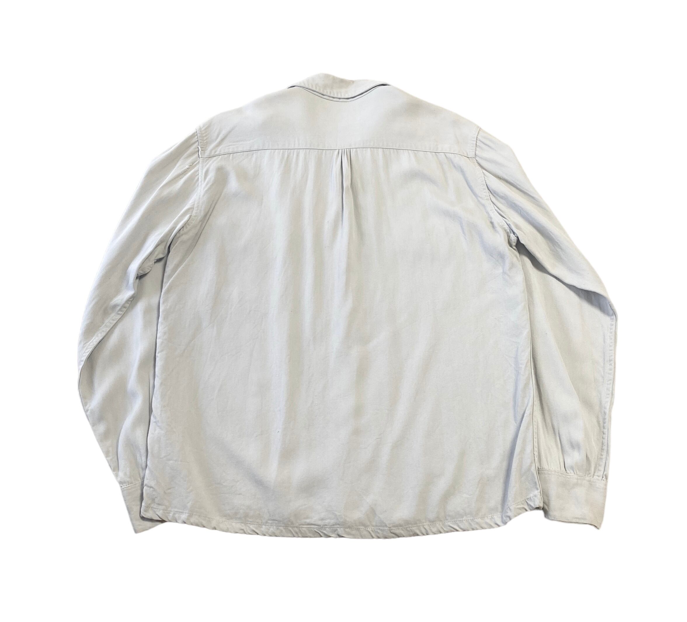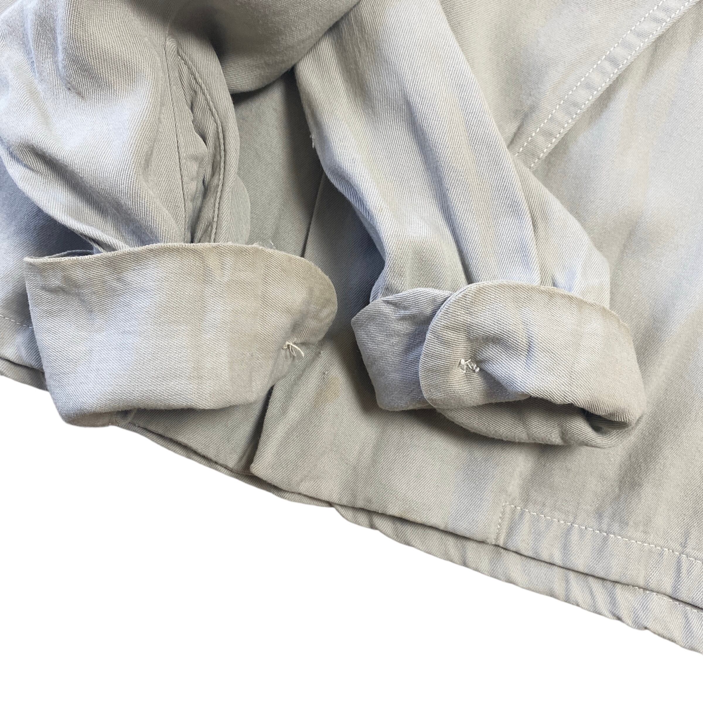 ギャバジン織の肉厚なレーヨン生地に、くすんだグレー系の色目が非常に格好良い一着。