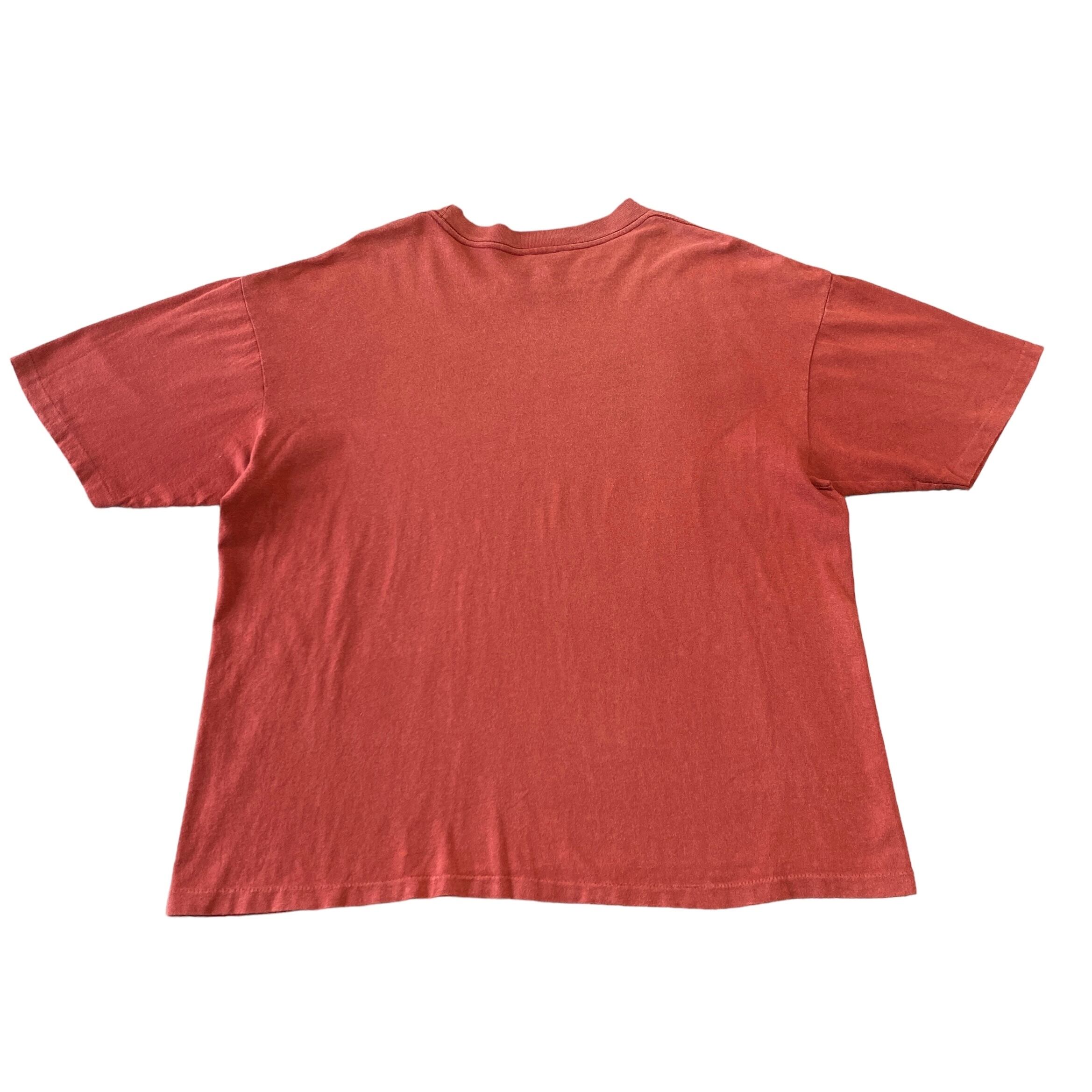 ポップでかわいいロゴデザインに、フェードしたレッド〜オレンジ(朱色)系の色目、短丈ボックスなシルエットが非常に格好良い一着。