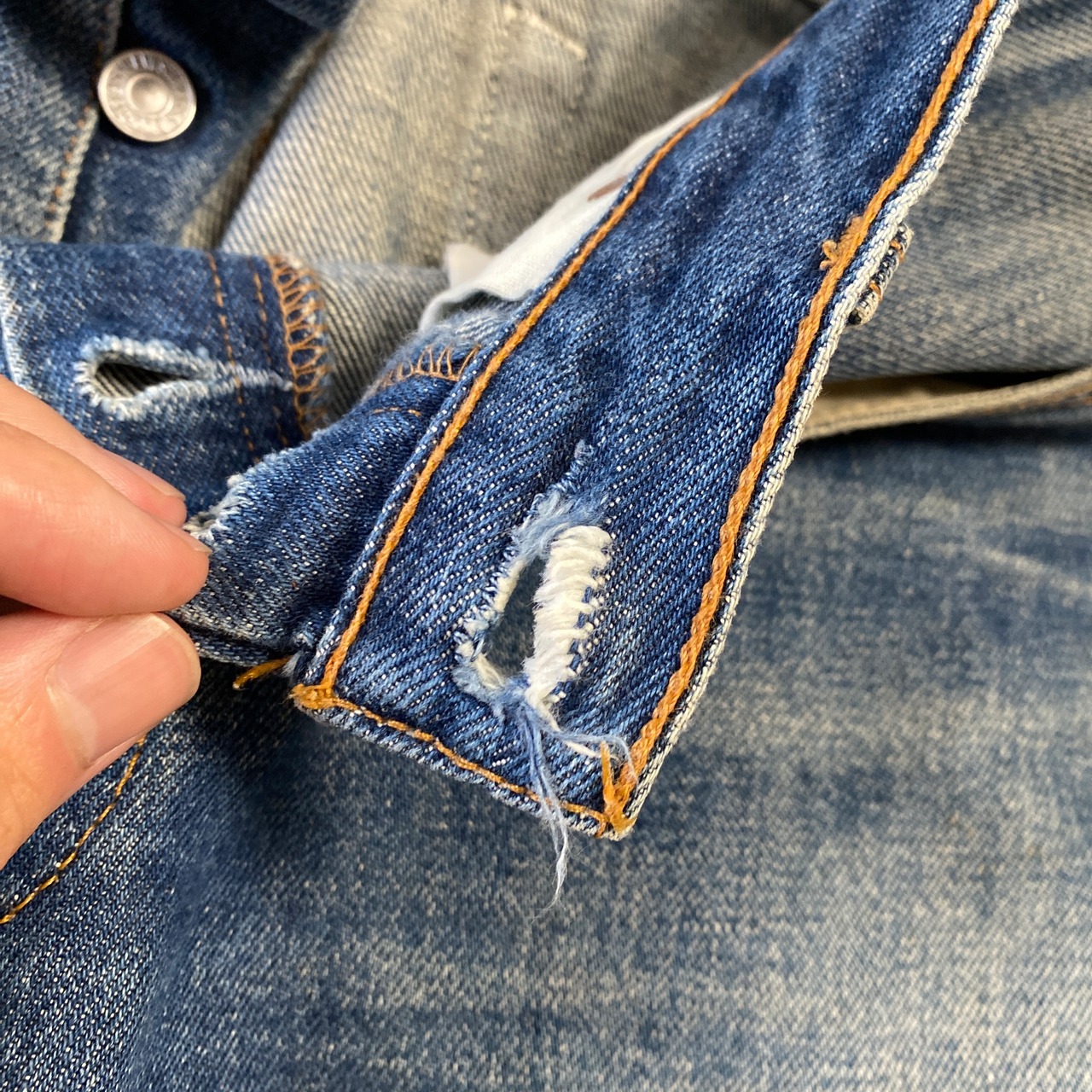 状態/画像参照。膝にダメージはありますが、股などの致命的なものはなく、雰囲気良く仕上がった一本です。