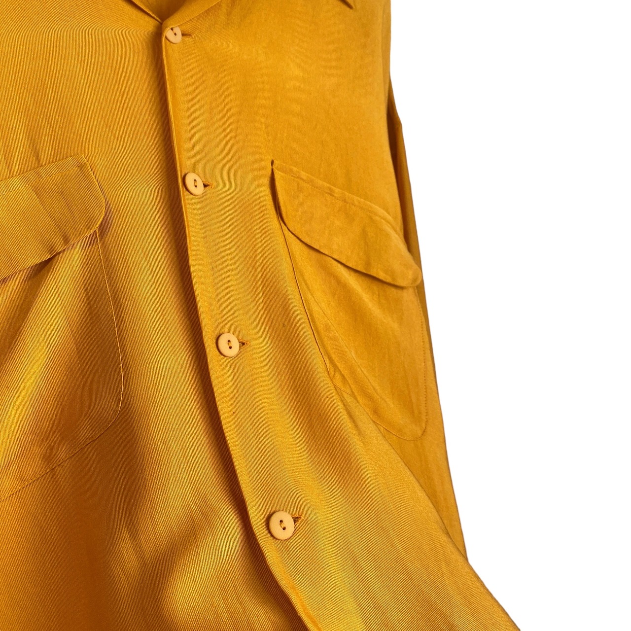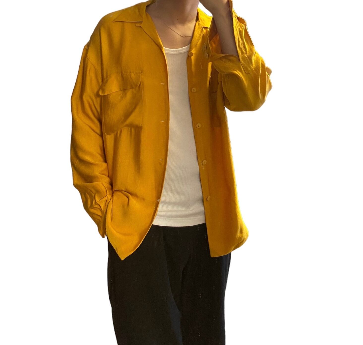 ややくすみがかったようなビタミンカラーに、70sのディスコシャツのようなニットソーライクなドレープ感のある生地が非常に格好良いです。