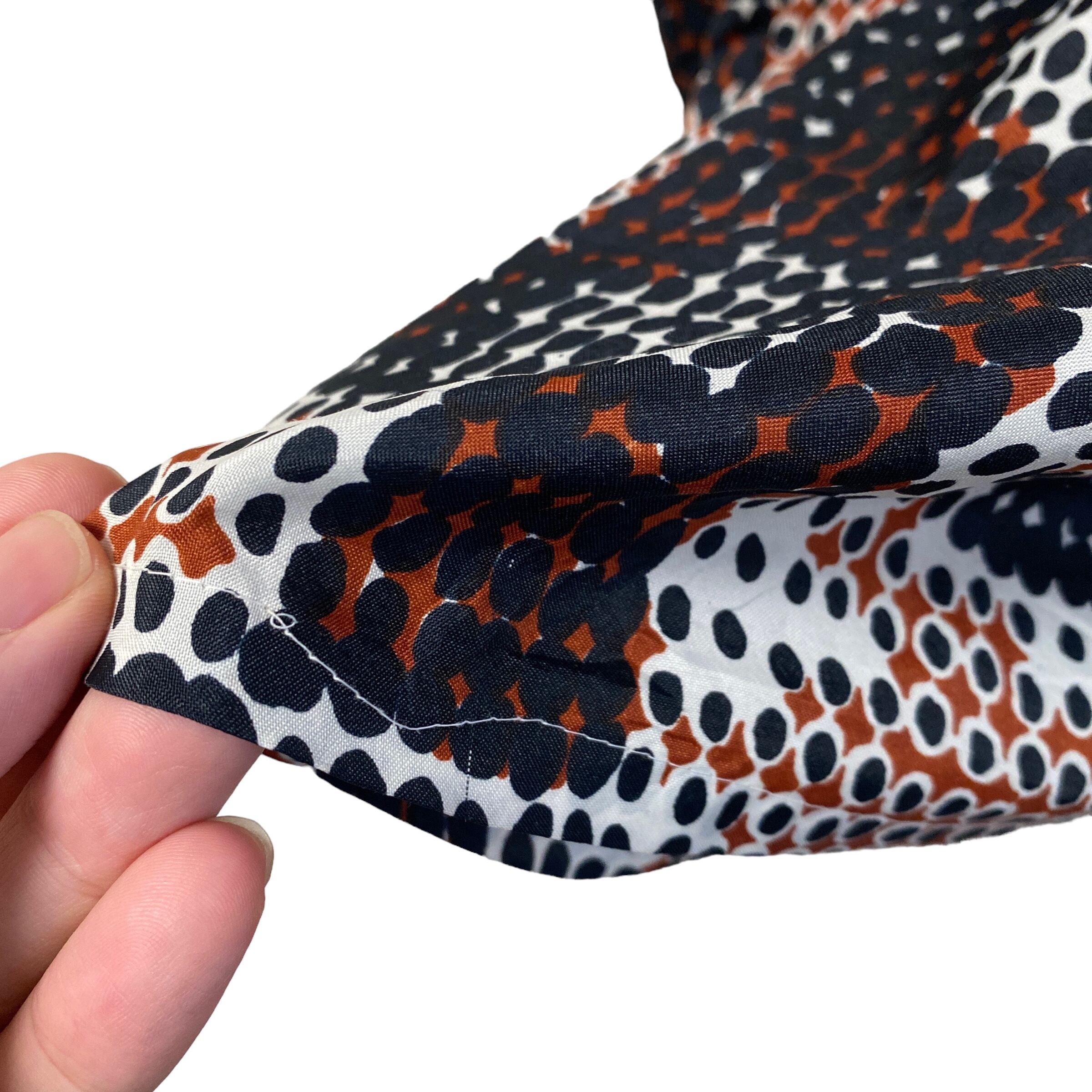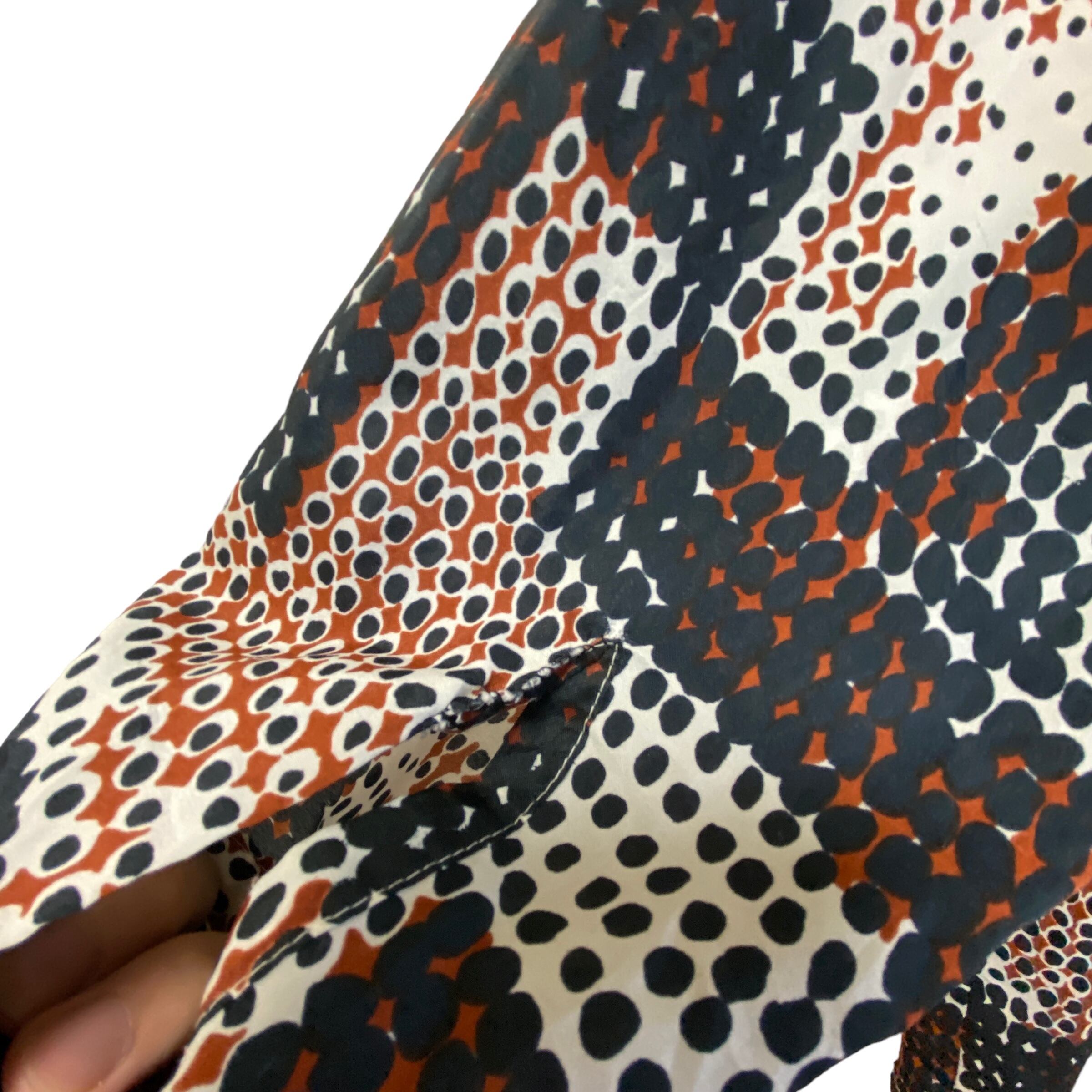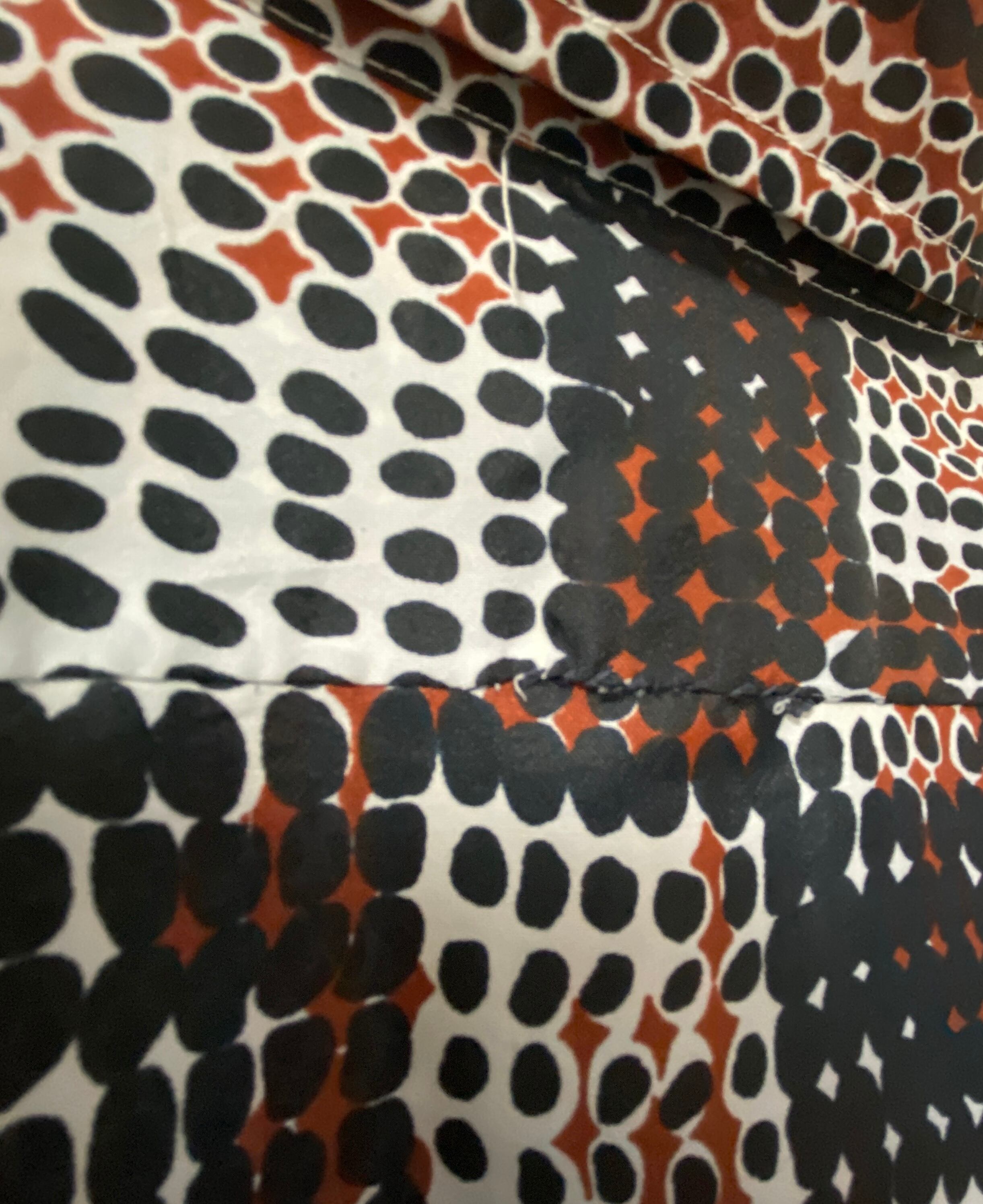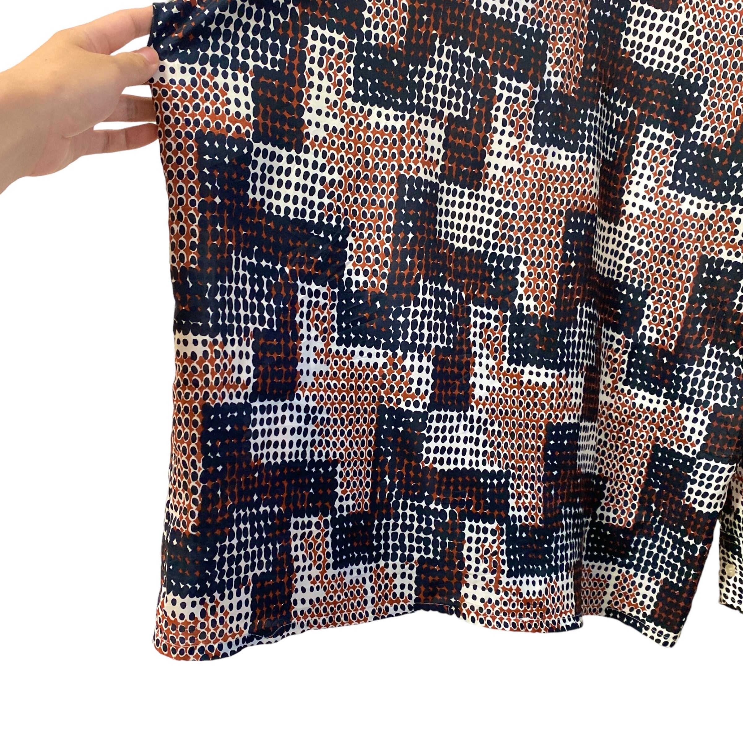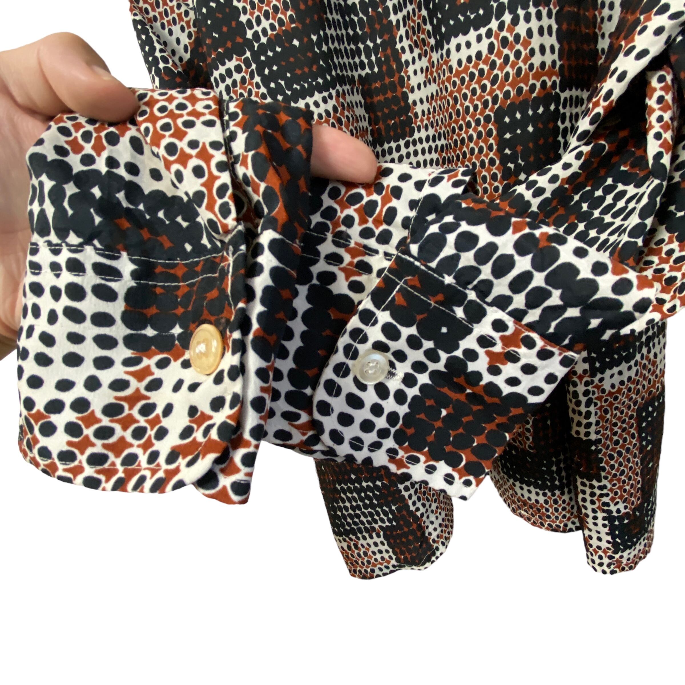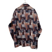 ホワイト×ブラック×ブラウンの幾何学柄(色目は近目の写真が近いです)に、ボックスカットでゆったりとしたシルエットが非常に格好良い一着。