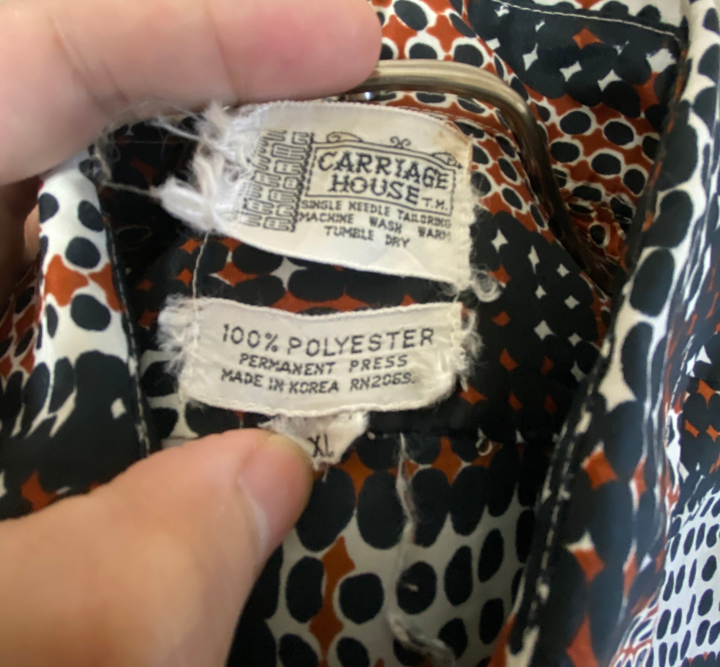 1970年代頃のCARRIAGE HOUSEポリエステルディスコシャツになります。