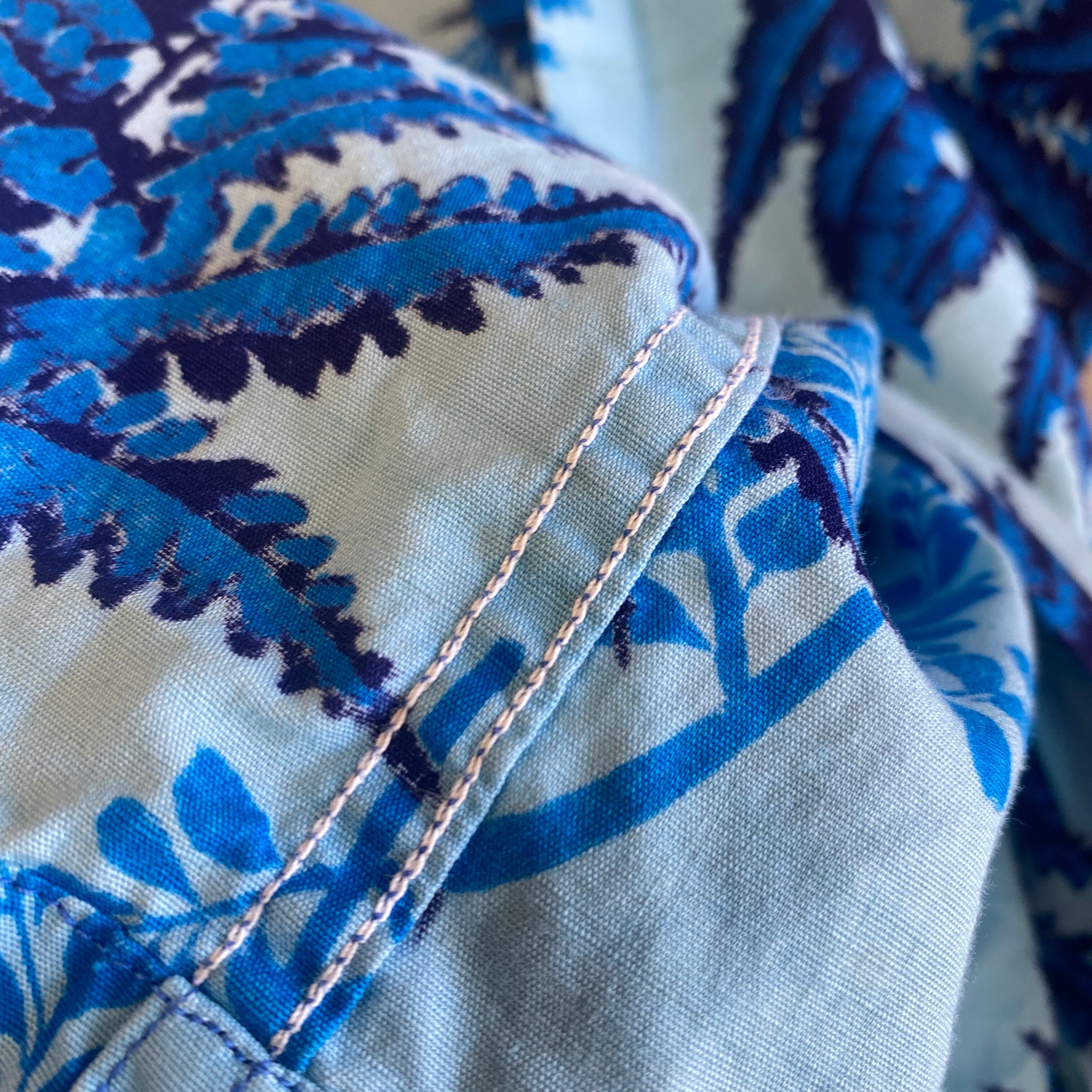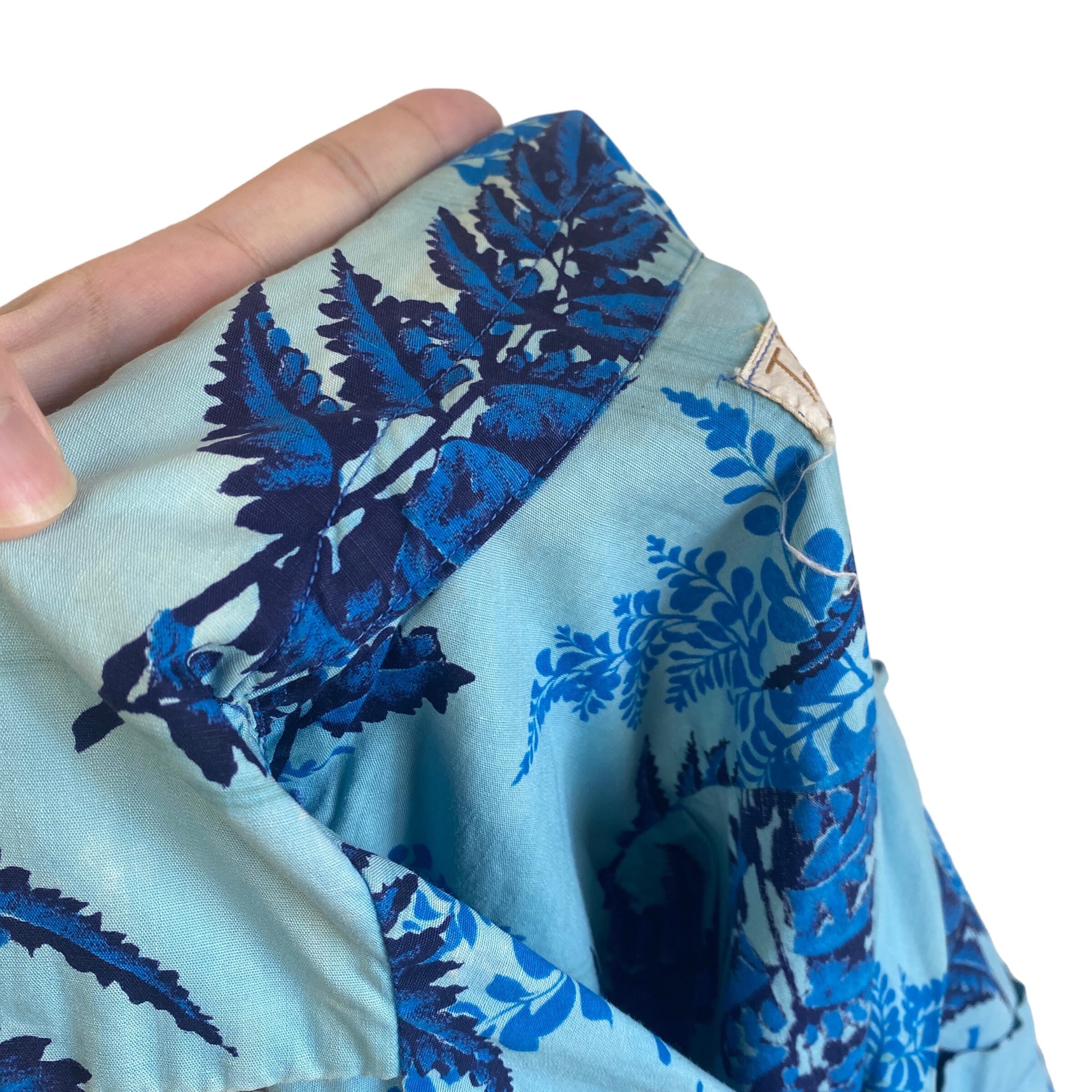 さまざまなトーンのブルーを使用し、ボタニカルパターンが繊細に描かれた非常に美しい一着。