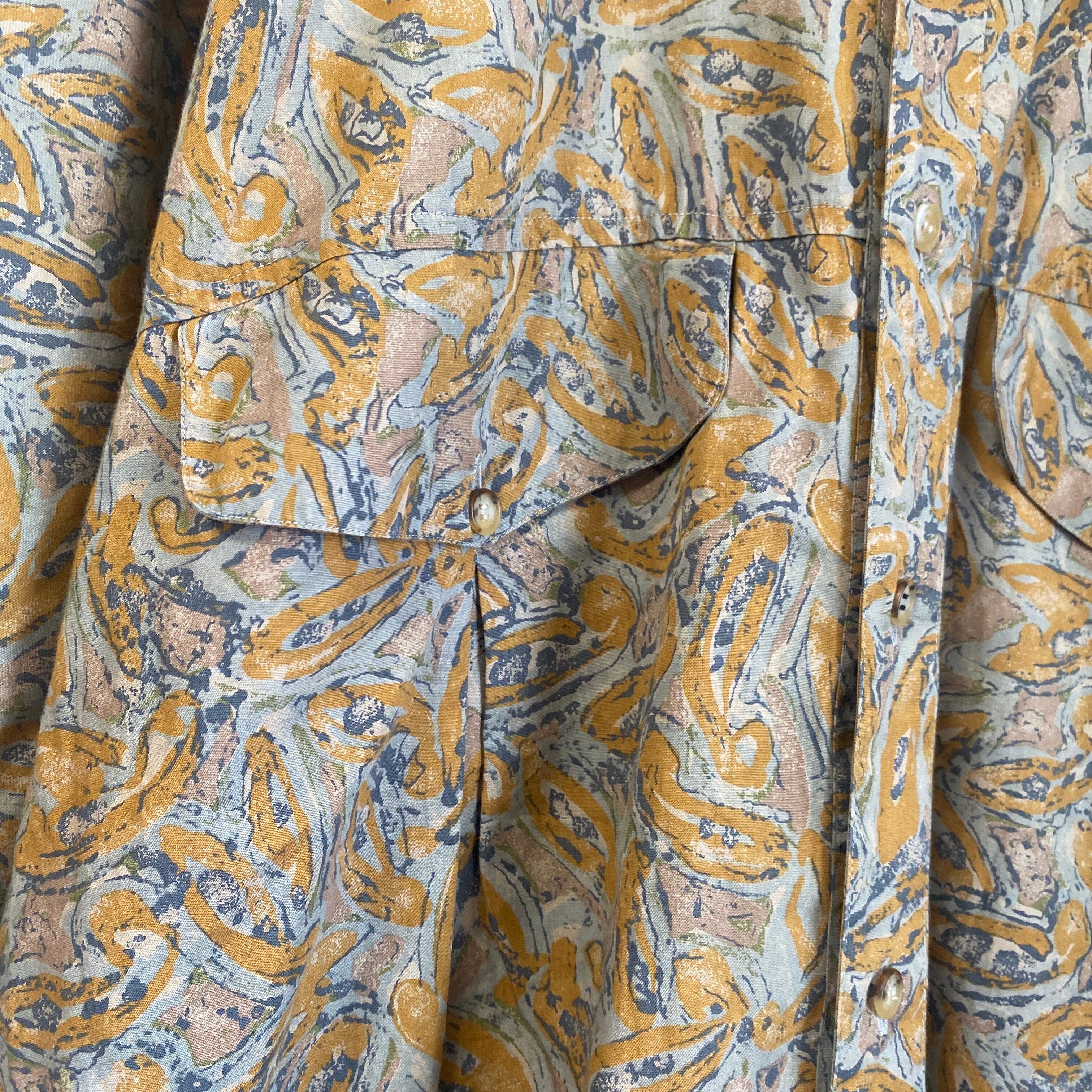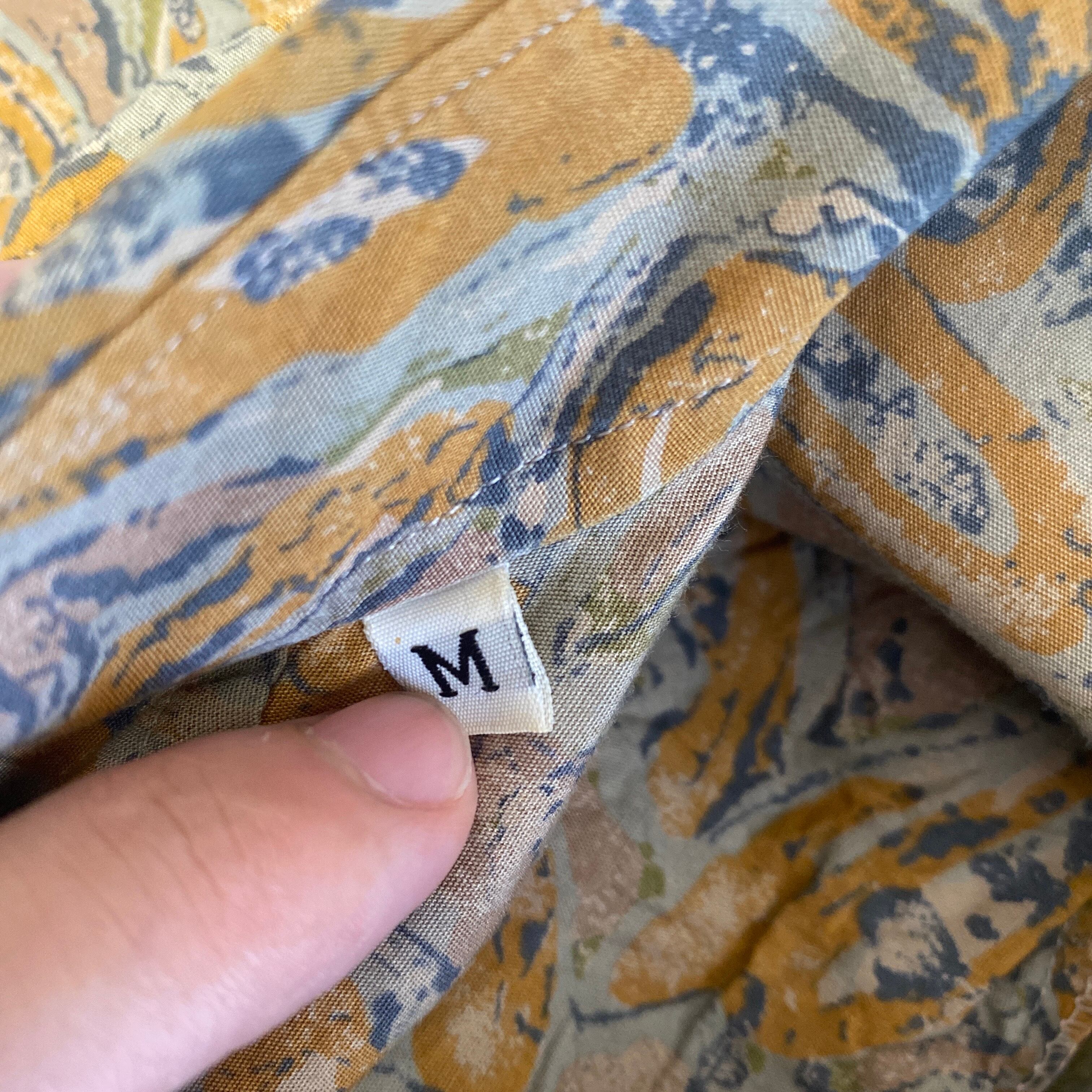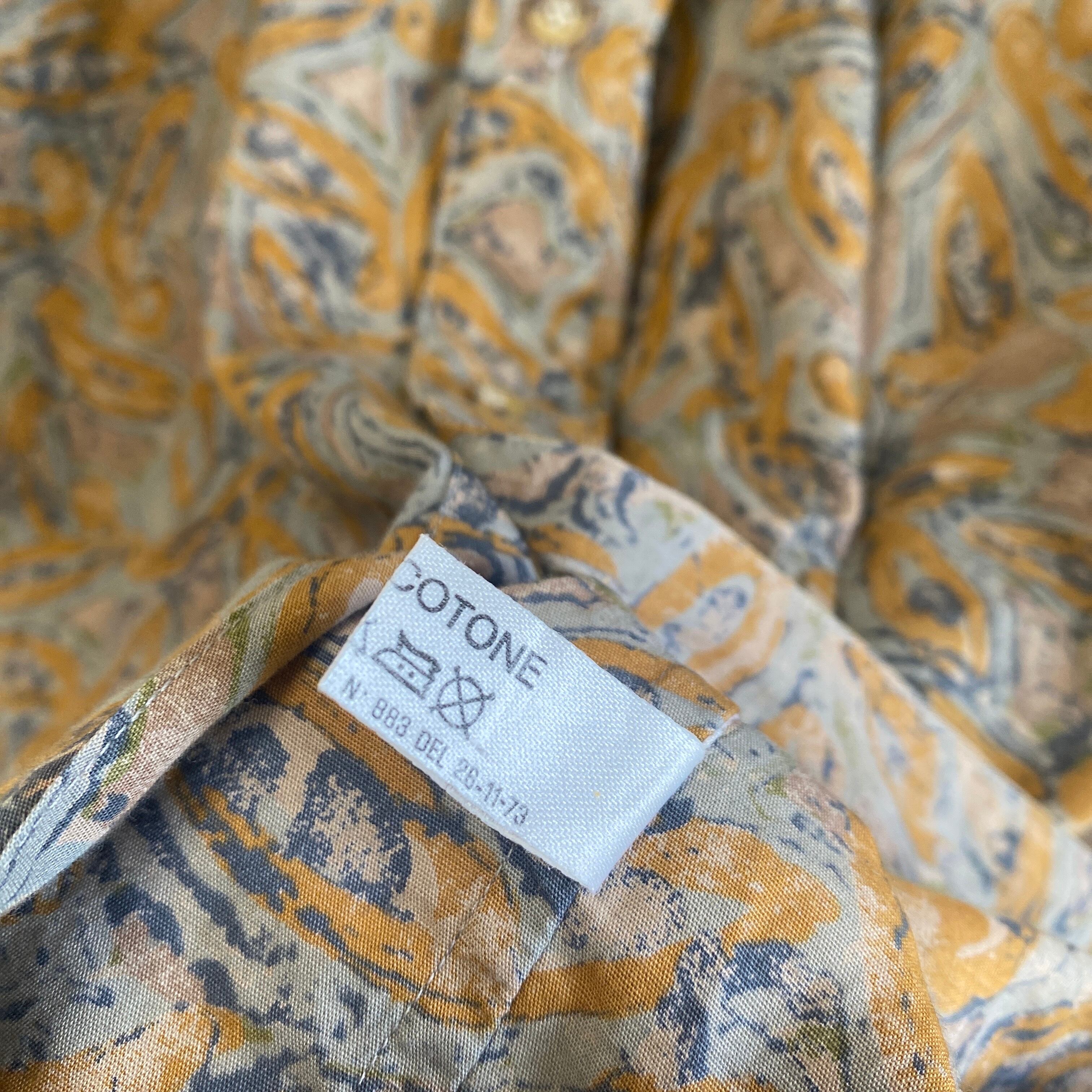 比較的薄手で柔らかい上質なコットン素材に、ペイズリーの総柄、ラウンド緩めで丸みのあるゆったりとしたボックスシルエットが非常に格好良い一着。