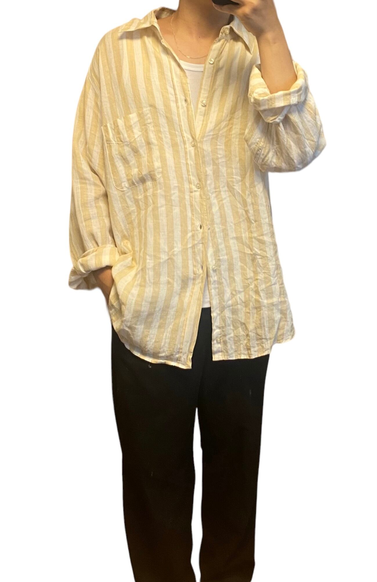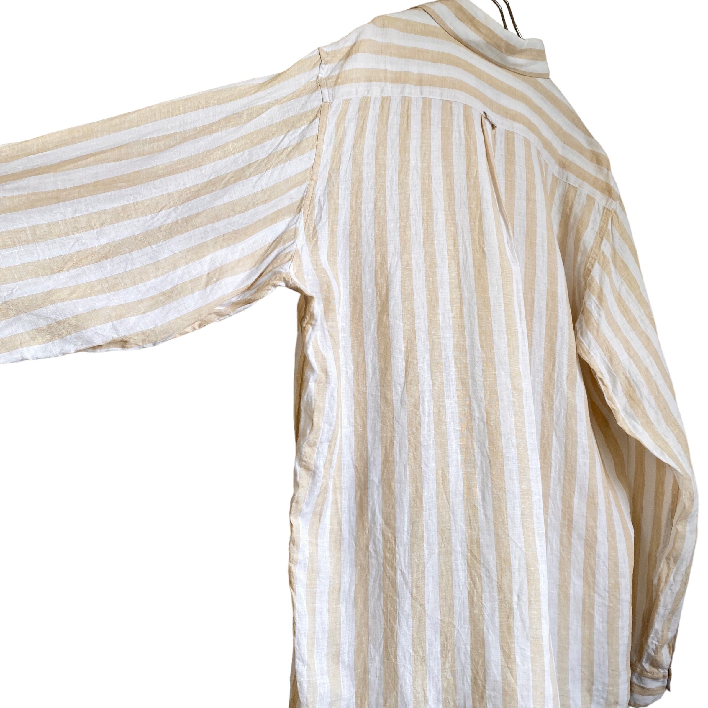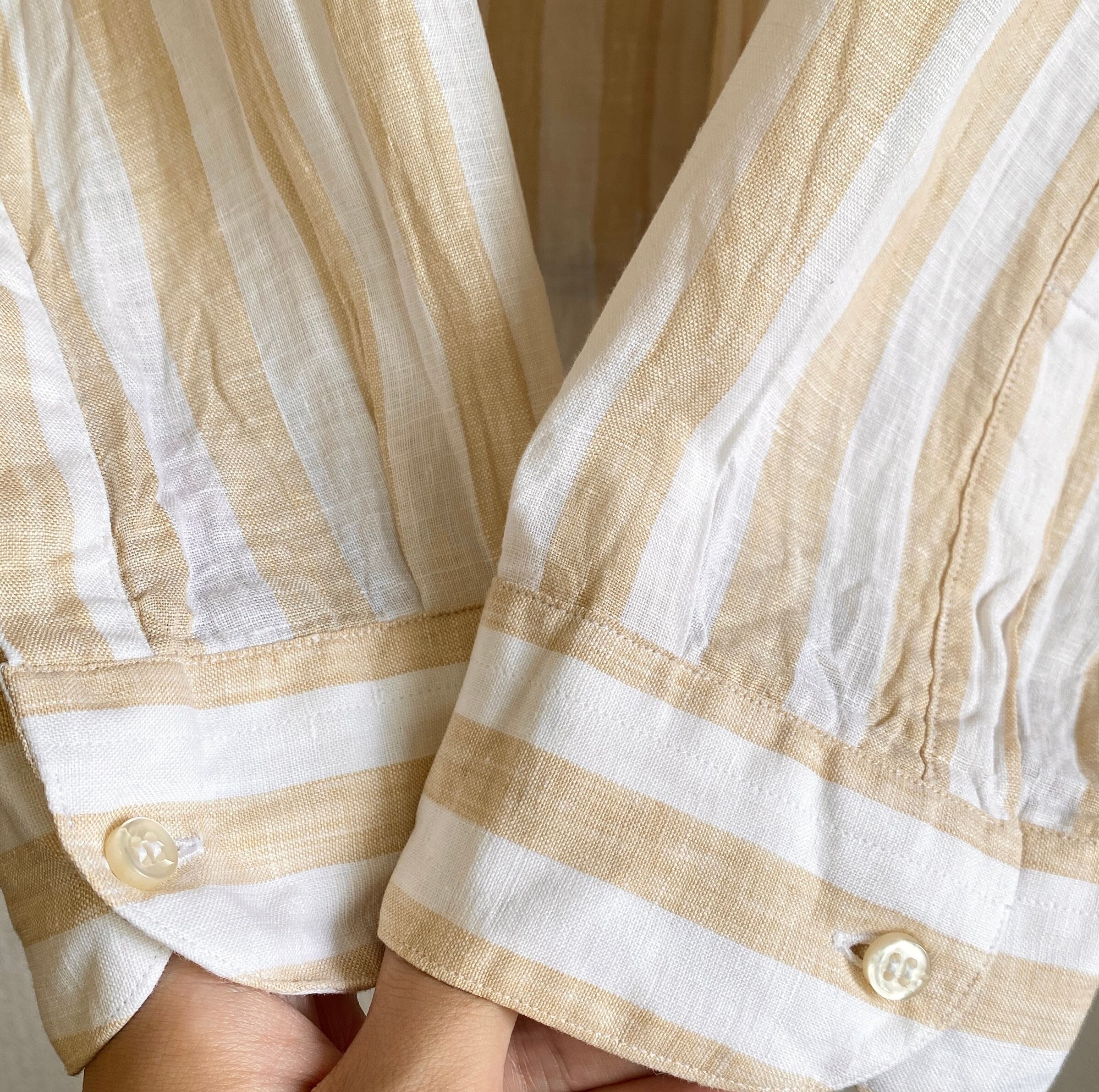 パリッとした肉厚で上質なリネンに、肉厚なシェルボタン、ゆったりとしたオーバーサイズシルエットが素晴らしいです。