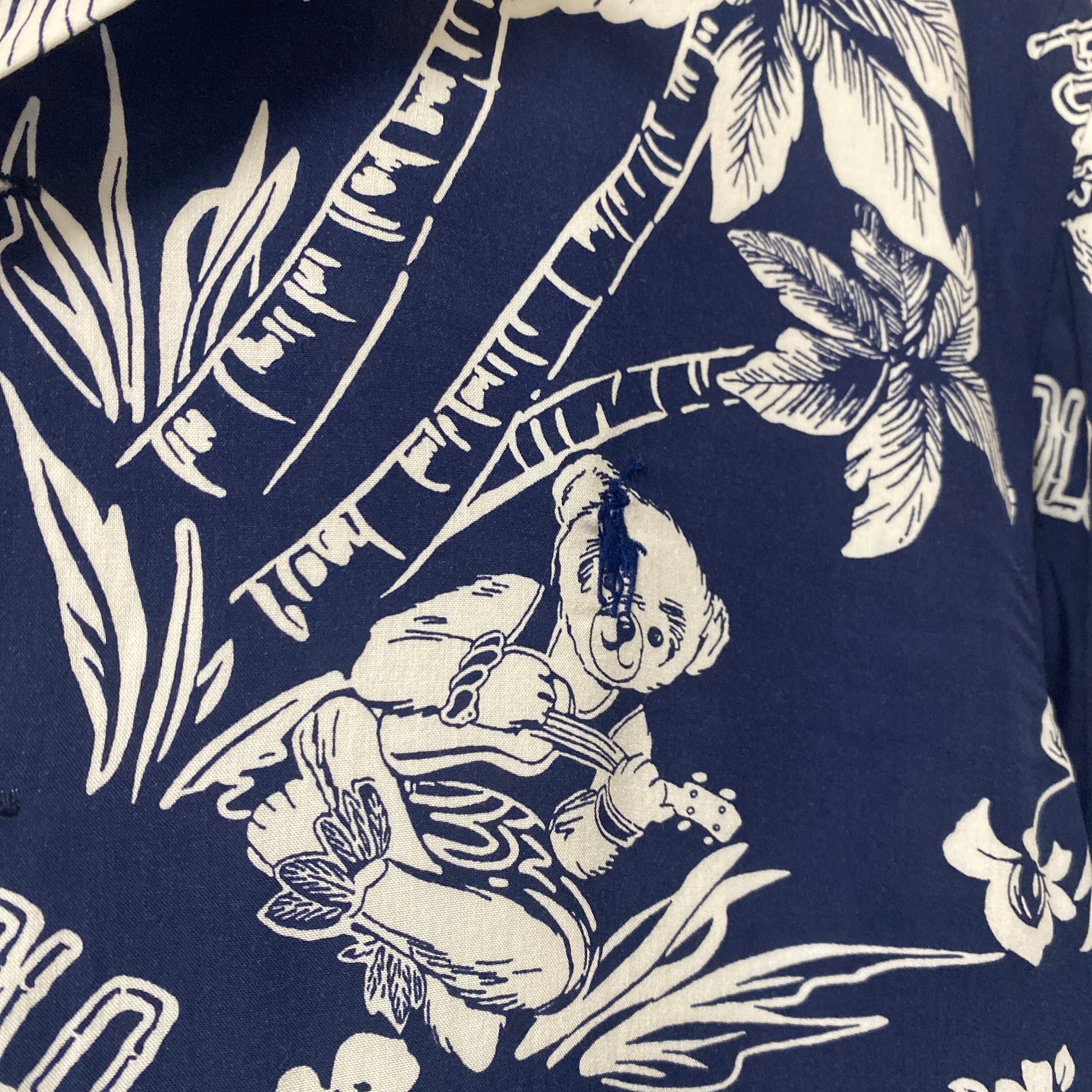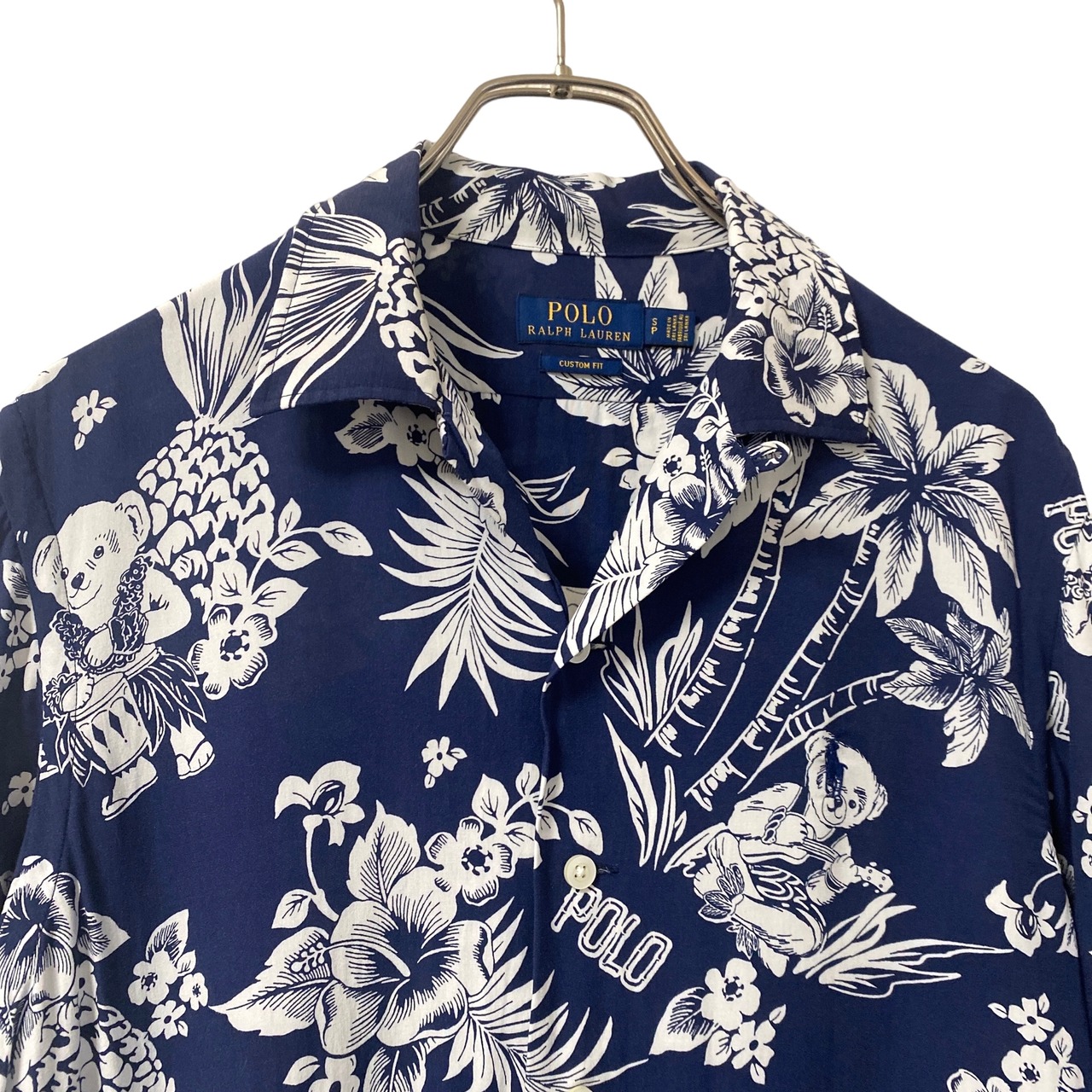 ネイビー×ホワイトの上品な色目に、ボタニカル×ポロベアーの総柄デザインが非常に格好良い一着。