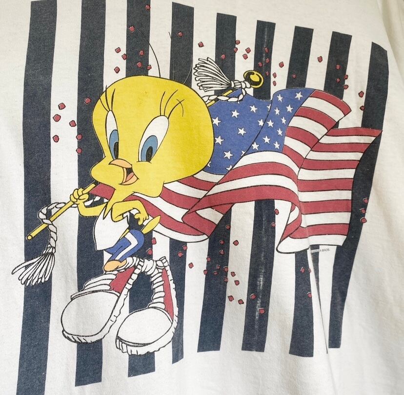 ホワイトボディに、星条旗を担いだトゥイーティーのプリントが非常にかわいい一着。