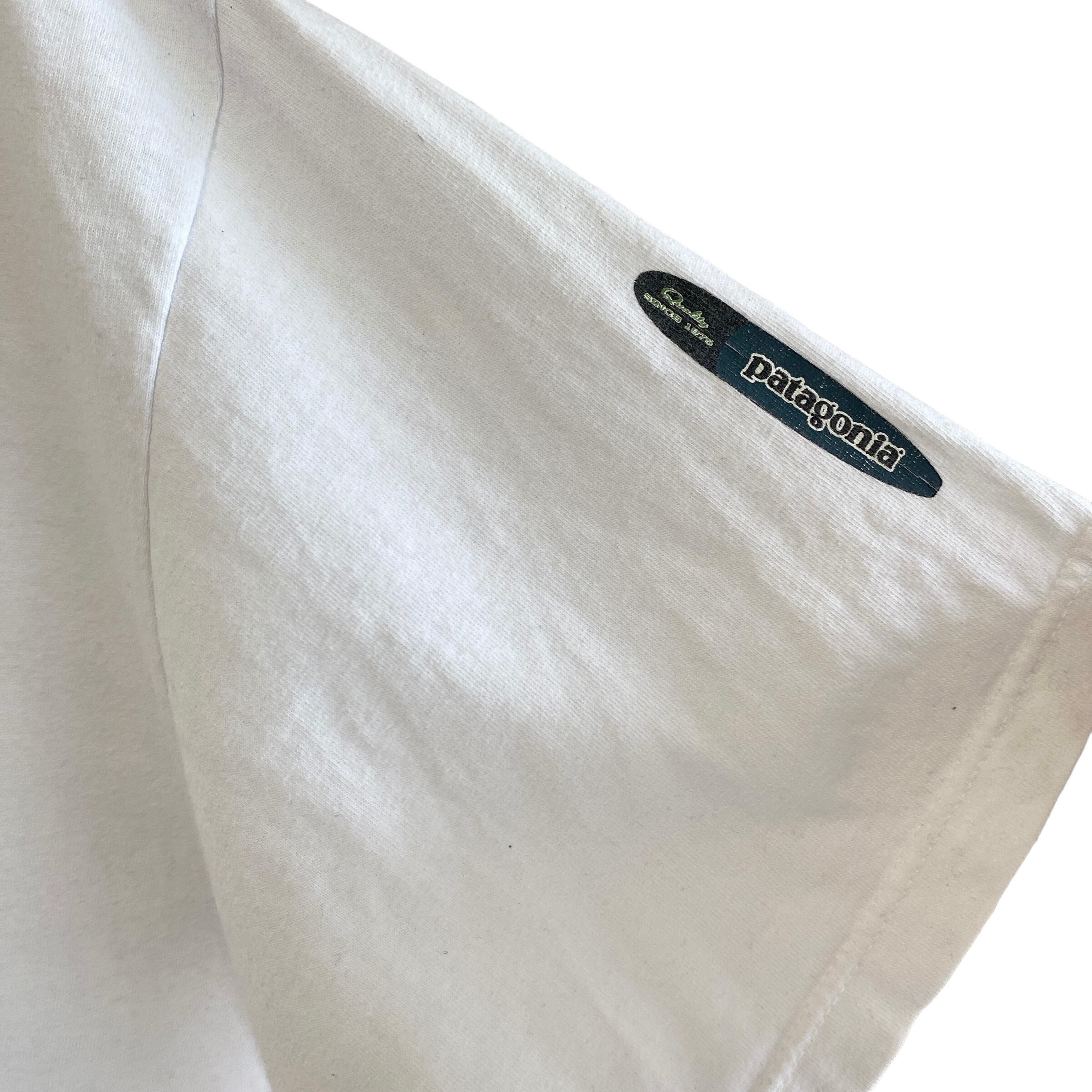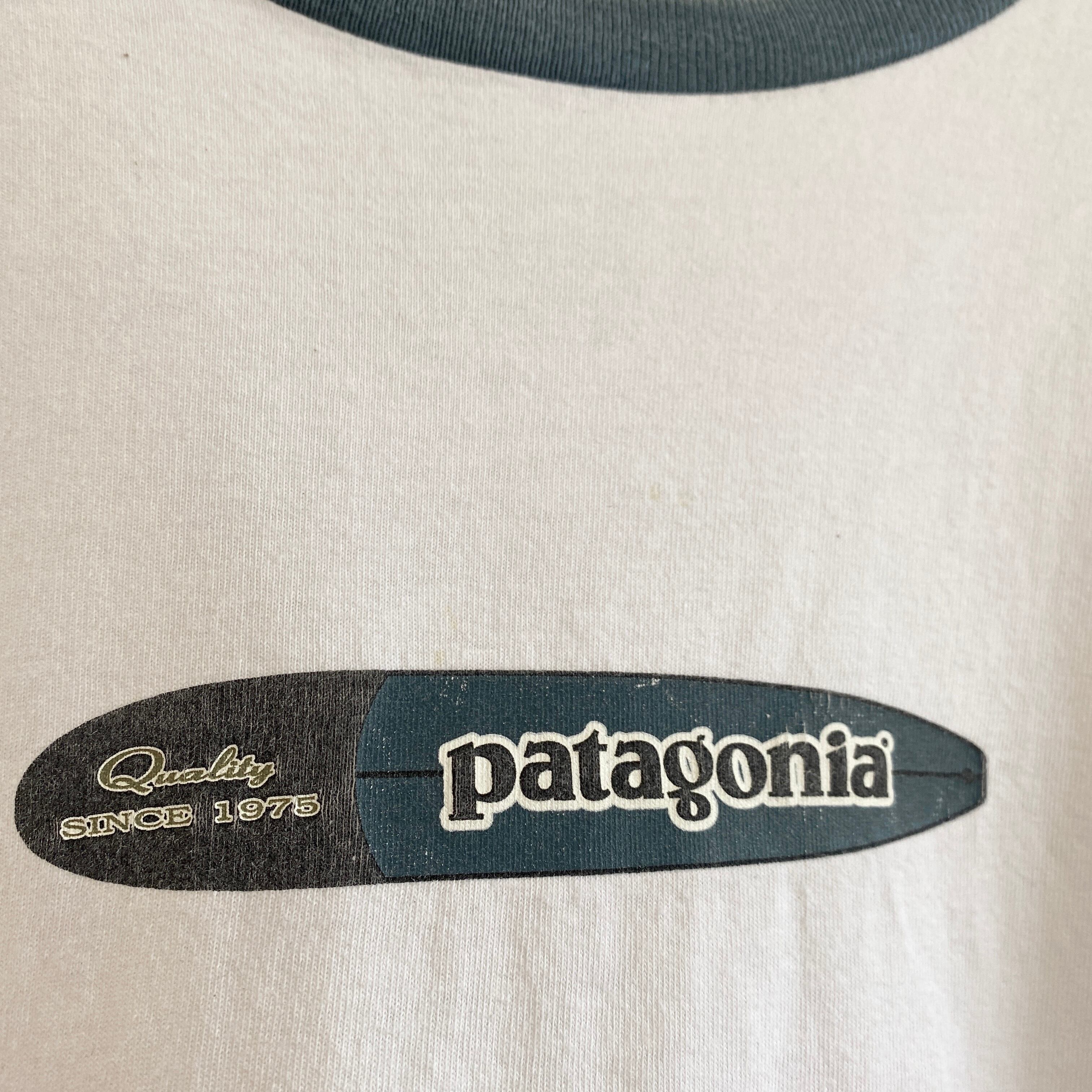 1990年代頃のアメリカ製「パタゴニア」BENEFICAL T'SロゴプリントリンガーTシャツになります。