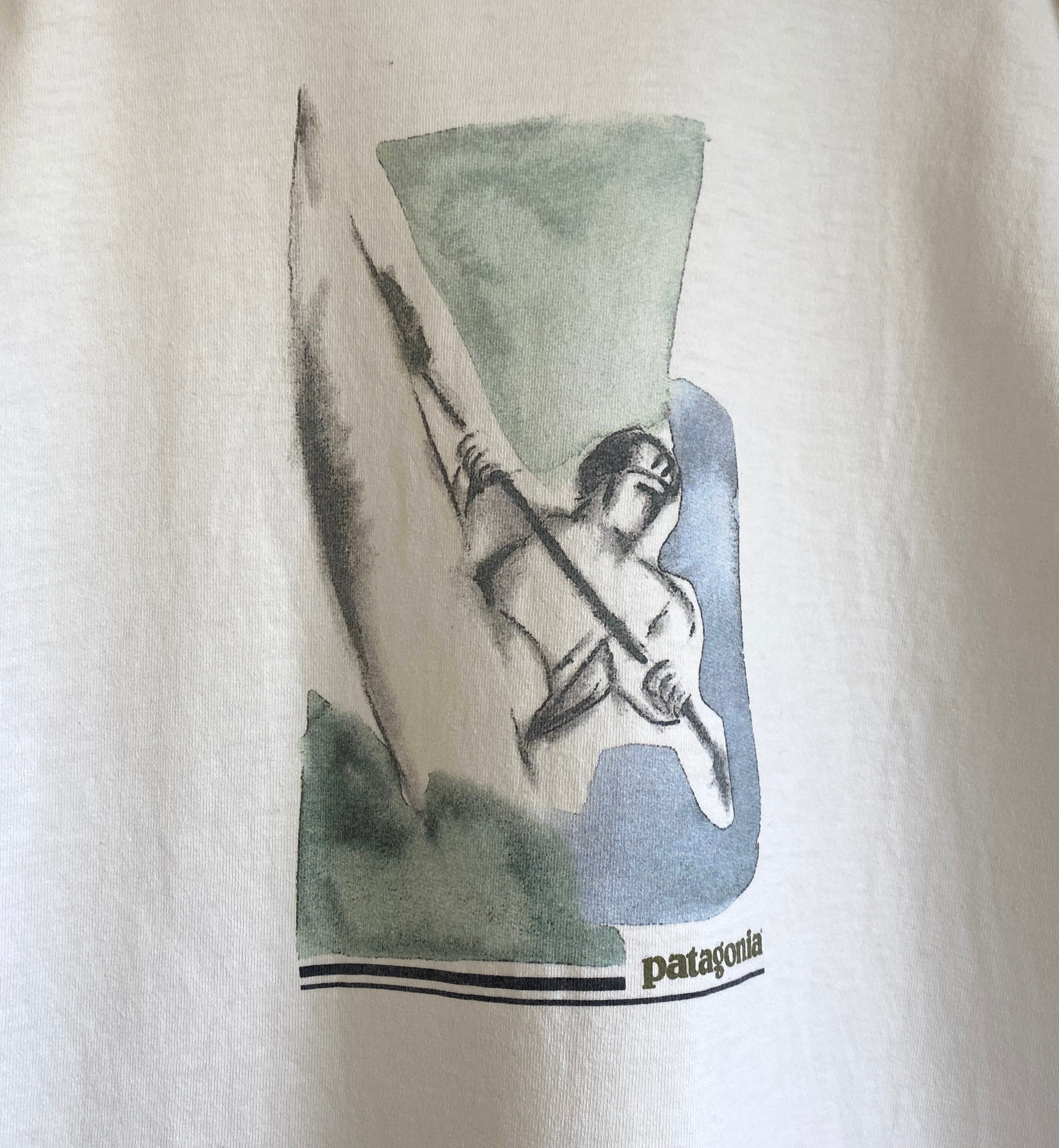1990年代頃のアメリカ製「パタゴニア」BENEFICAL T'SデザインプリントTシャツになります。