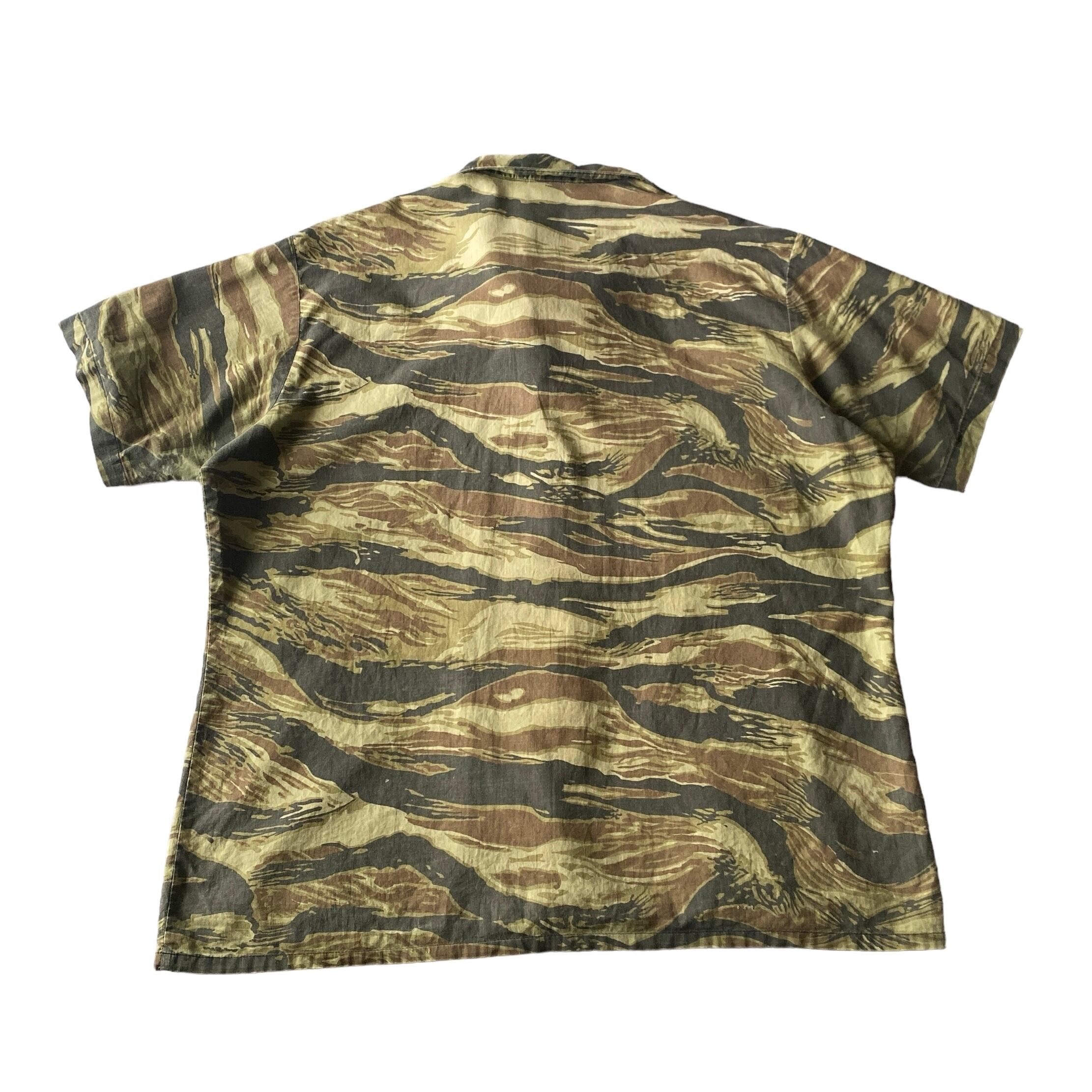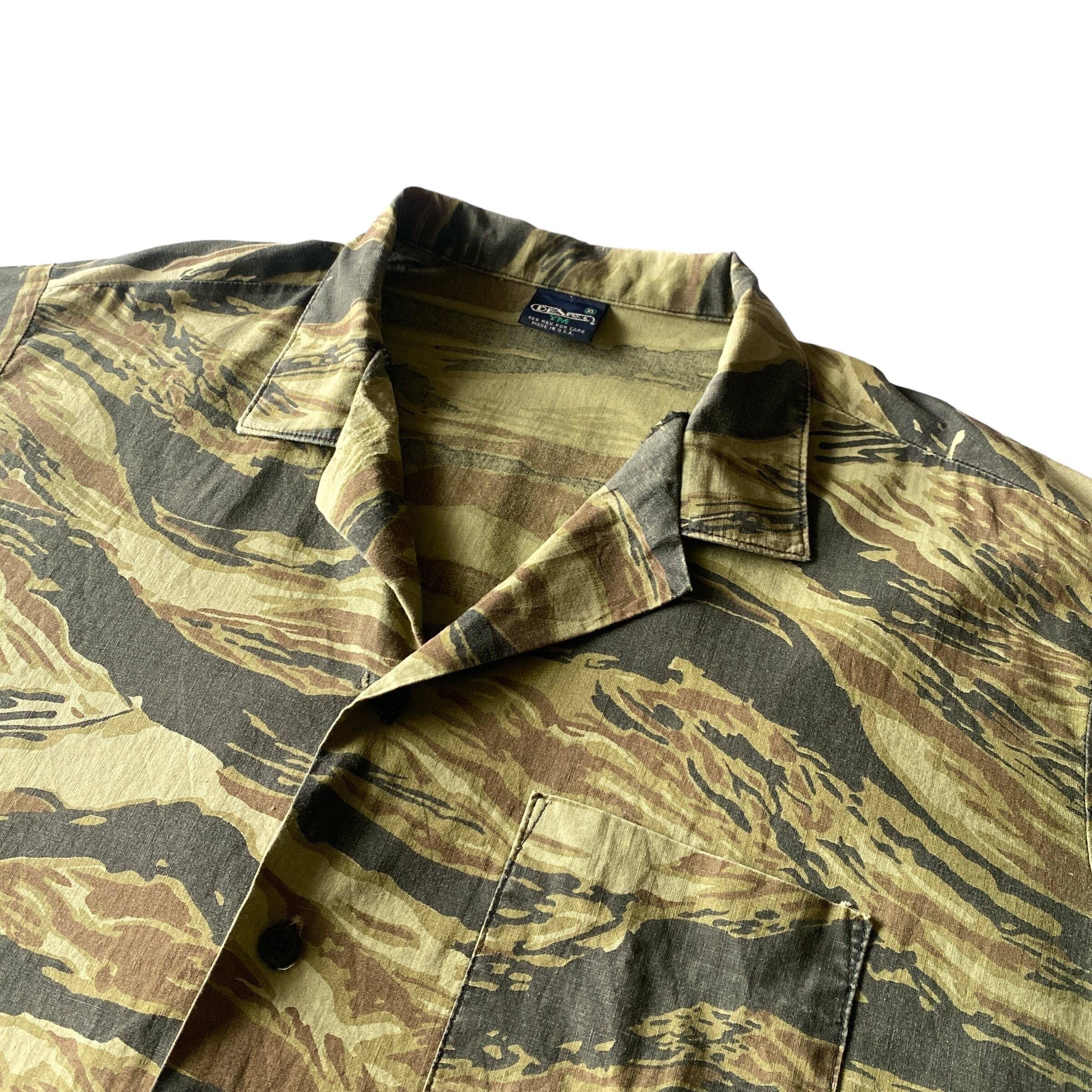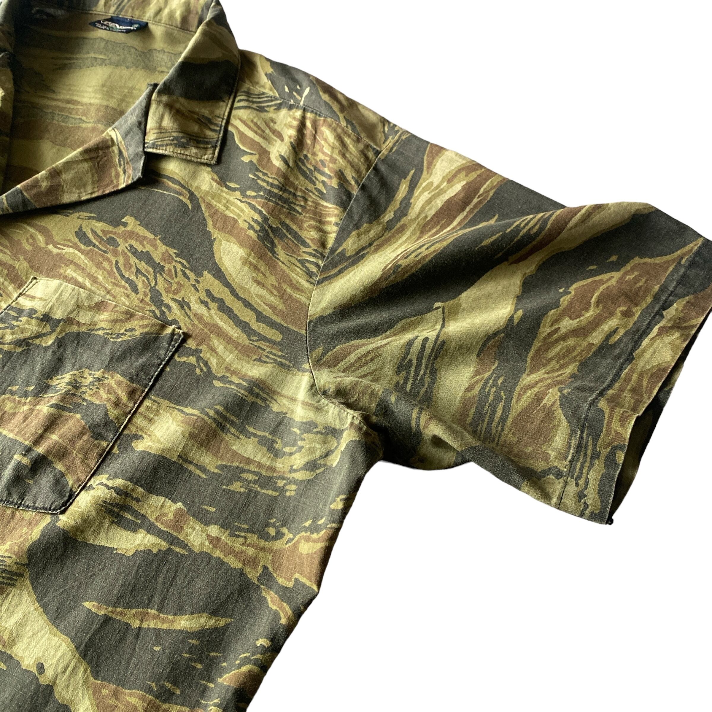 70s〜 cotton tiger camo open collar shirt