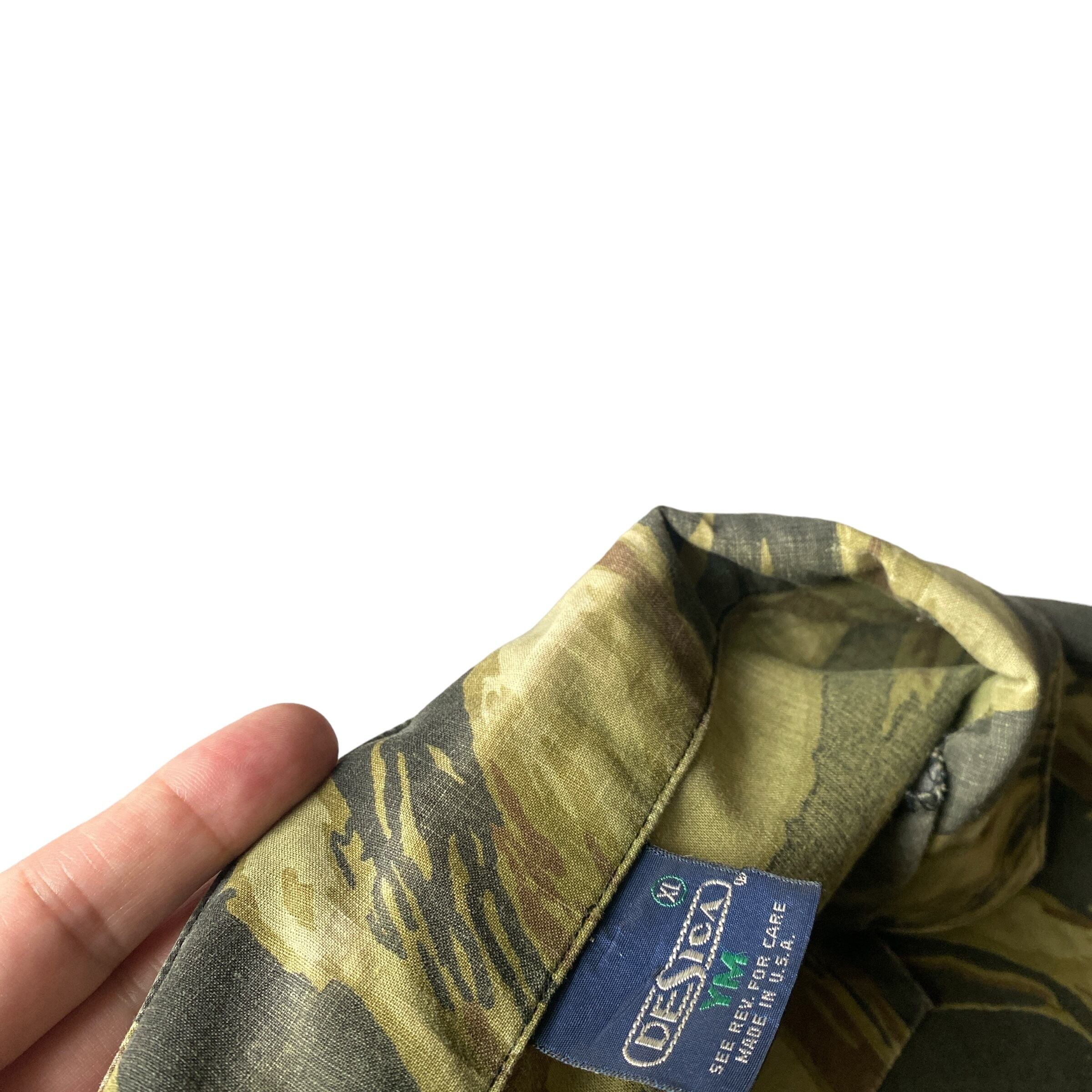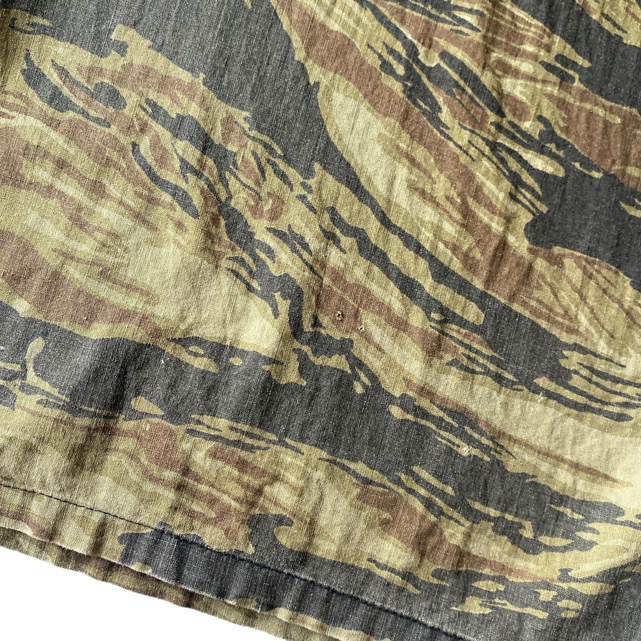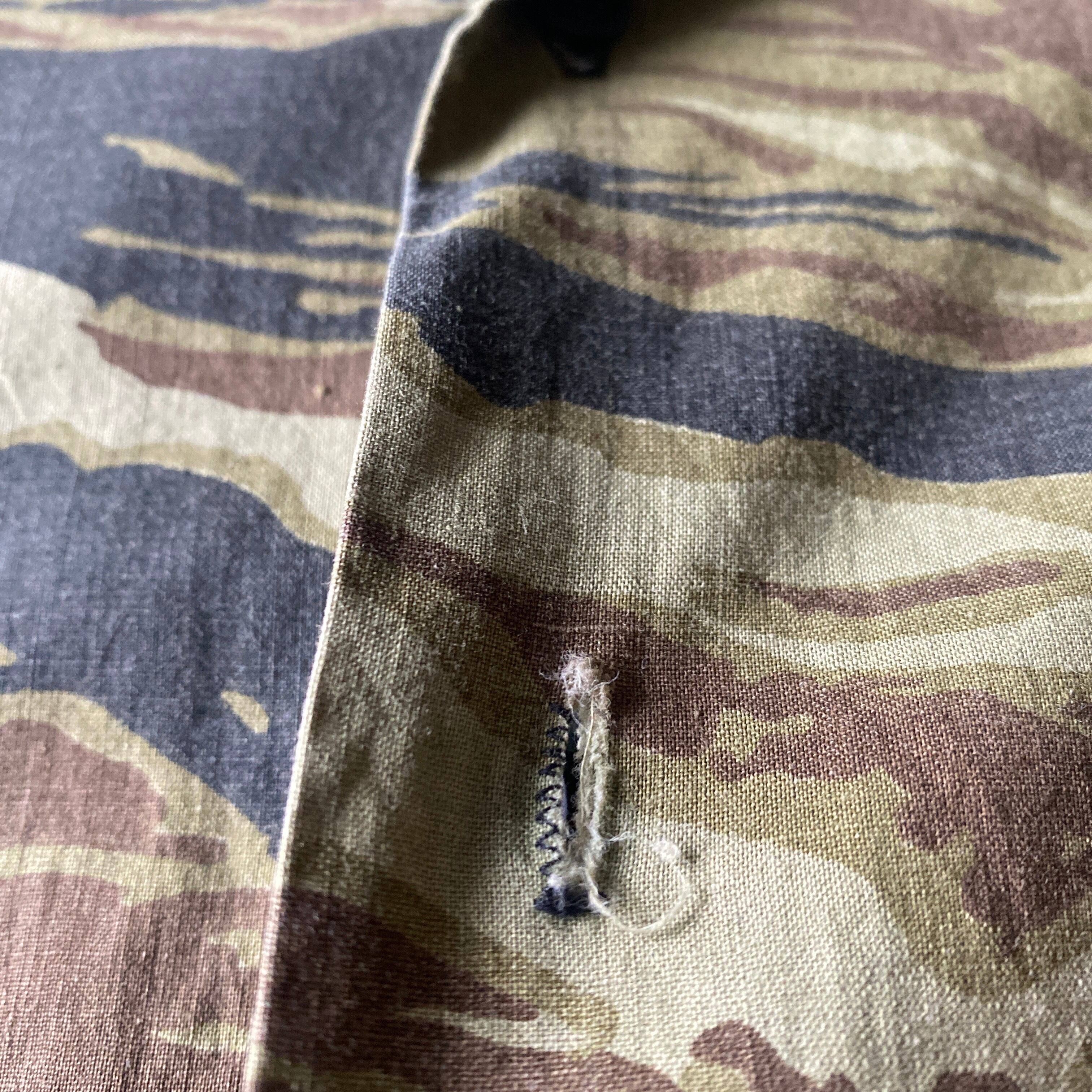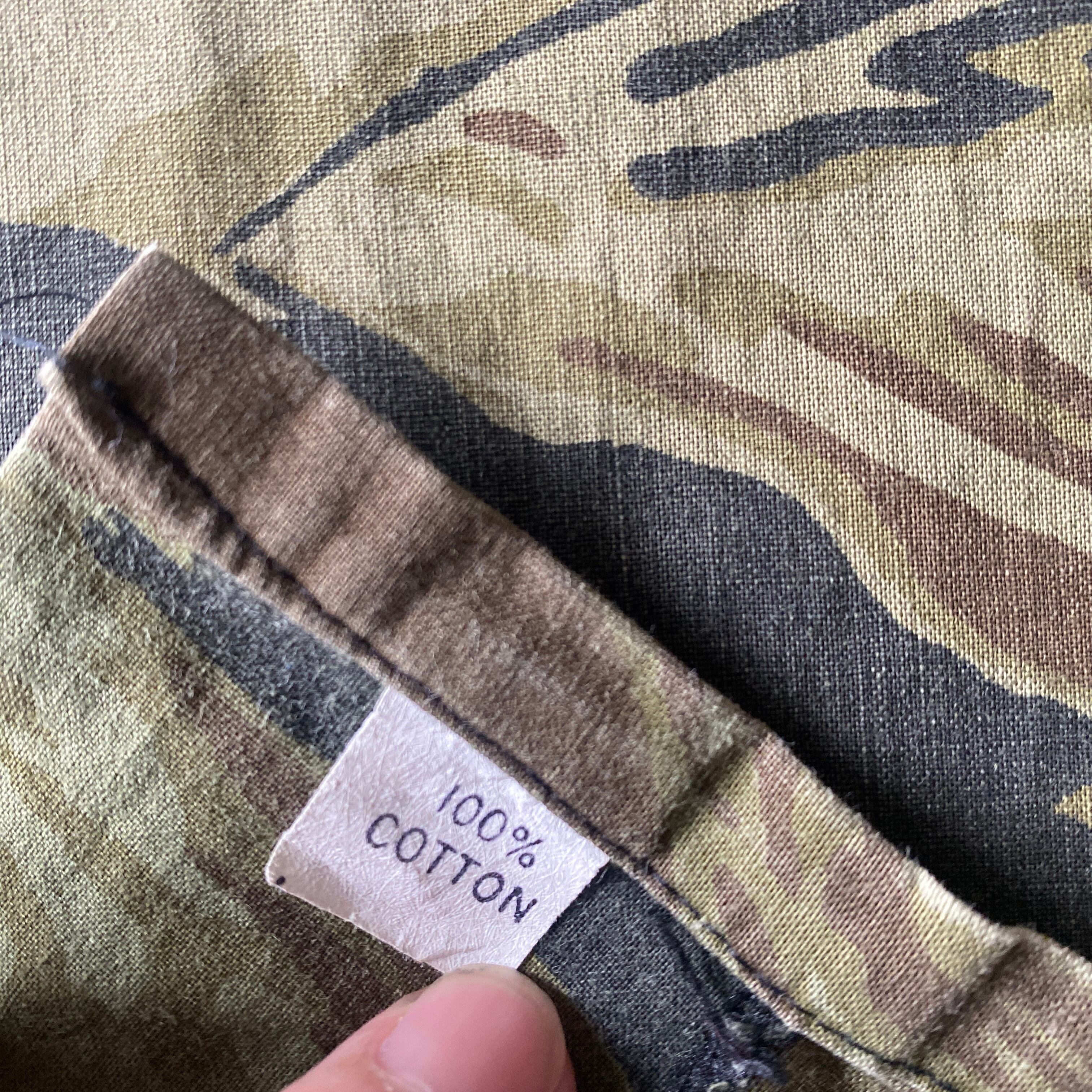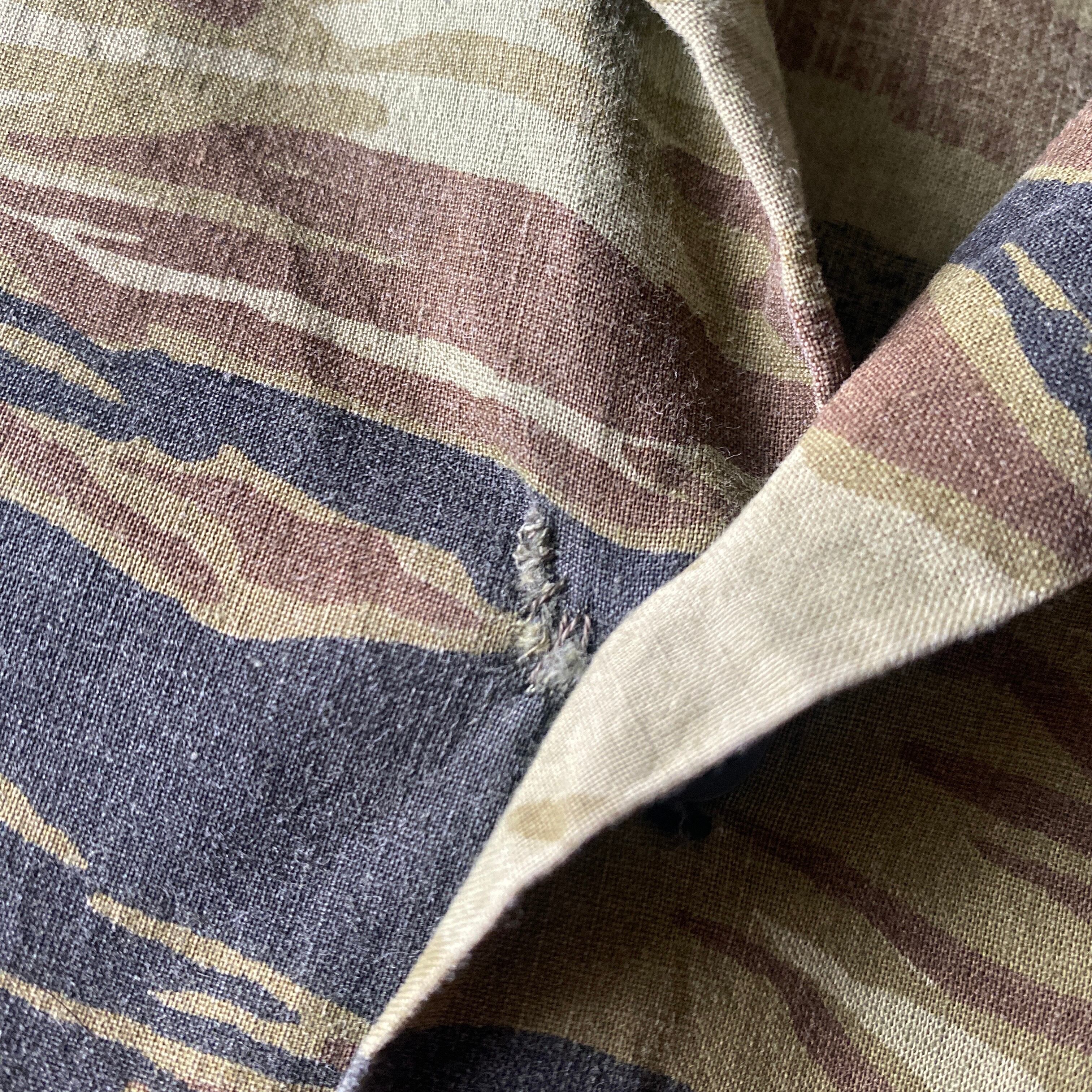 ややゴールドに近いようなタイガーストライプカモフラージュ柄に、この年代らしいほんのりシェイプの効いたボックスシルエットが非常に格好良い一着。