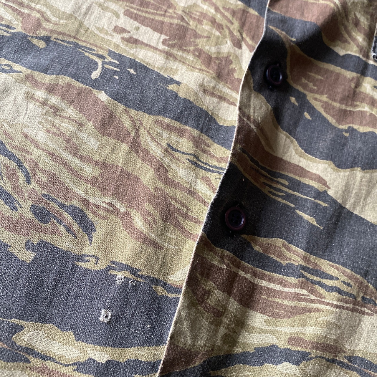しっかり古い年代でタイガーカモのオープンカラーシャツ。
