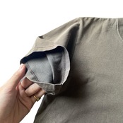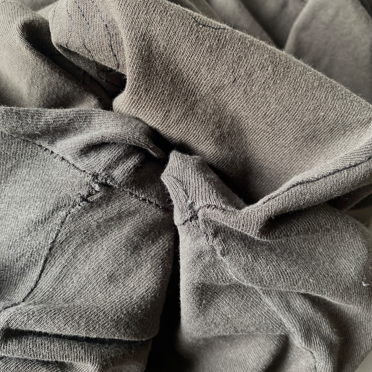 おそらくオリーブグレー系がサンフェードしたものだと思いますが、ムラ感のあるオリーブブラウンのような色目が非常に格好良い一着。