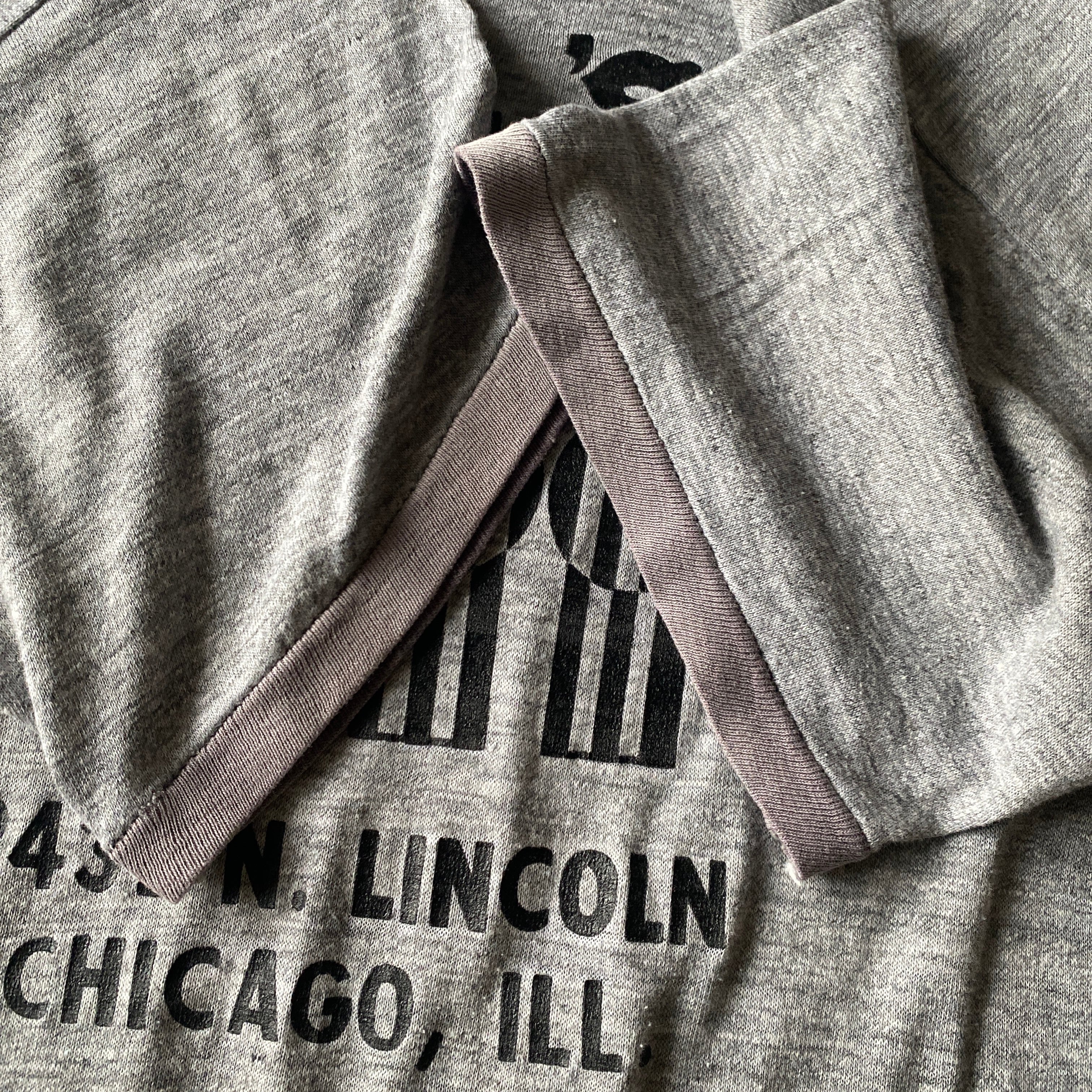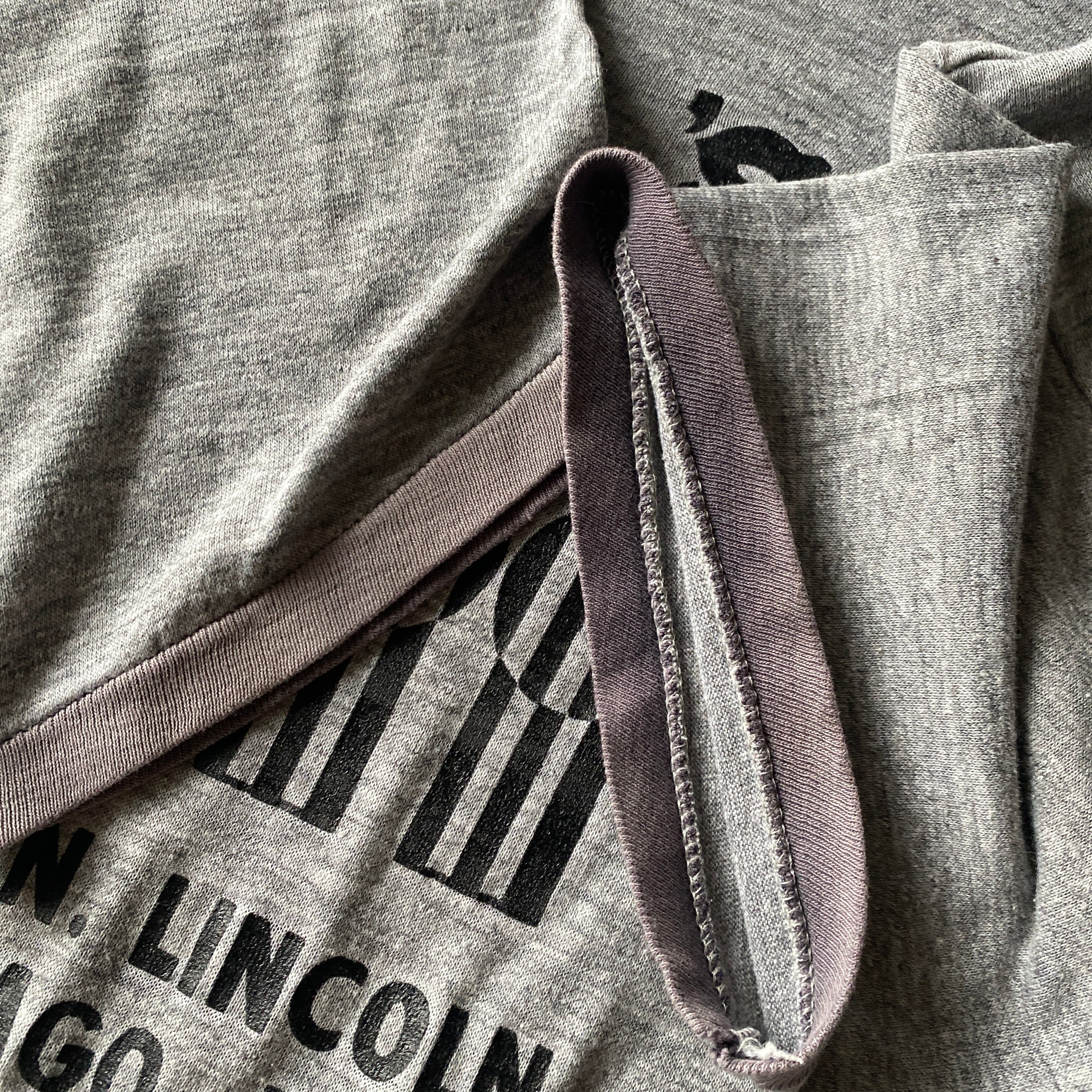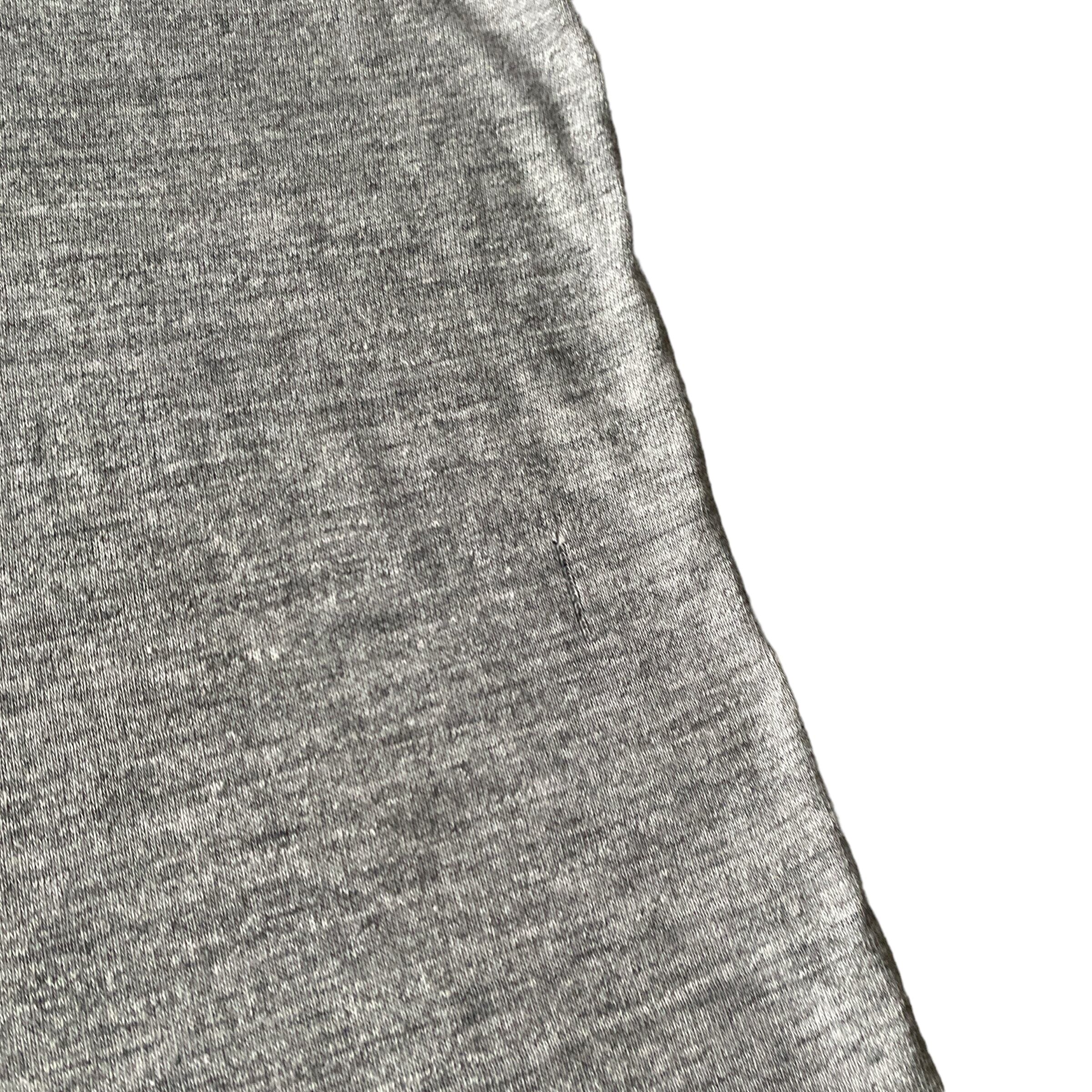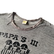 杢グレーのボディに、もはや元の色がわからないぐらいフェードしたパープル系のリブ、首周りを中心に入ったダメージ感が非常に格好良い一着。