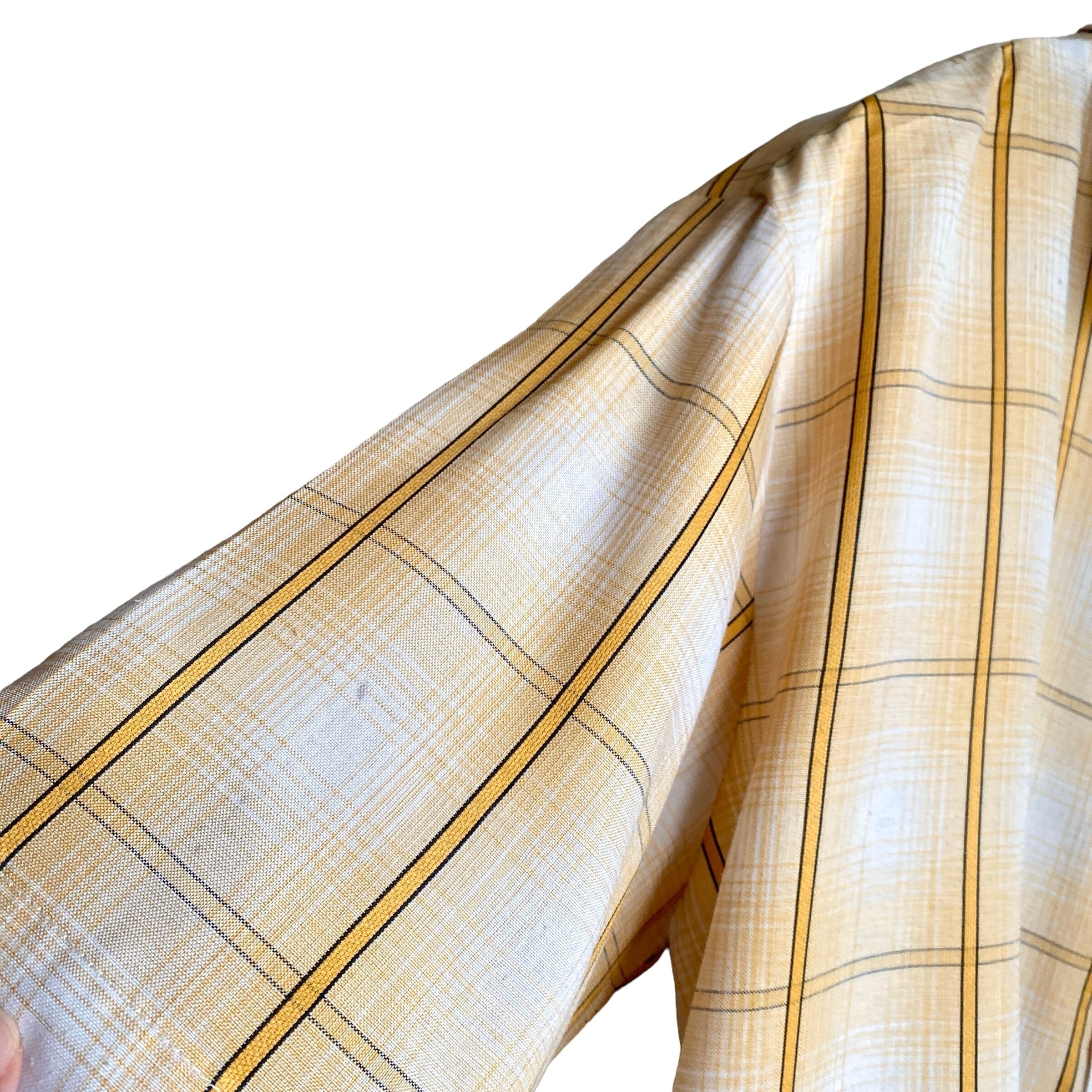 サラッとしたポリコットン系の生地感に、オレンジ×ホワイトのオンブレチェックが非常に格好良い一着。