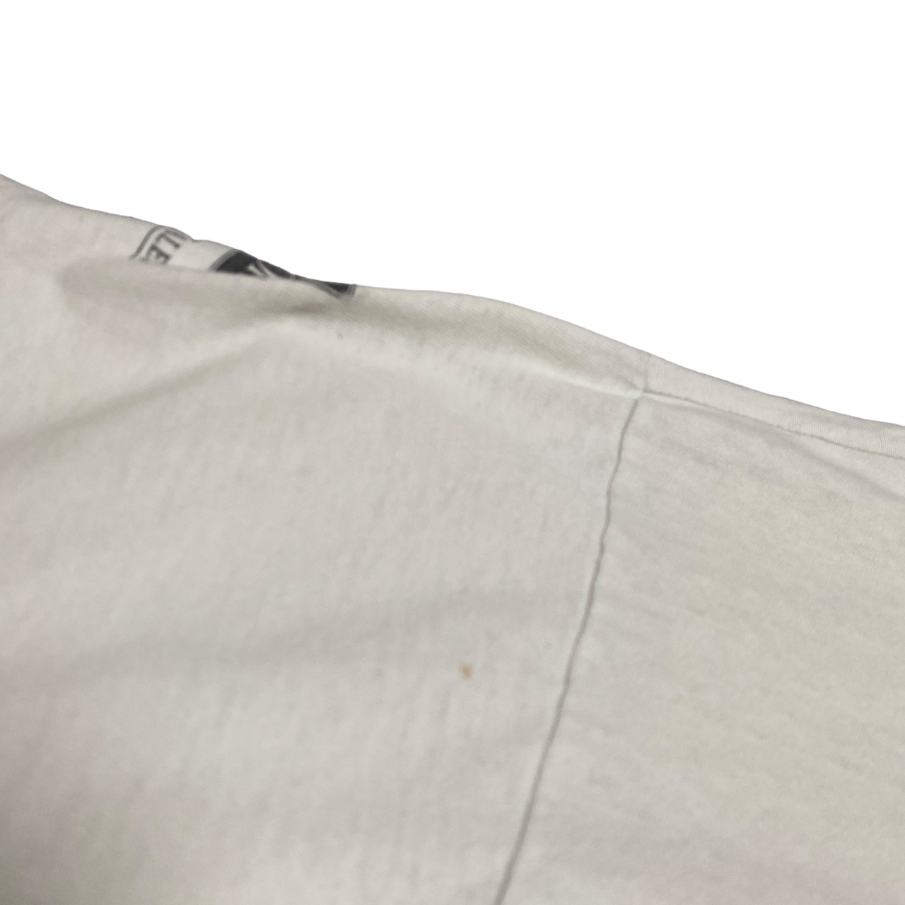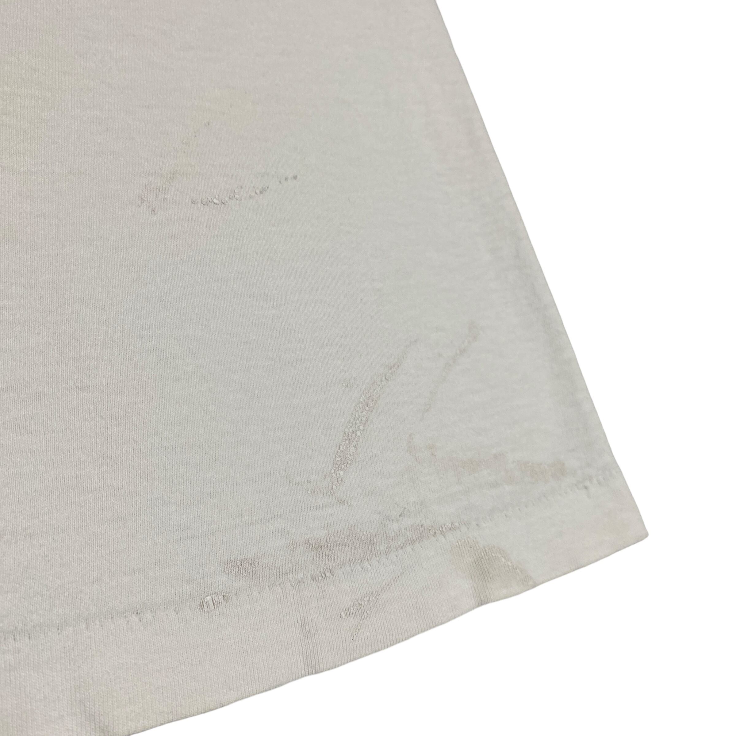 状態/全体的に白T特有のくすみ感、多少の薄い汚れ、ピンホール、ペンキ汚れがありますが、個人的に最高の雰囲気です。(写真だとペンキ汚れが目立つかもしれませんが、実際着たら全然気にならないです)