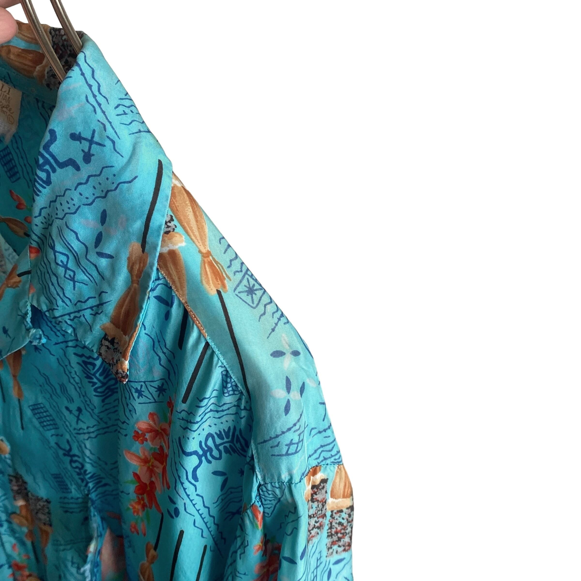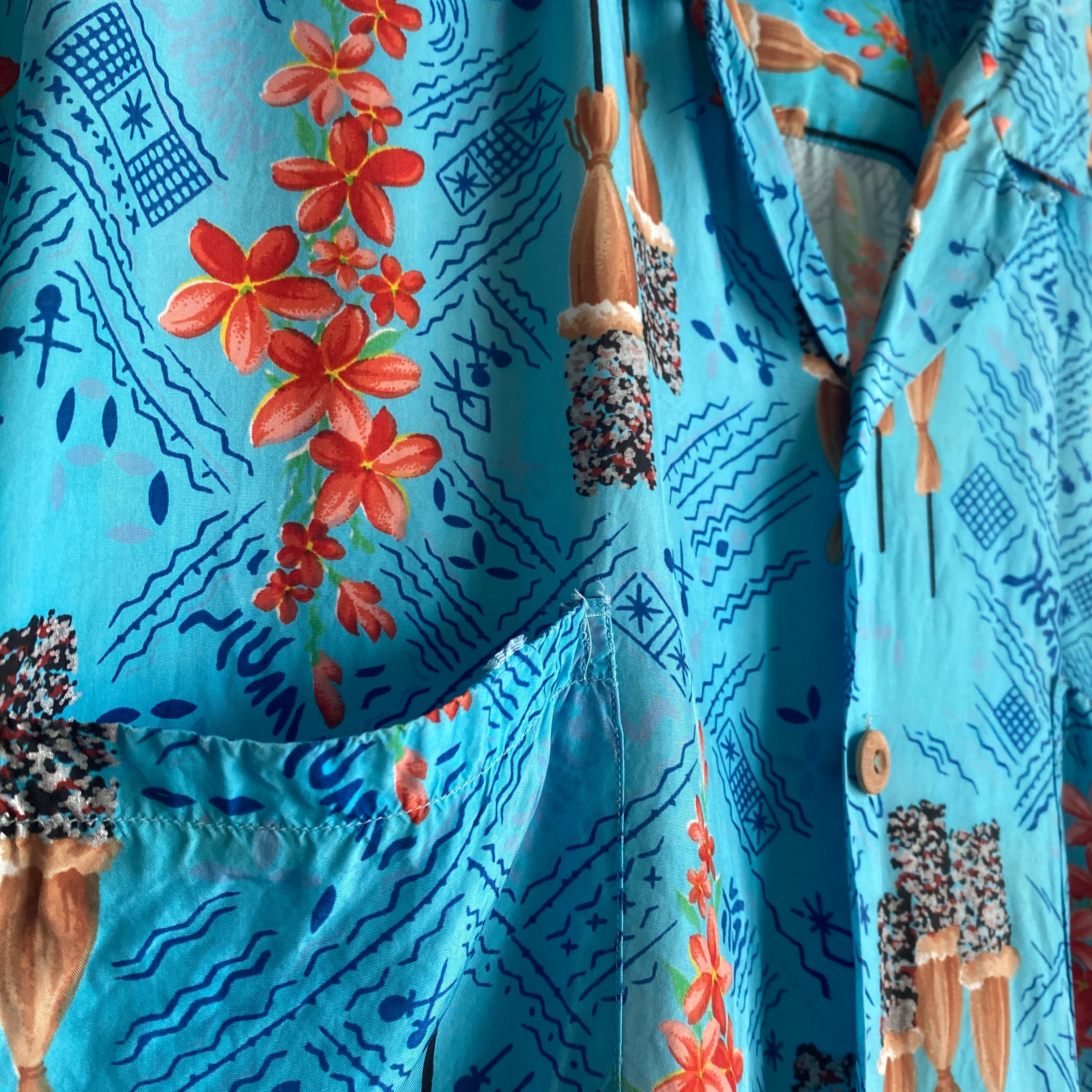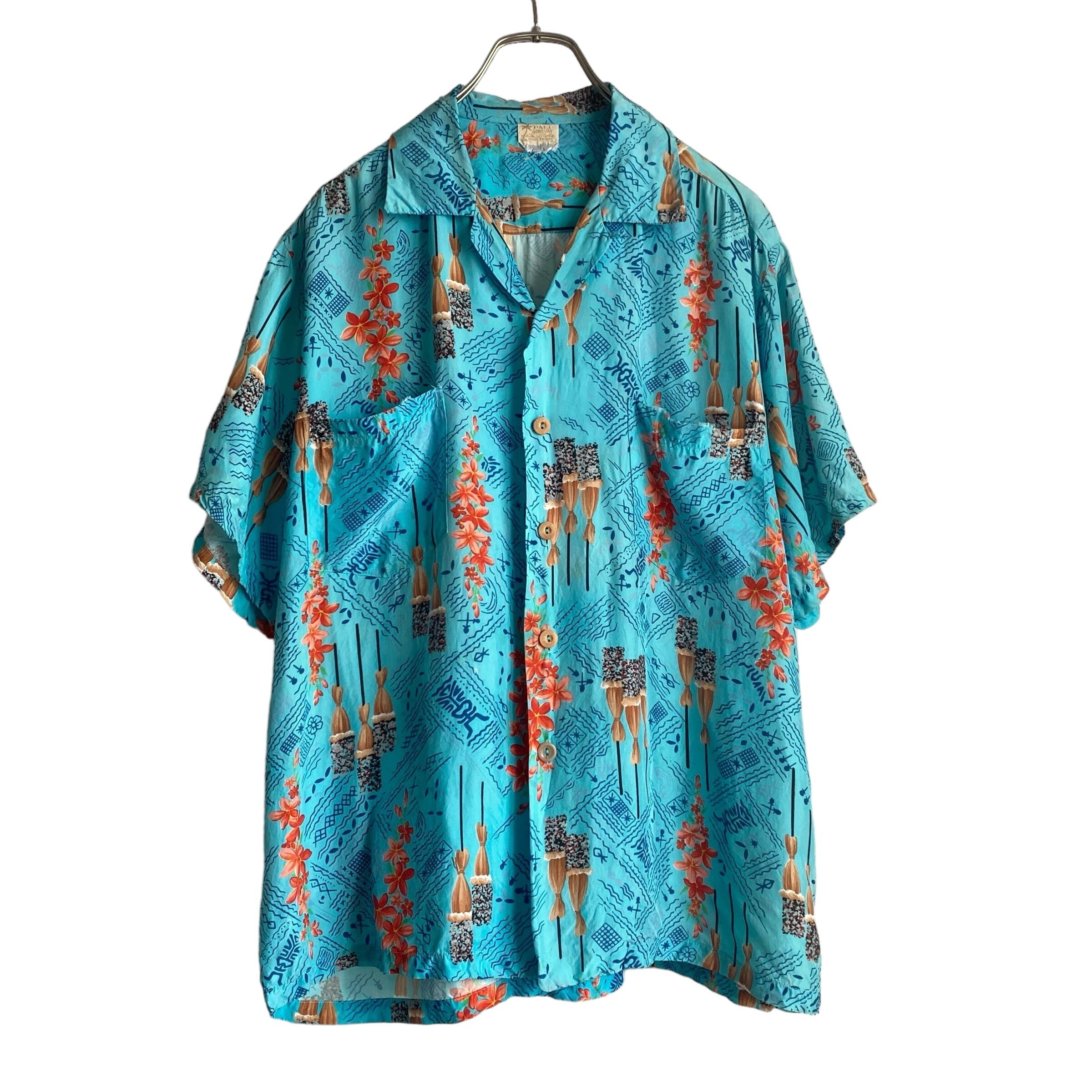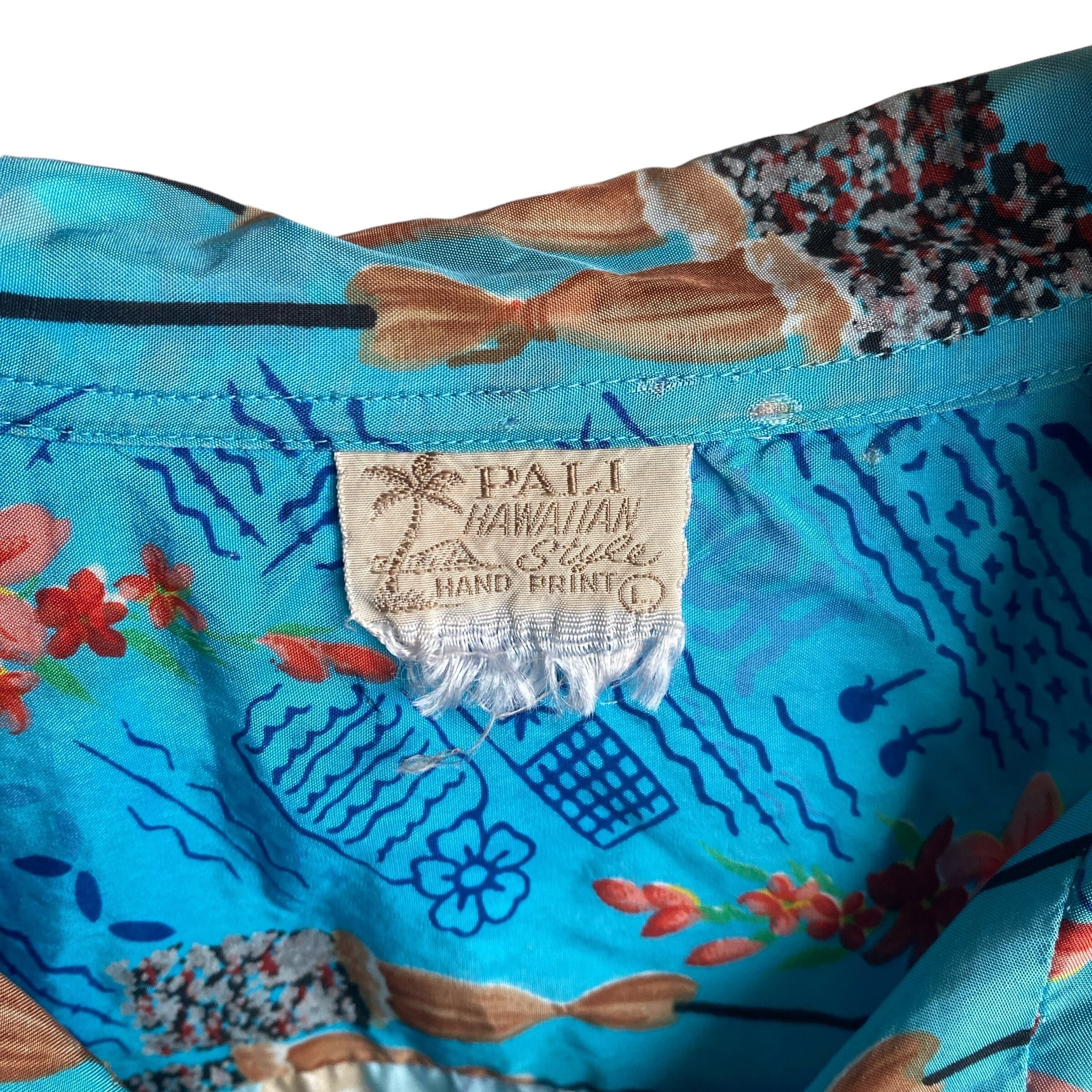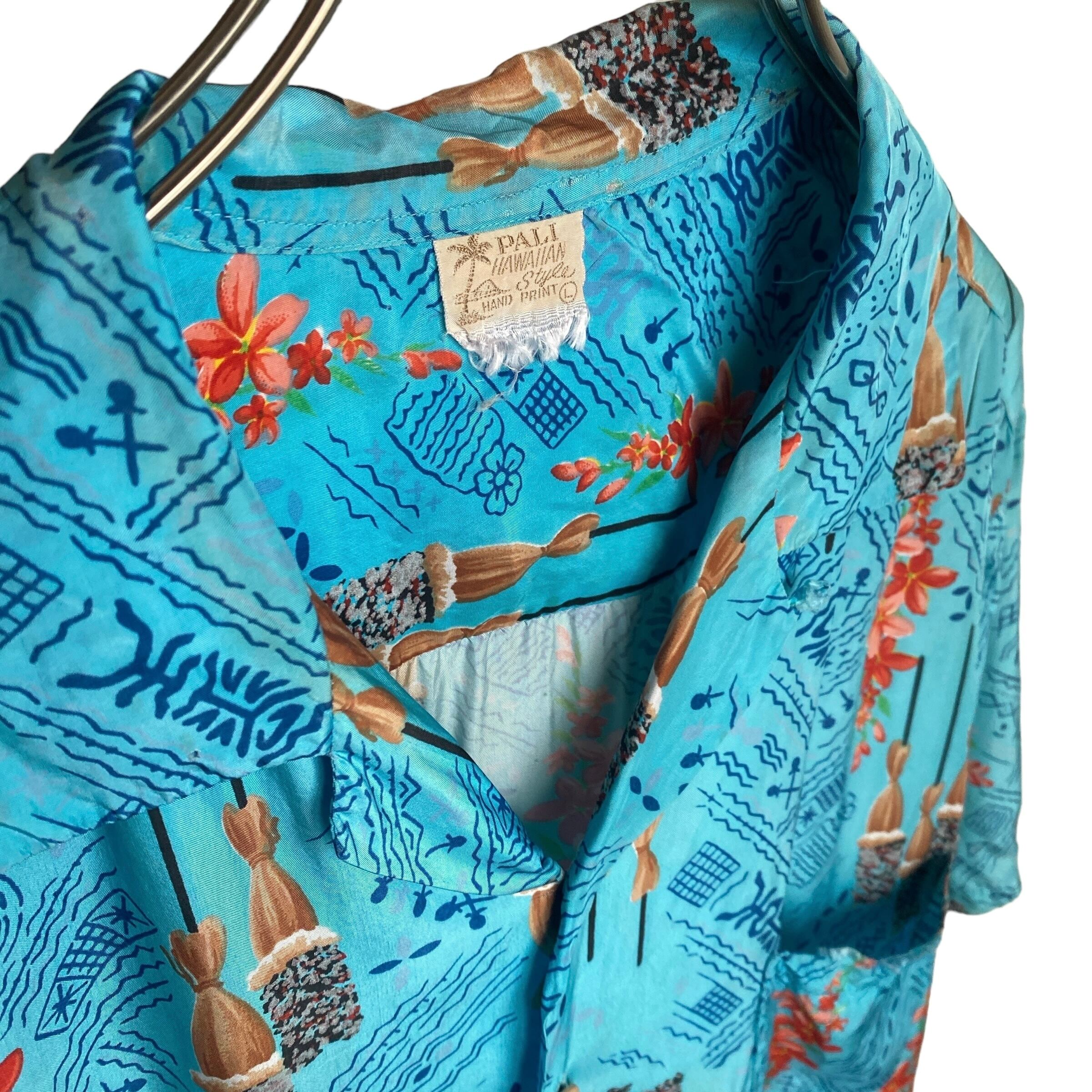 1950年代頃のPALI HAWAIIANオープンカラーレーヨンアロハシャツになります。(表記なしですがレーヨンで間違いないかと。ややシャリ感のあるサラッとした生地です)