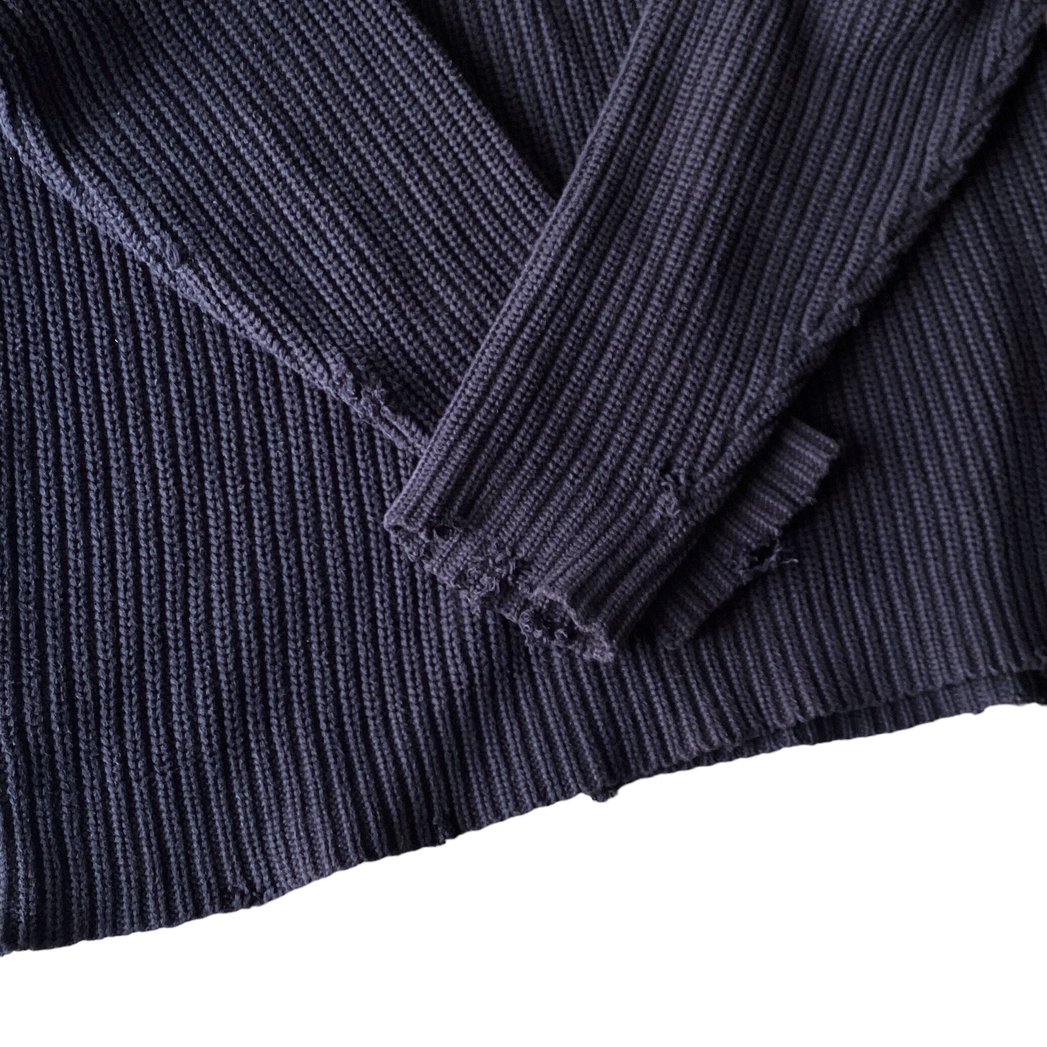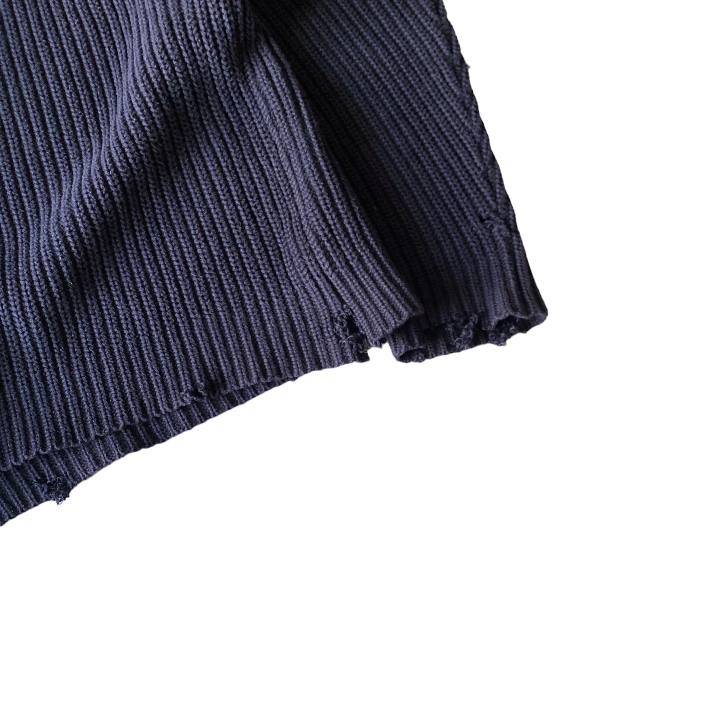 ダークネイビーからフェードした茄子紺カラー、各所ダメージ、短丈ボックスなシルエットが非常に格好良い一着。
