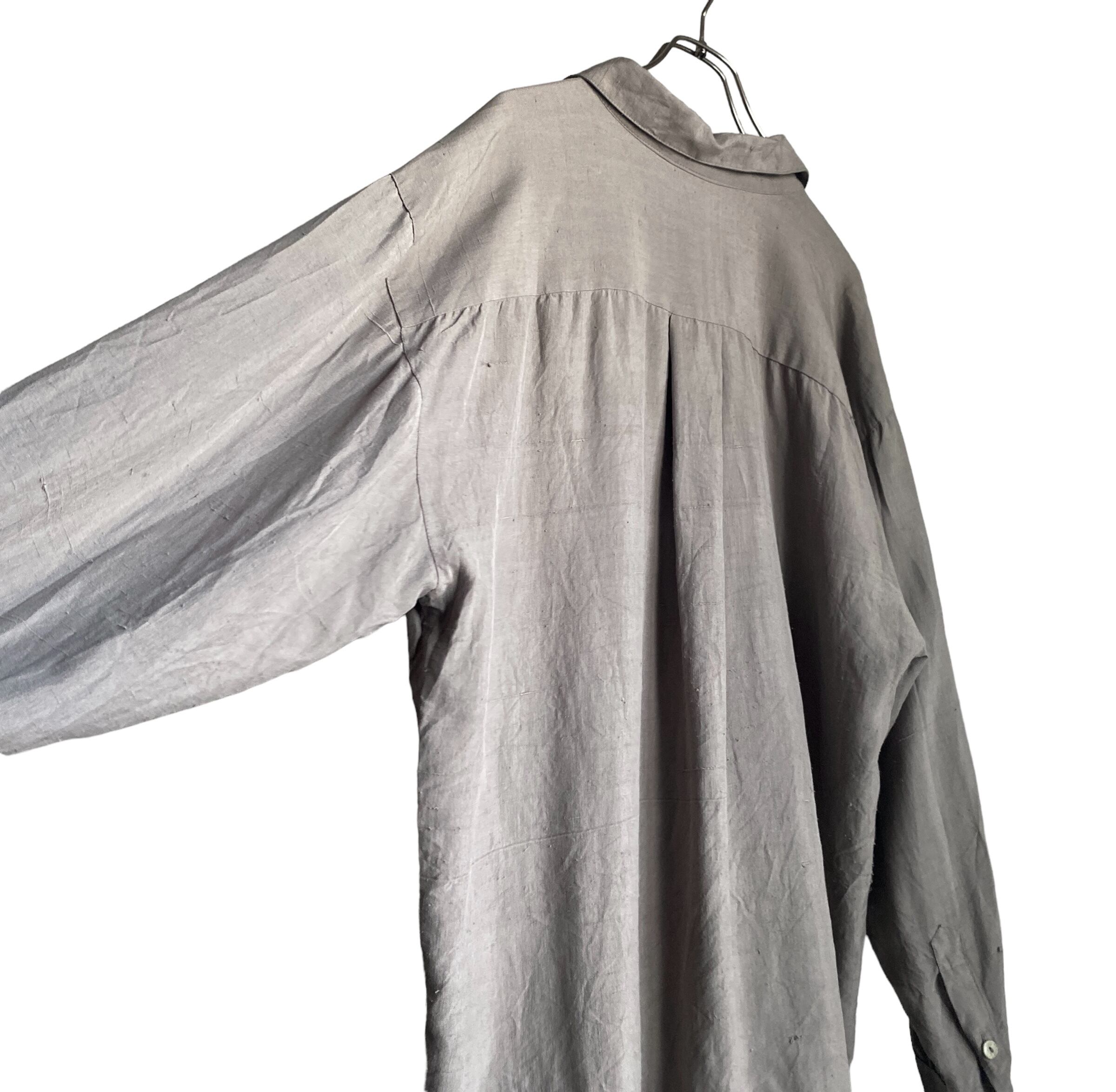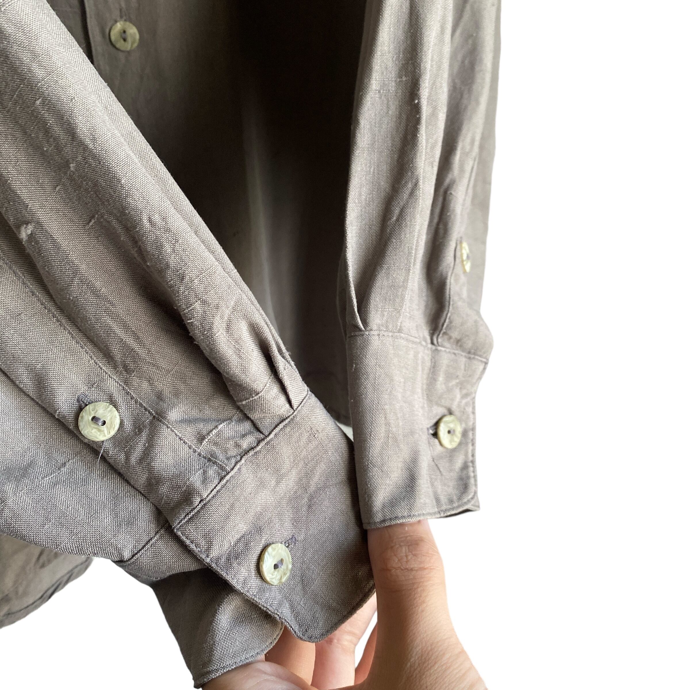 程よい厚みでとろみのある上質なウォッシャブルローシルク生地に、ゆったりとした丸みのあるシルエット、上品なトープカラーが非常に格好良い一着。