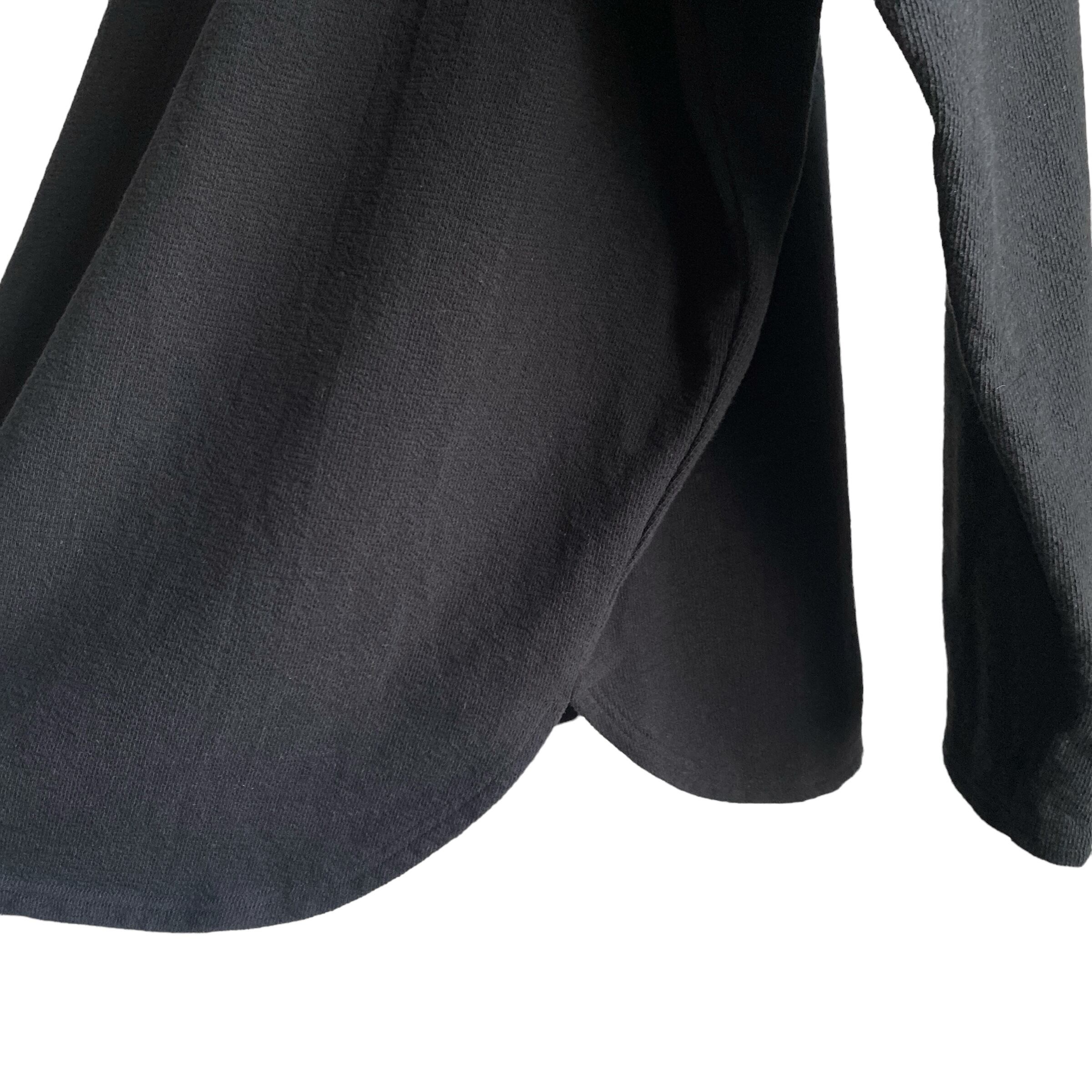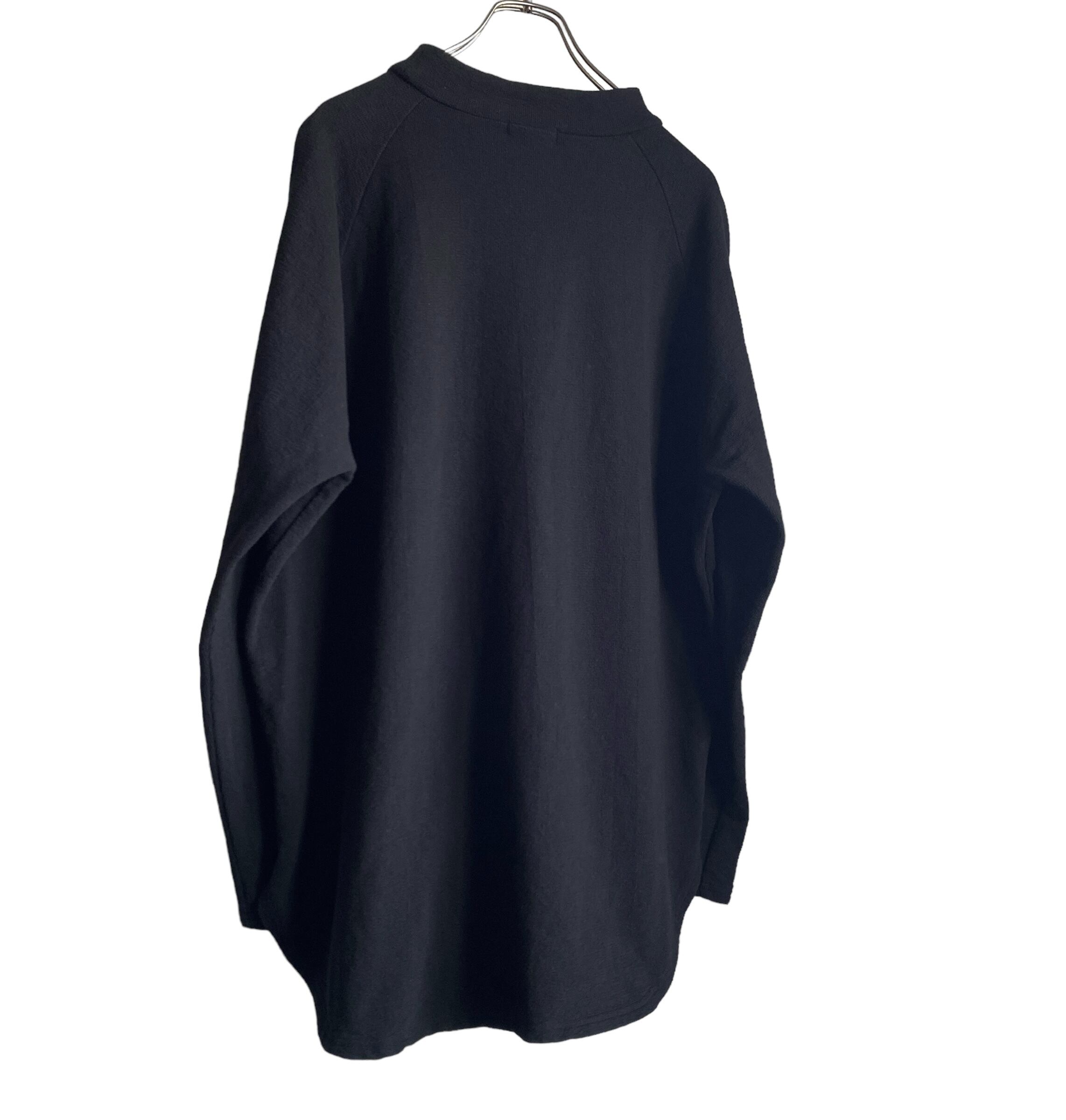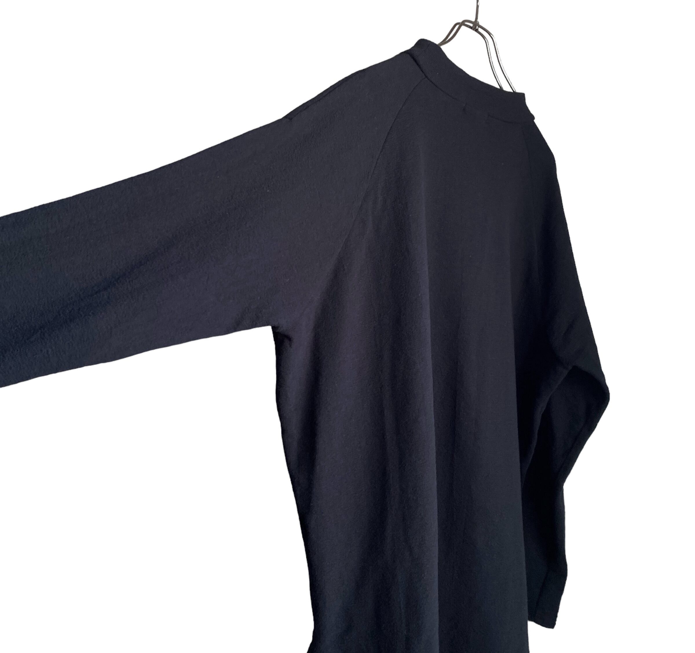 あまり見かけないようなやや目の詰まったブラックのコットンパイル生地、ゆったりとしたスモックのようなシルエットが非常に格好良い一着。