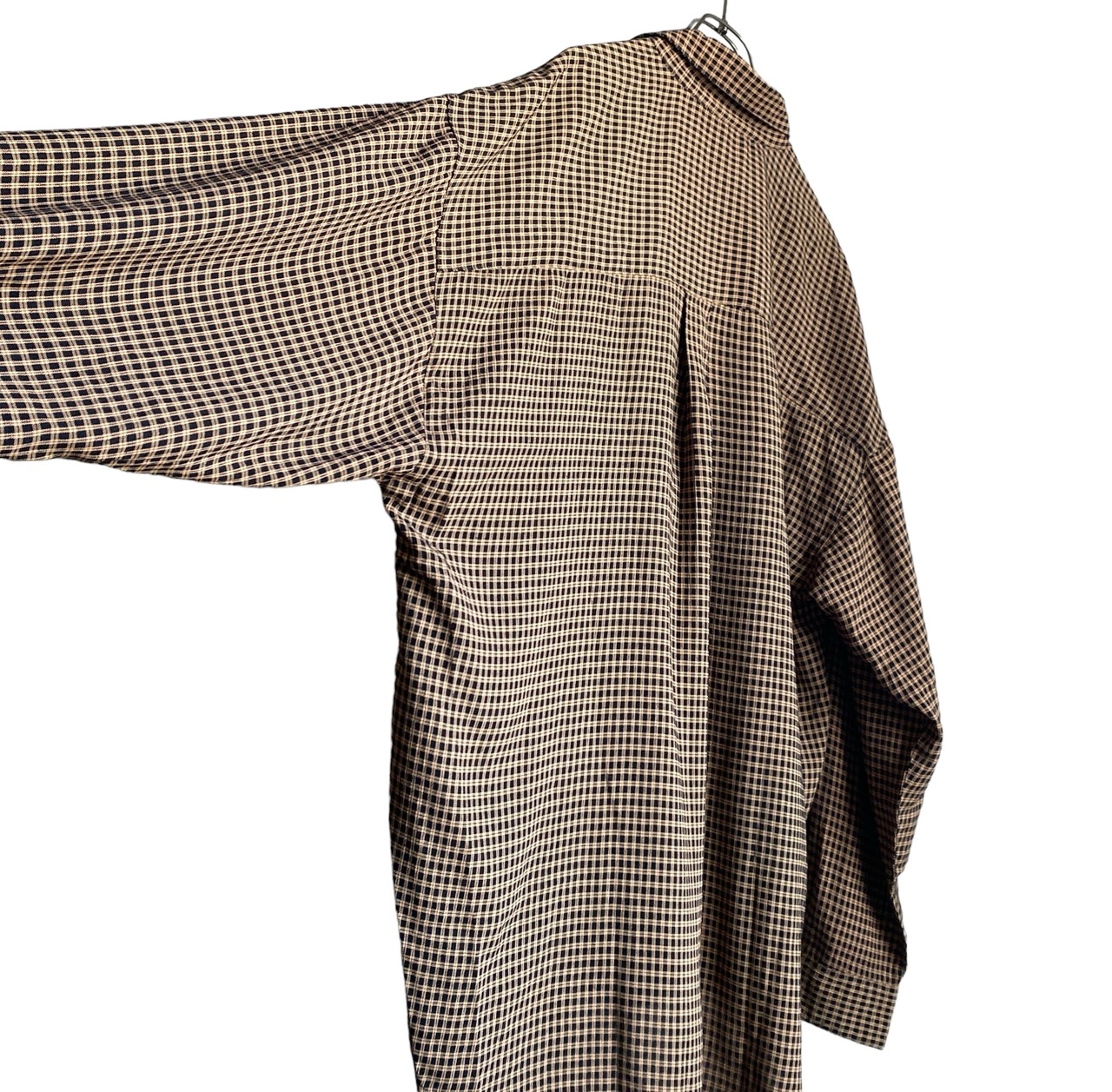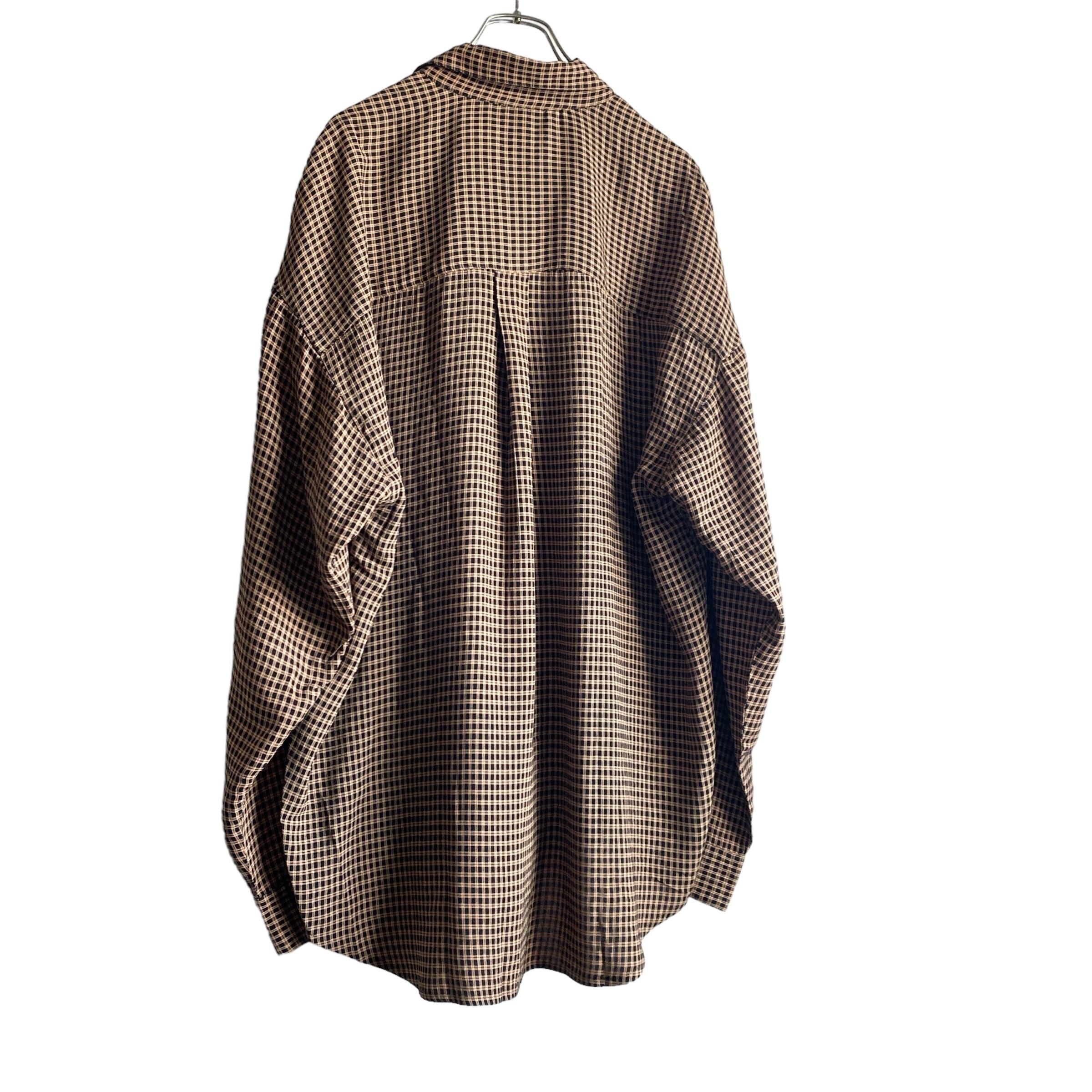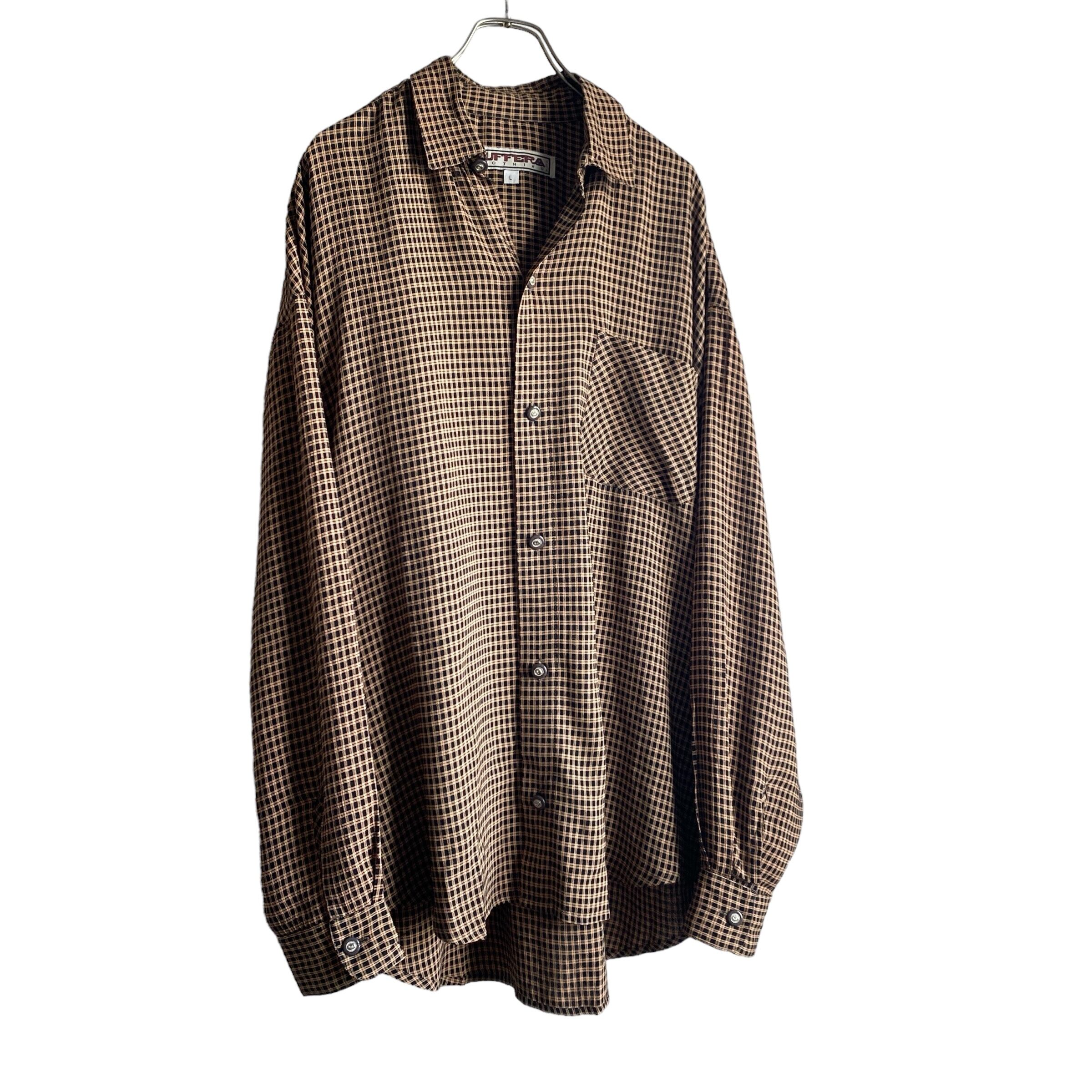 ややシャリ感がありつつとろみのある上質なアセテートレーヨン生地に(品質タグが飛んでいますが、経験上間違いありません)、ブラウン系×ブラックの綺麗な配色のチェック、ガバッと大きめなシルエットが非常に格好良い一着。