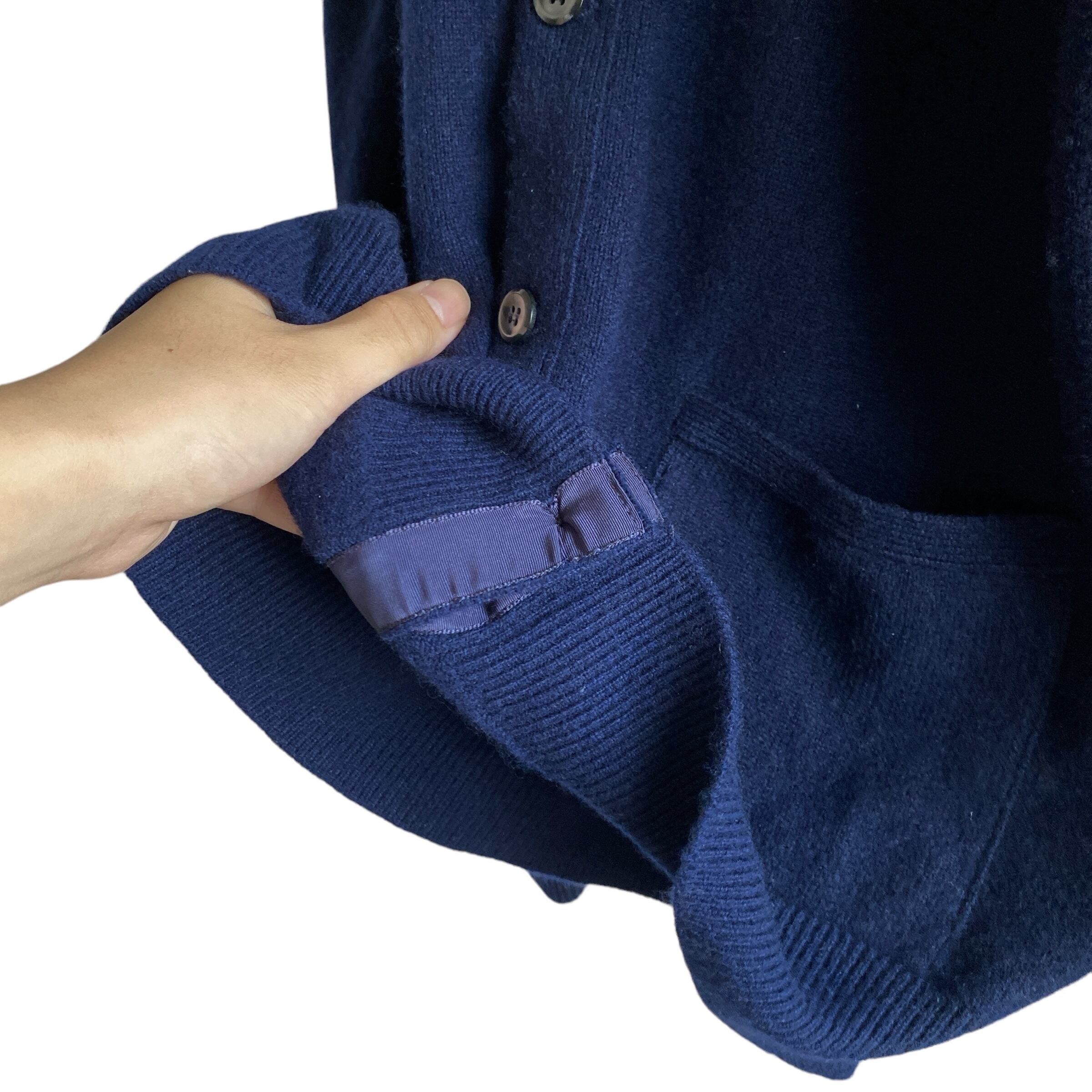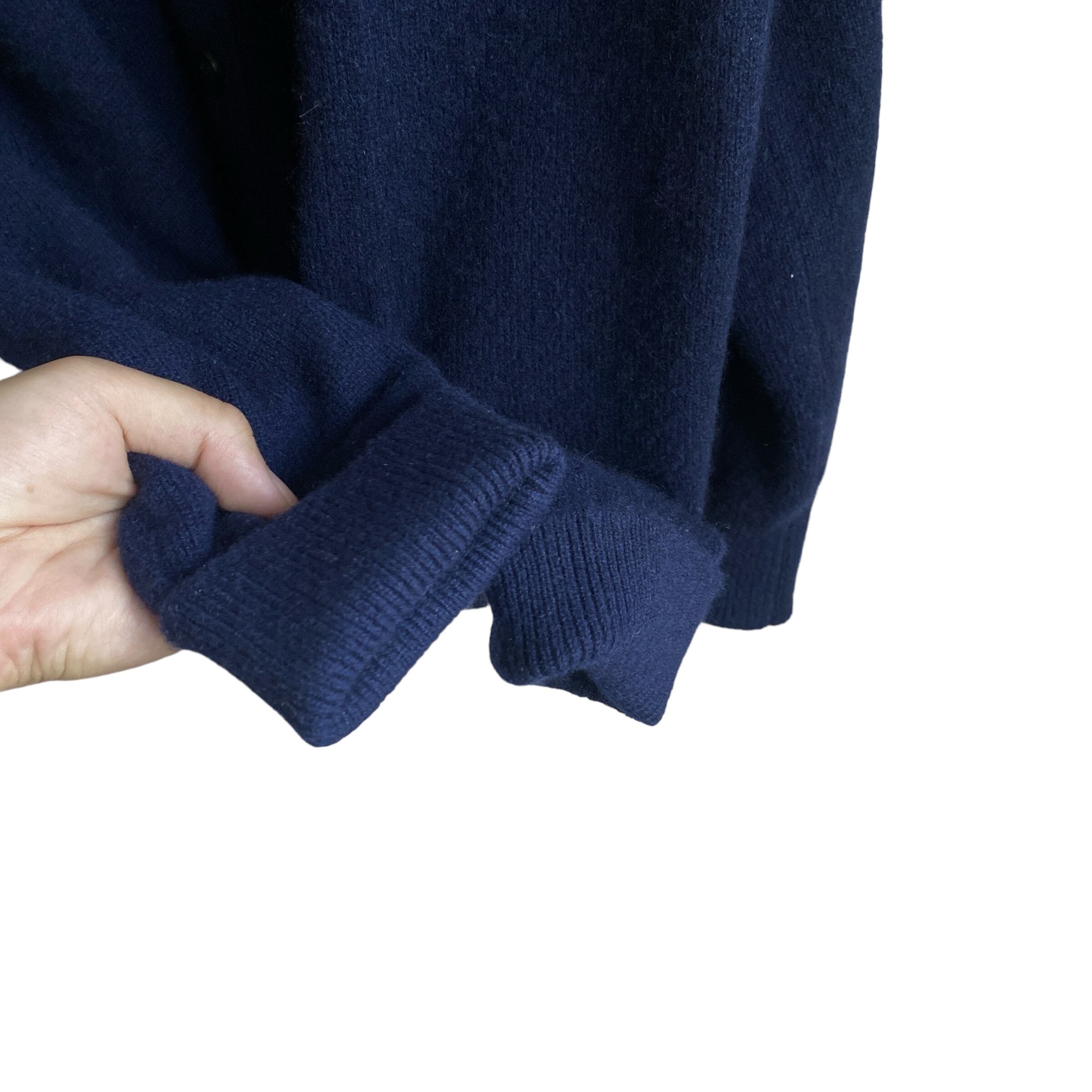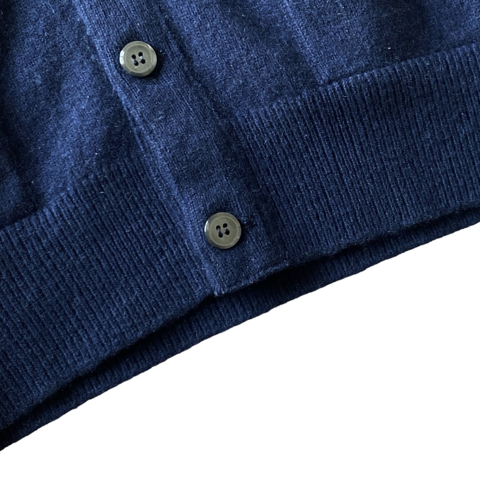 肉厚で柔らかい極上のカシミヤ素材に、上品なダークネイビーカラーが非常に素晴らしい一着。(写真ではわかりづらいですが、よく見るとツートンのダークネイビーが混ざったようにも見える奥行きのある色目です)