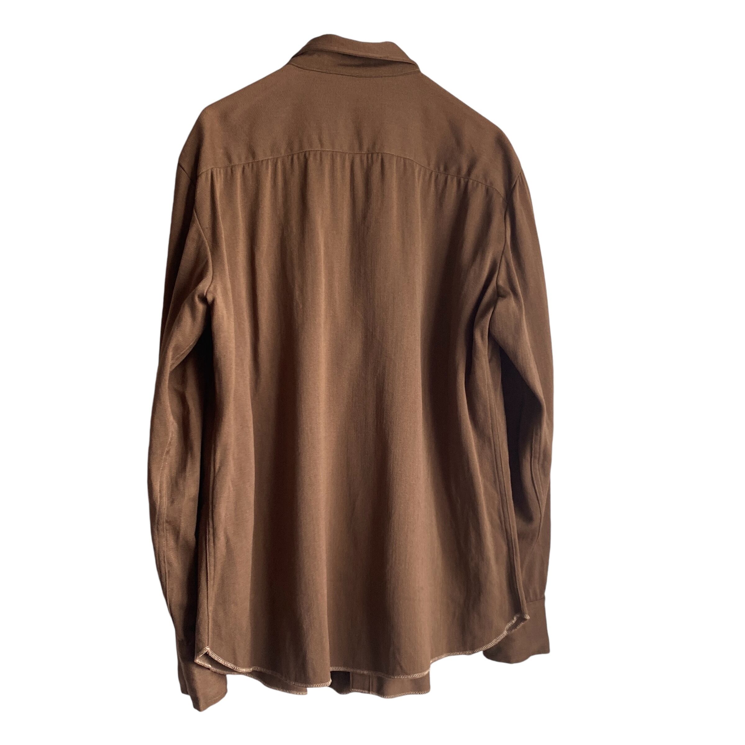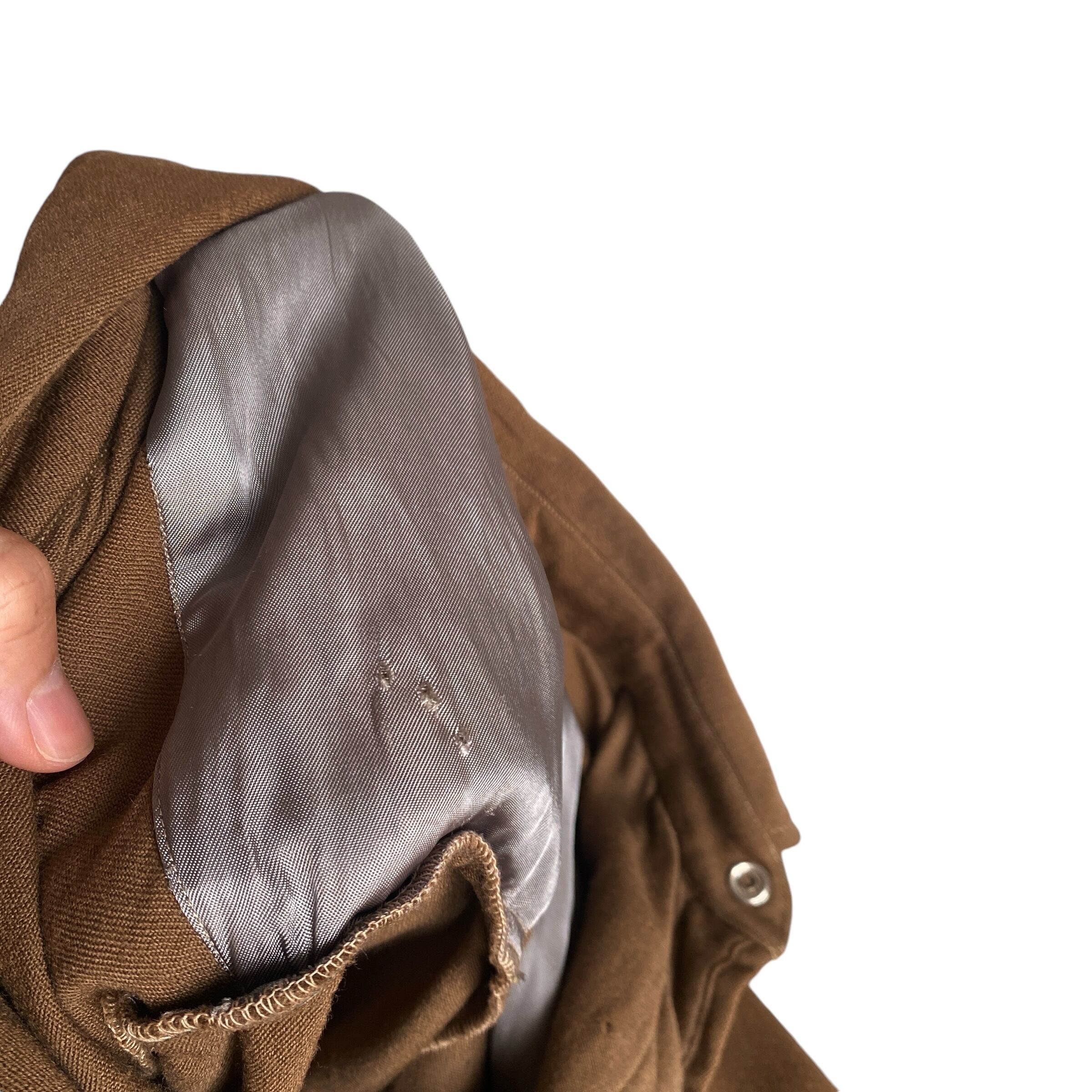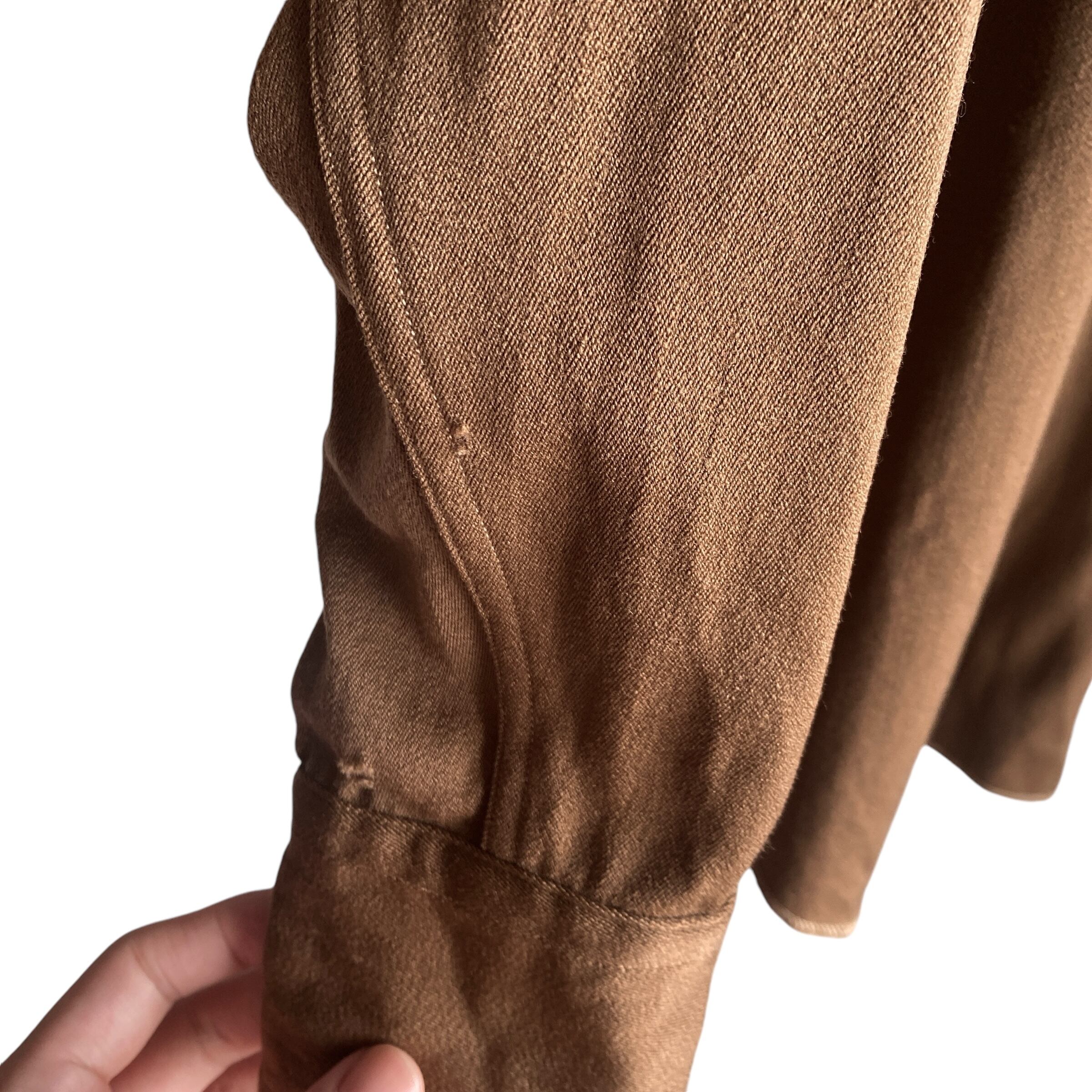 肉厚でギュッと目の詰まった上質なウールギャバジン素材に、モカブラウン系(写真より実物の方がもう少し良い色です)の上品な色目が非常に格好良い一着。