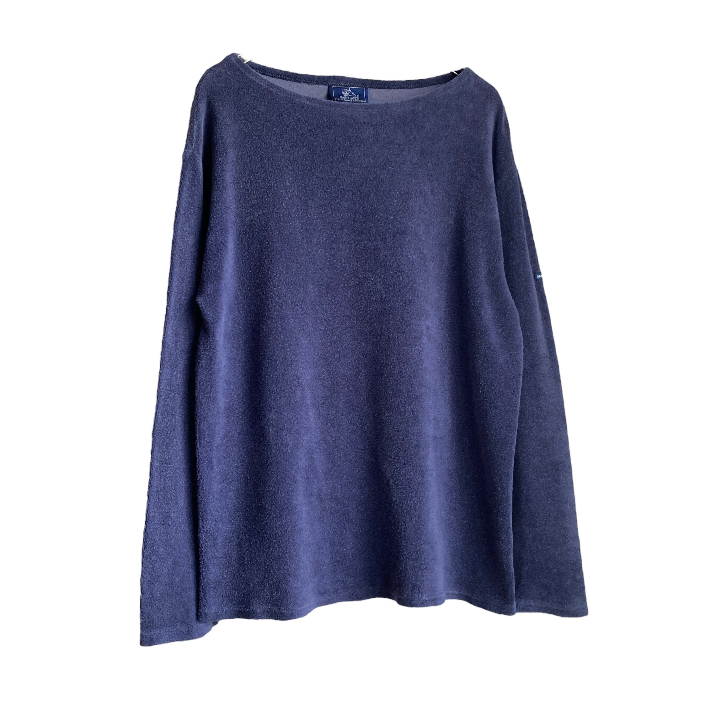 フェードしたネイビー(茄子紺)のような綺麗なカラーに、パイル特有の少し粗野な雰囲気のテクスチャー感が非常に格好良いです。