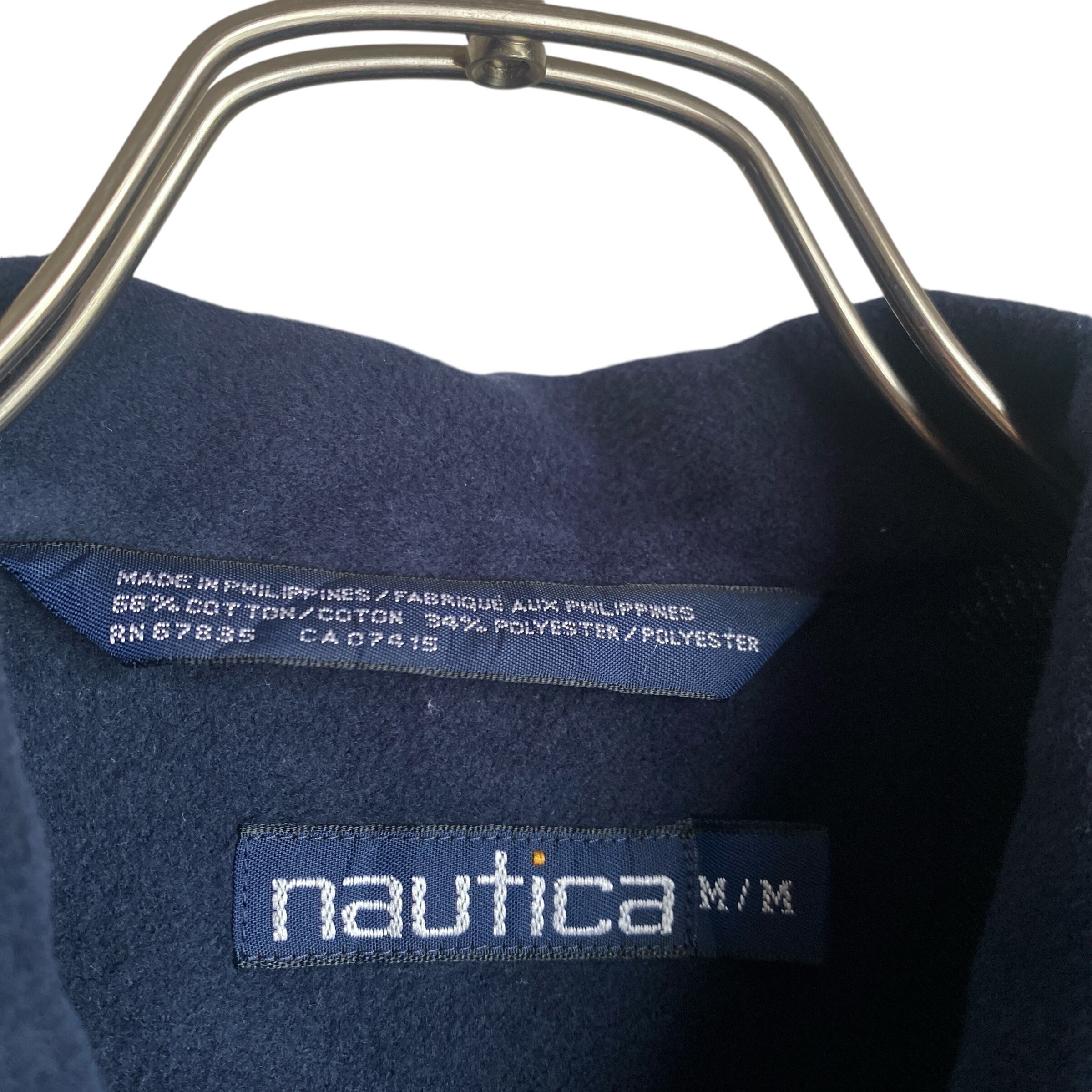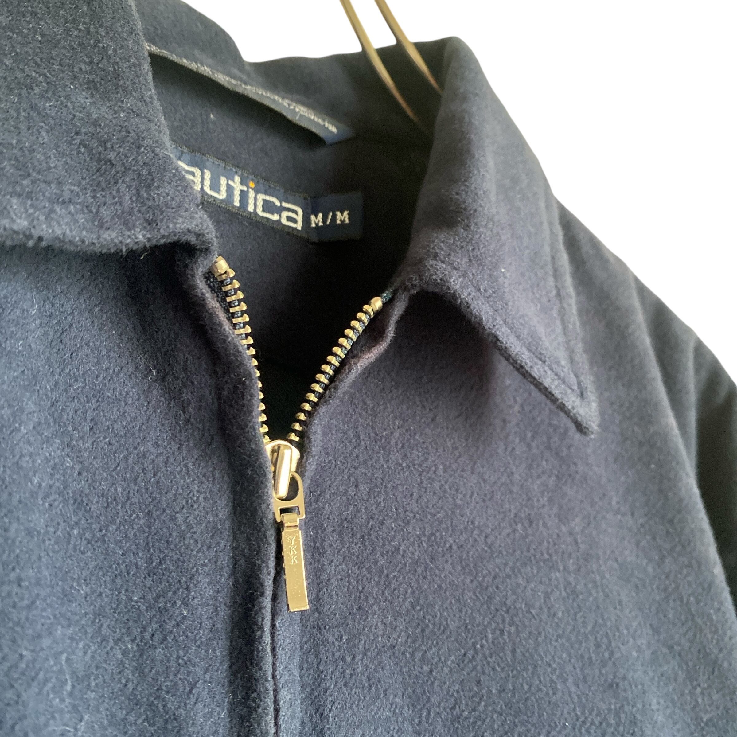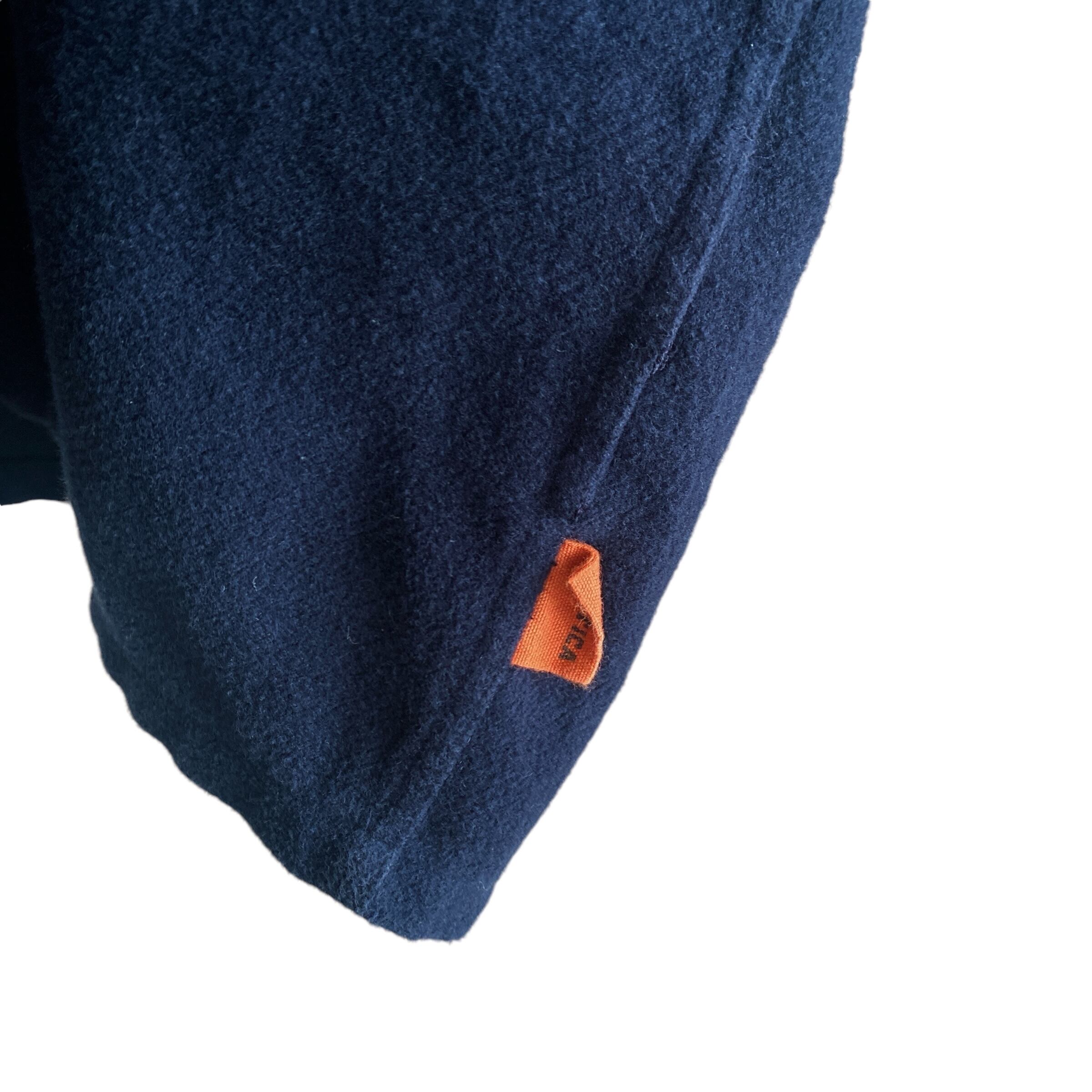 フリースとシャモアの間のような少し硬めで起毛感のある上質な生地感に、ダークネイビーの上品な色目が非常に格好良い一着。