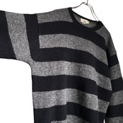 グランジやパンクを感じさせるブラック×グレーの太ボーダーに、丸みのあるボックスシルエットが非常に格好良い一着。