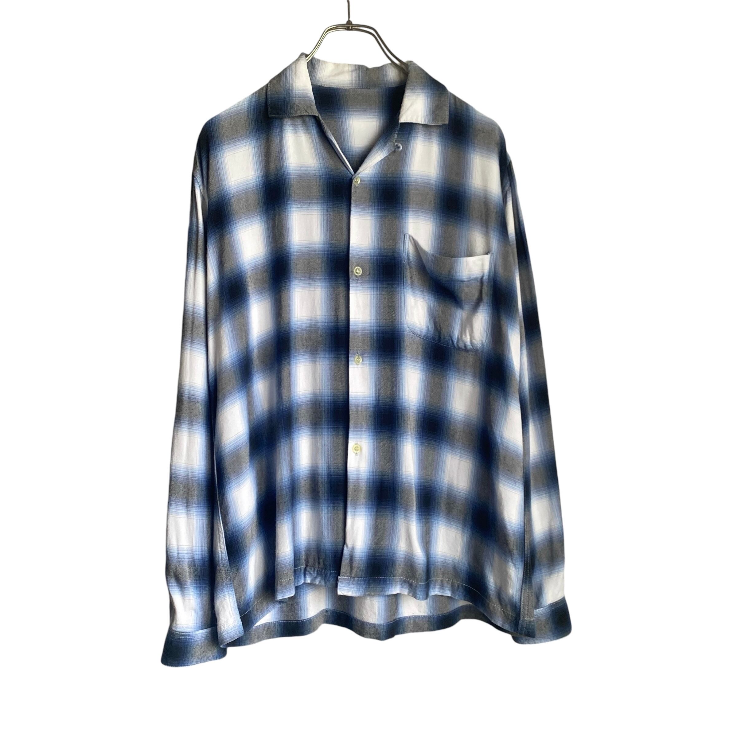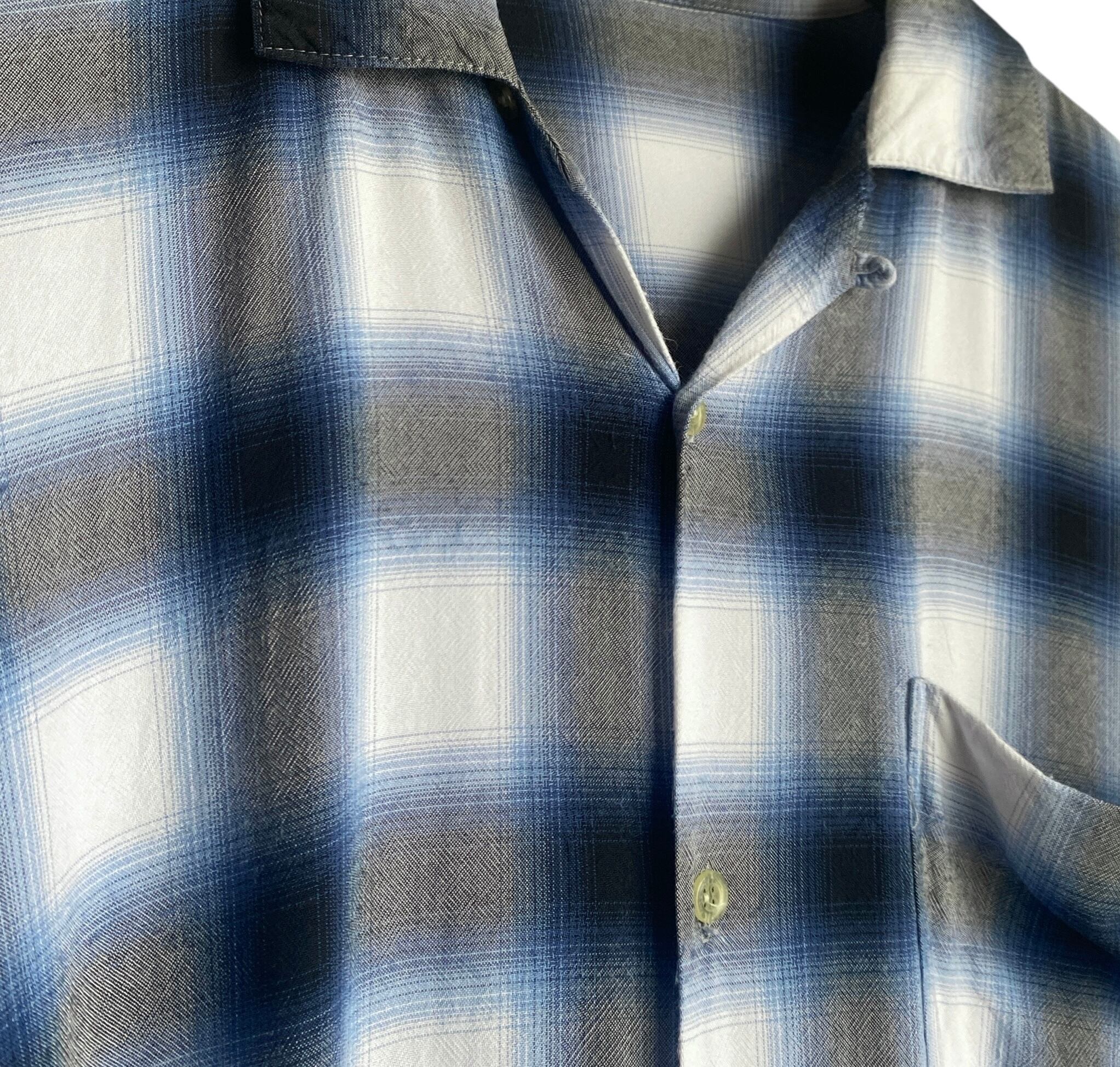 50s60s ombre check rayon open collar shirt