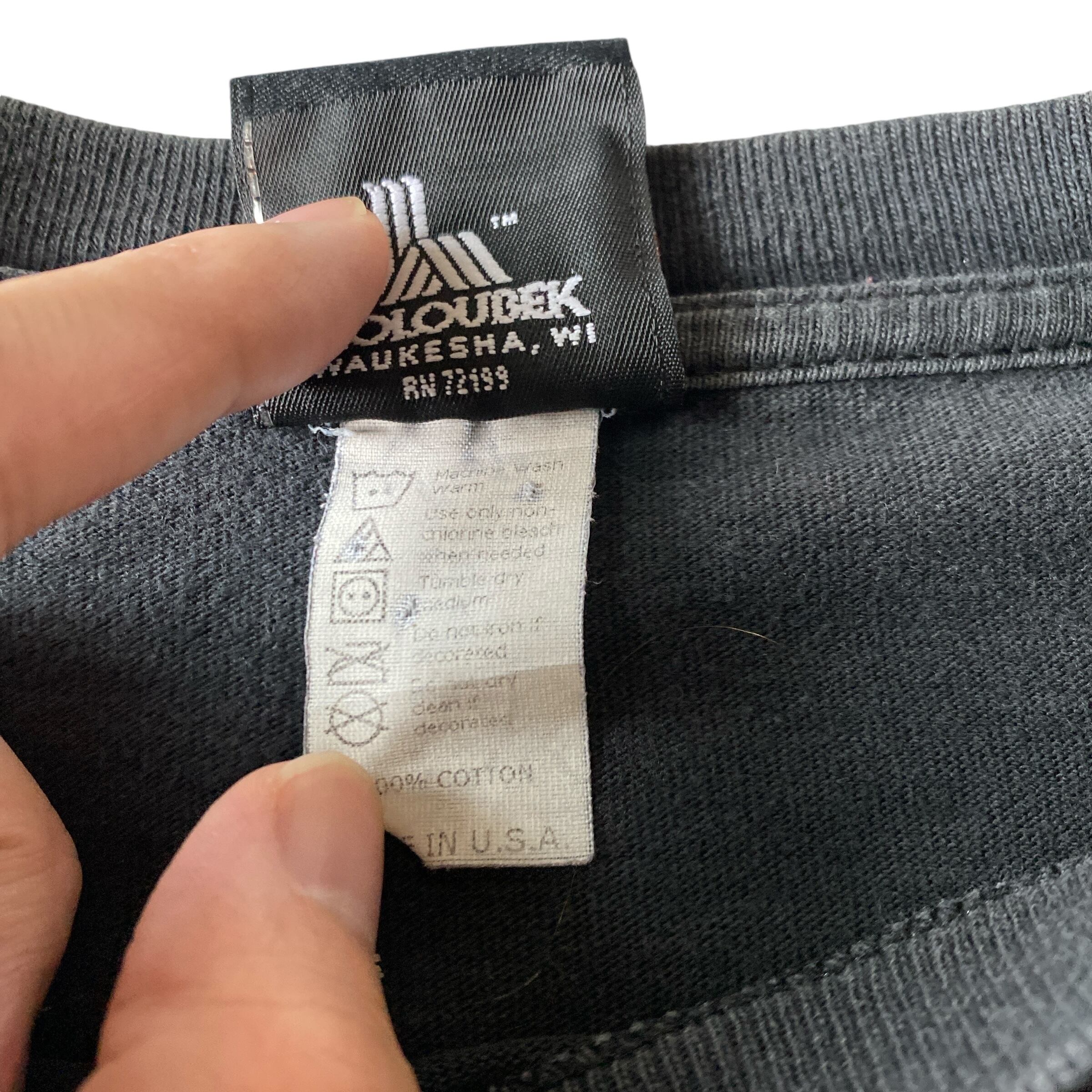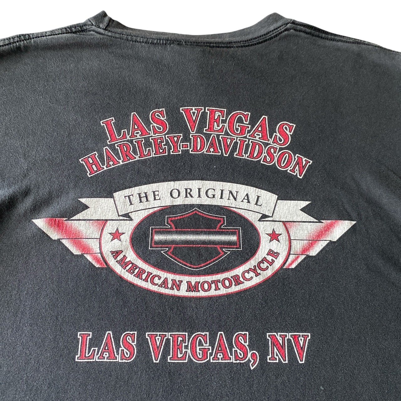 程よくフェードした良い雰囲気のコットン100ブラックボディに、フロントはイーグル×星条旗、バックにはクラシックなロゴデザインと、バランスも良く非常に格好良い一着。