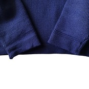 virgin wool100%の目の詰まった重みのある肉厚なウールに、ダークネイビー×ホワイトのシンプルなデザイン、丸みのあるボックス目なシルエットが非常に格好良い一着。