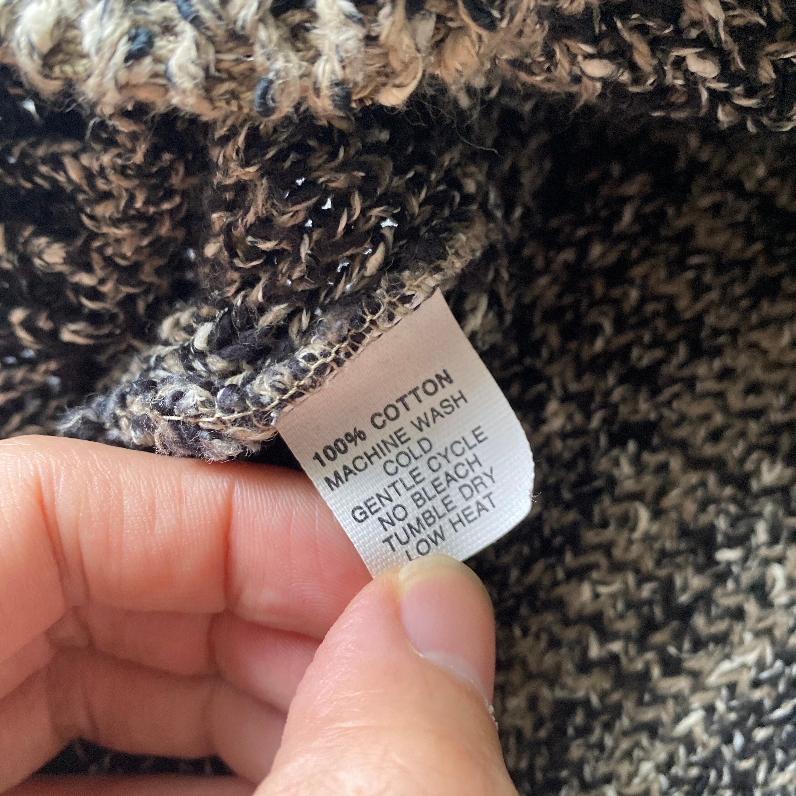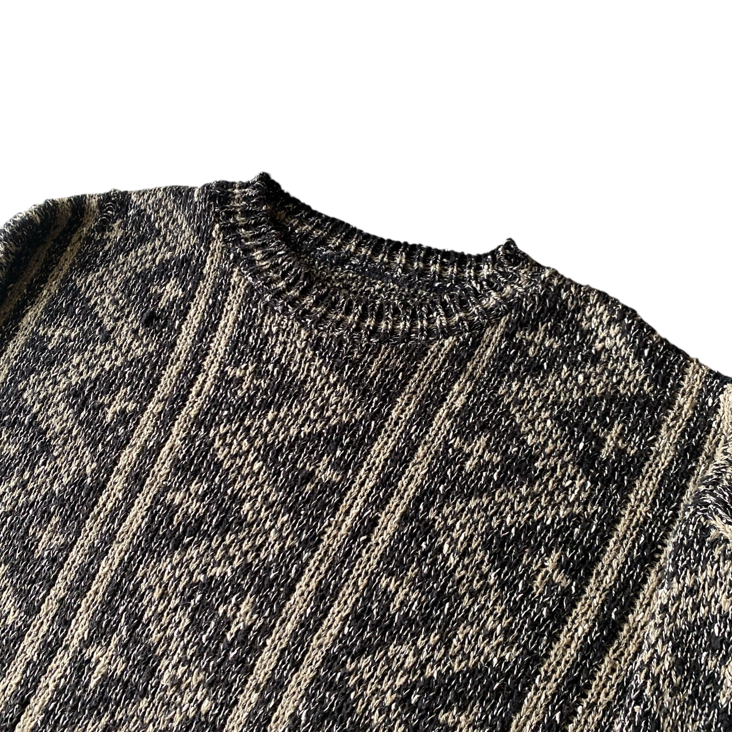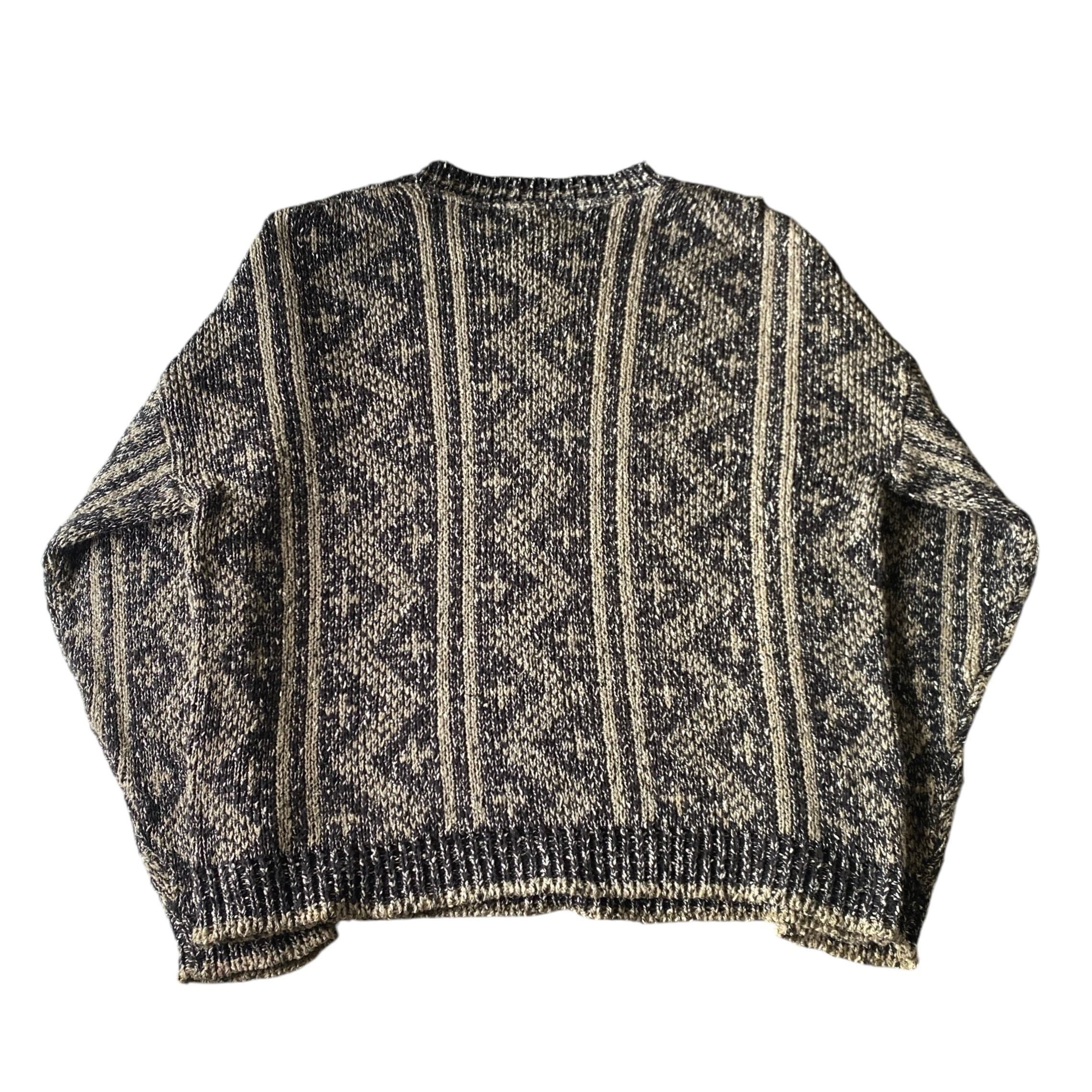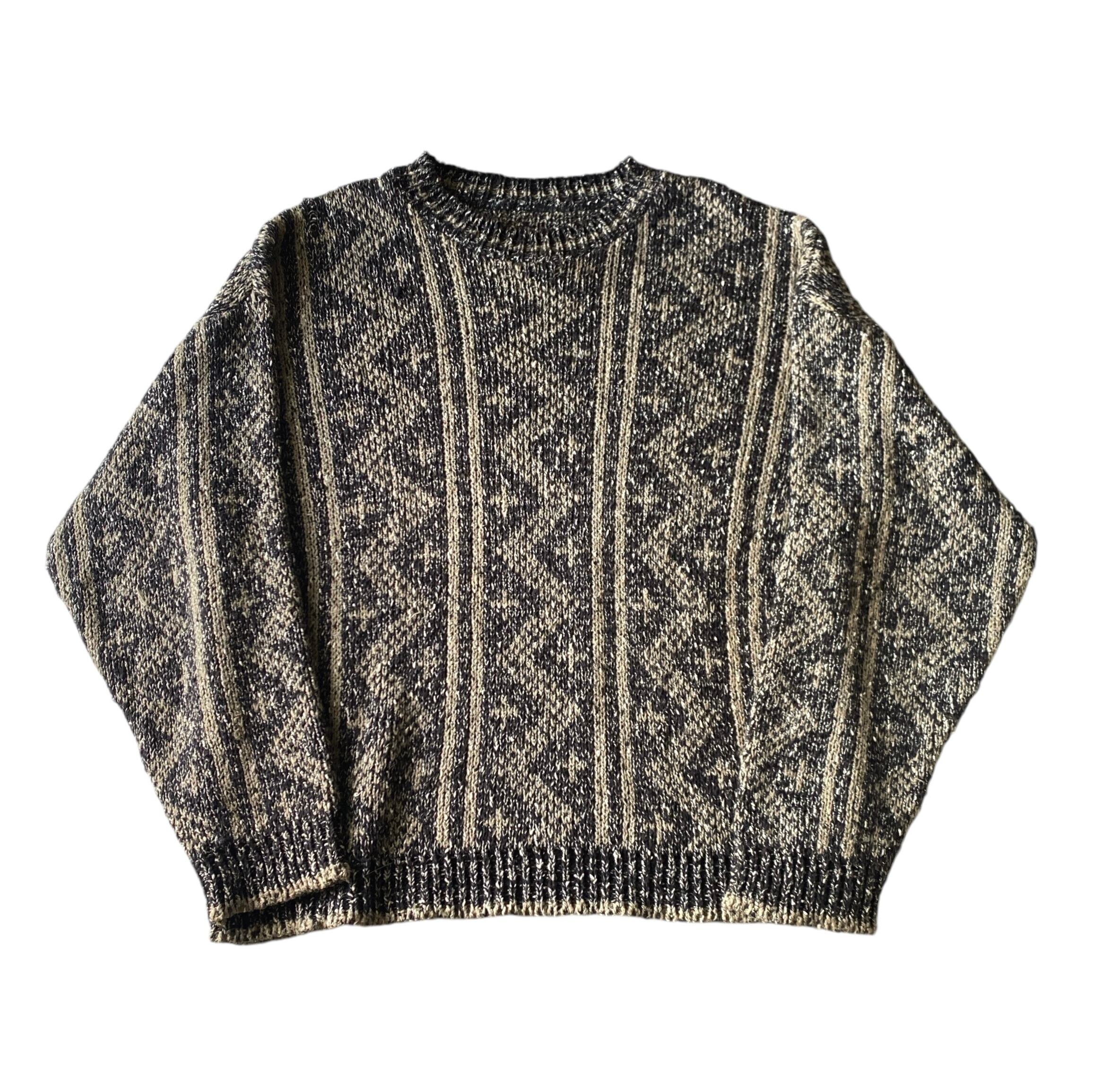 ブランドタグが欠損しておりますが、うちタグの感じから1990年代頃〜のアメリカ物のコットンデザインニットセーターになります。
