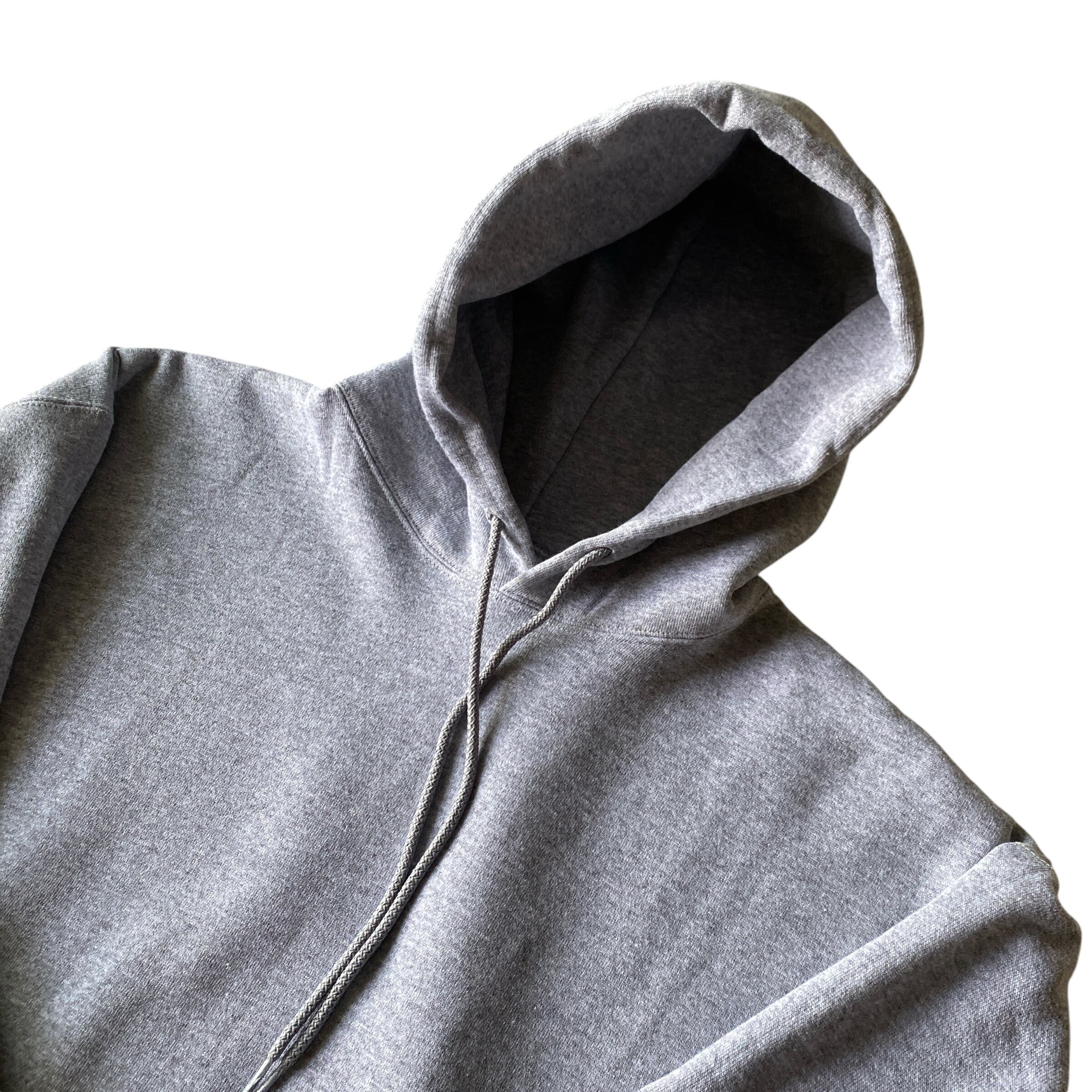 1990年代〜ごろのアメリカ製ファクトリーブランド(rn 128815を調べたところwideworld sportwear?)のブランクスウェットフーディになります。