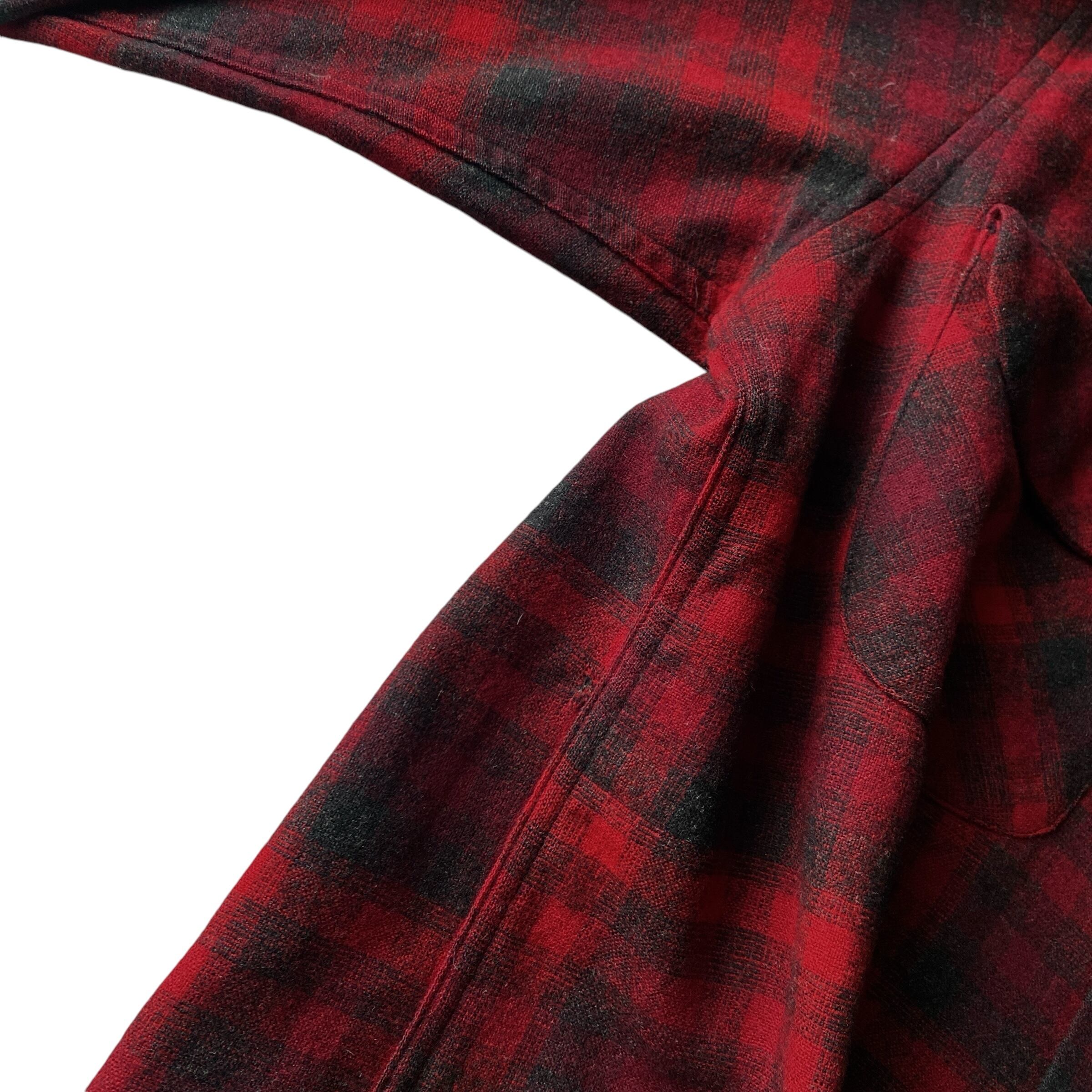 ブラック×レッドの上品なオンブレチェックのカラーリング(実物はもうすこし赤が暗いです)に、ペンドルトンらしいサクッとした薄手のウールの質感が素晴らしい一着。