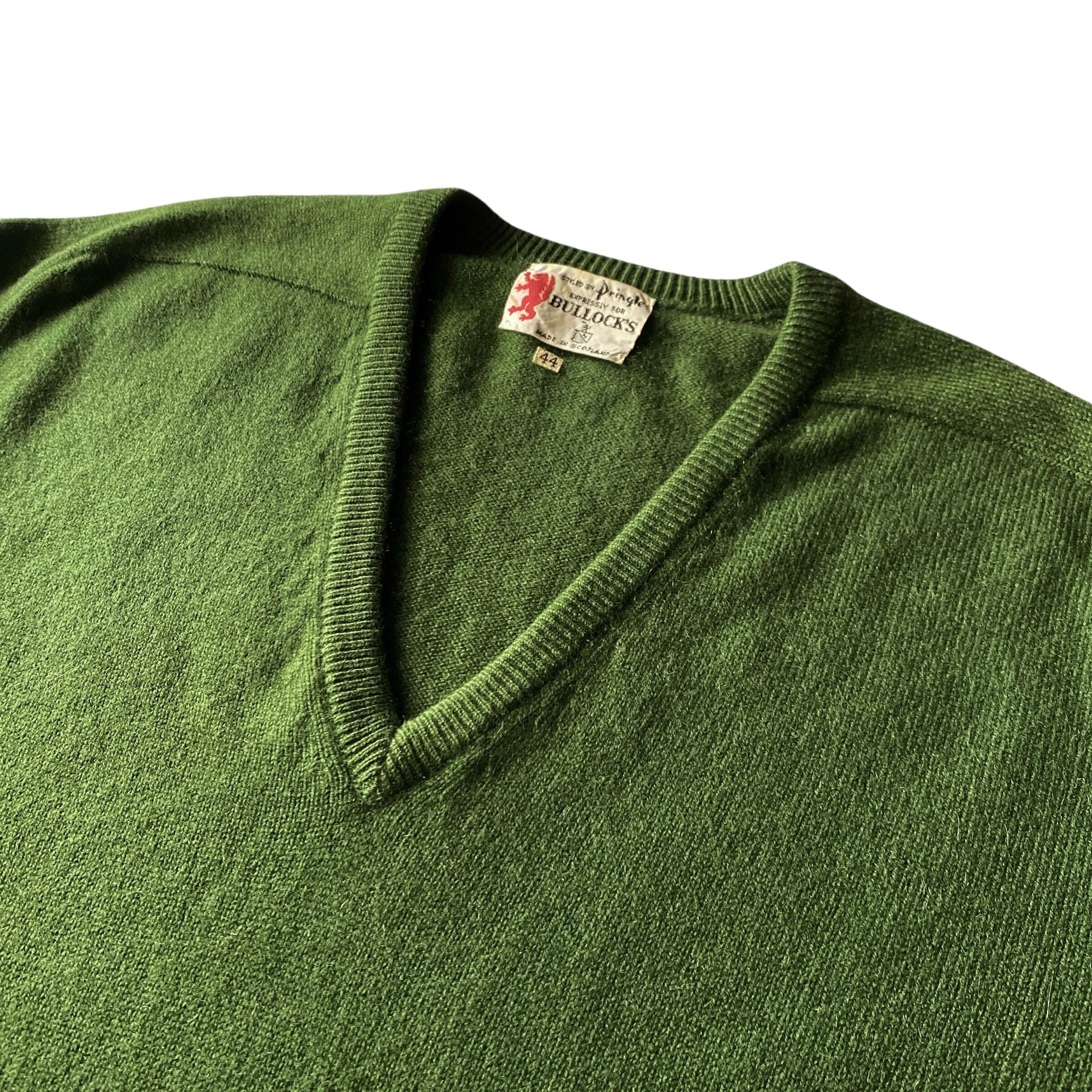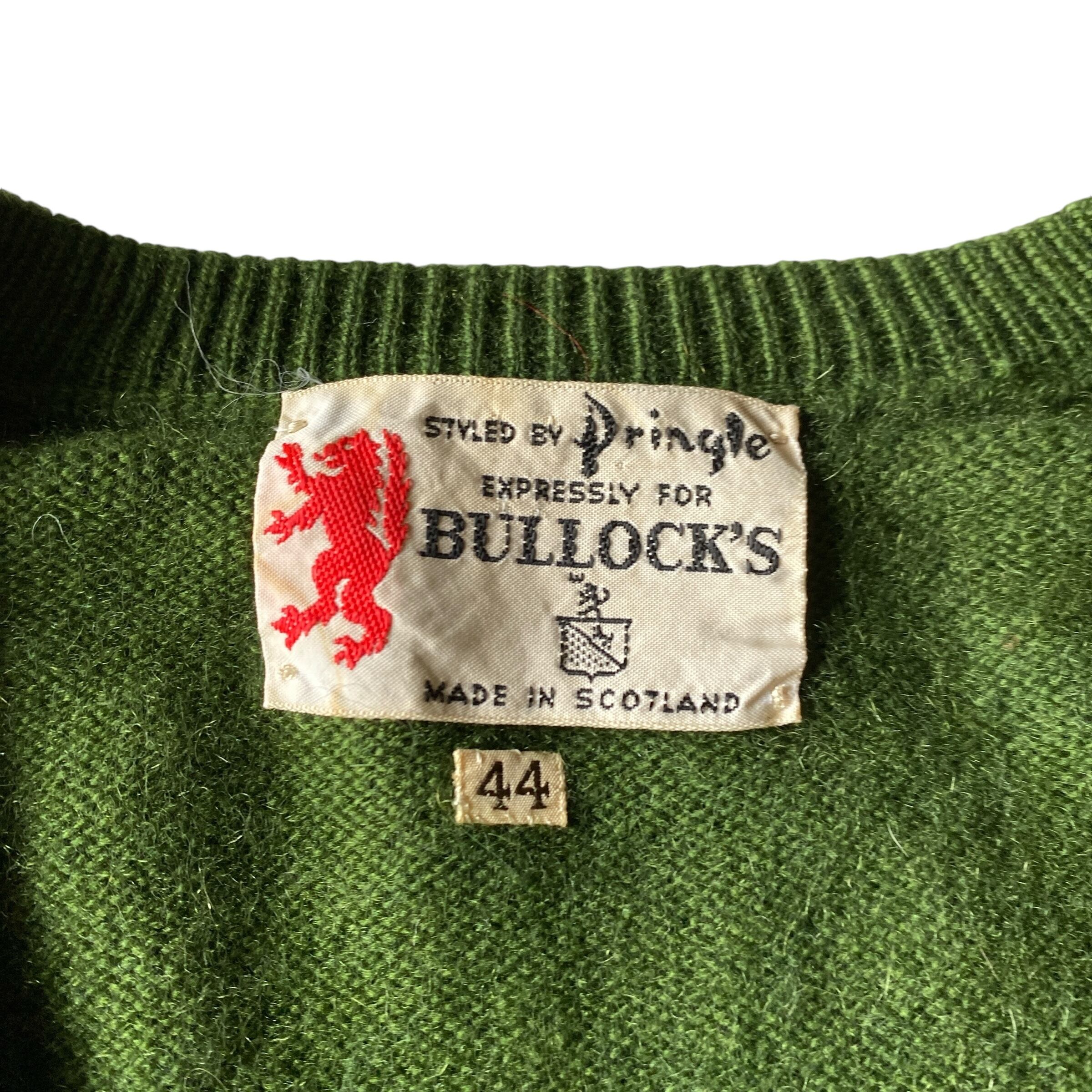 1950-60年代頃のBULLOCK'S by Pringleカシミヤvネックセーターになります。(ブロックスはロサンゼルスの老舗高級百貨店。現在は廃業していると思います。)