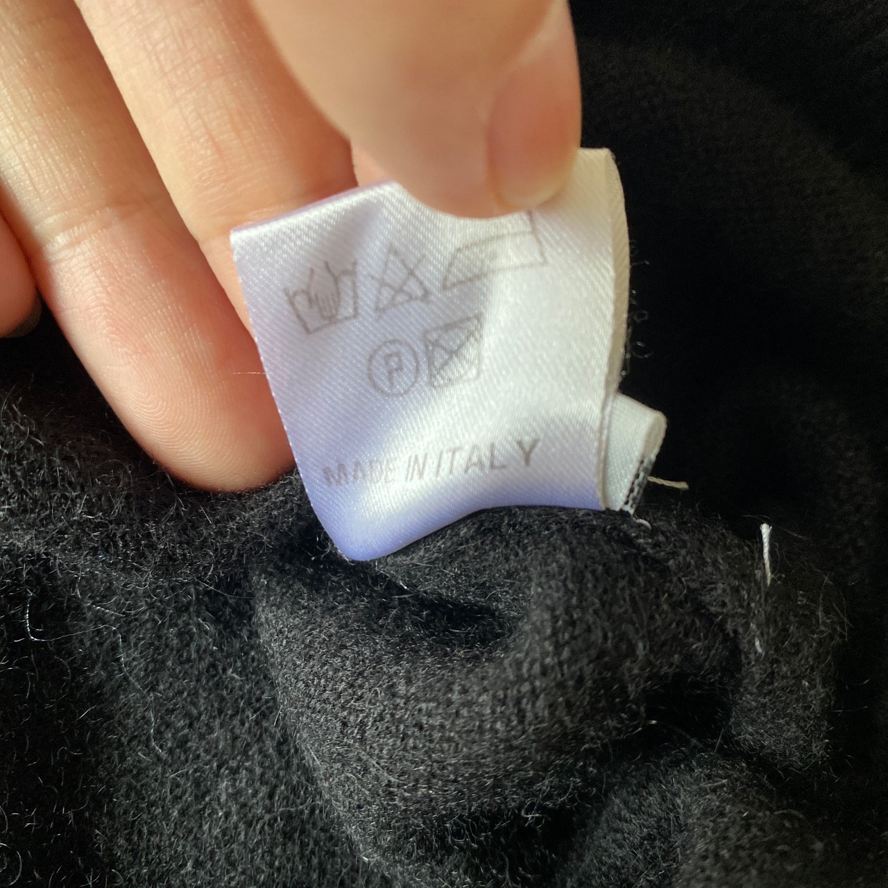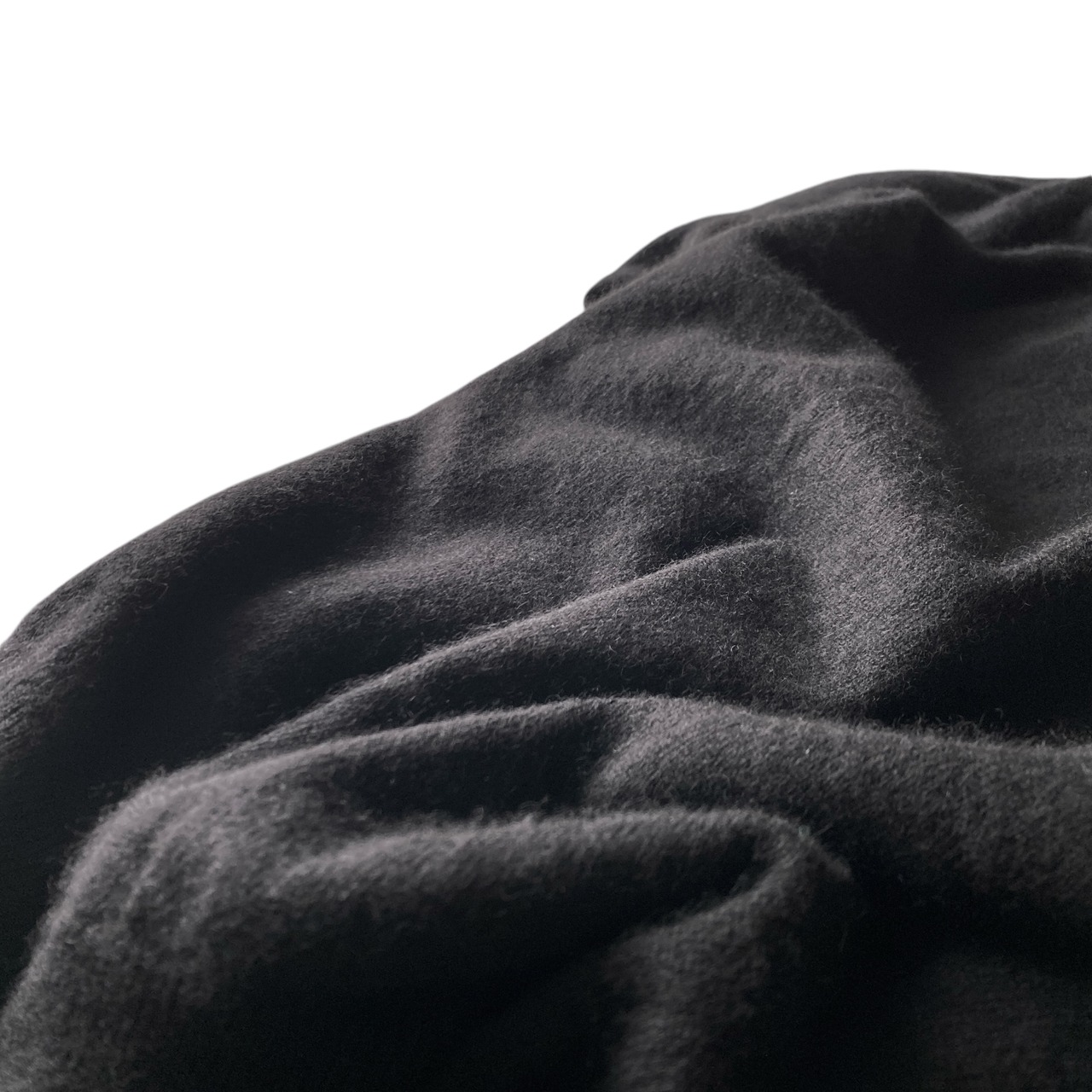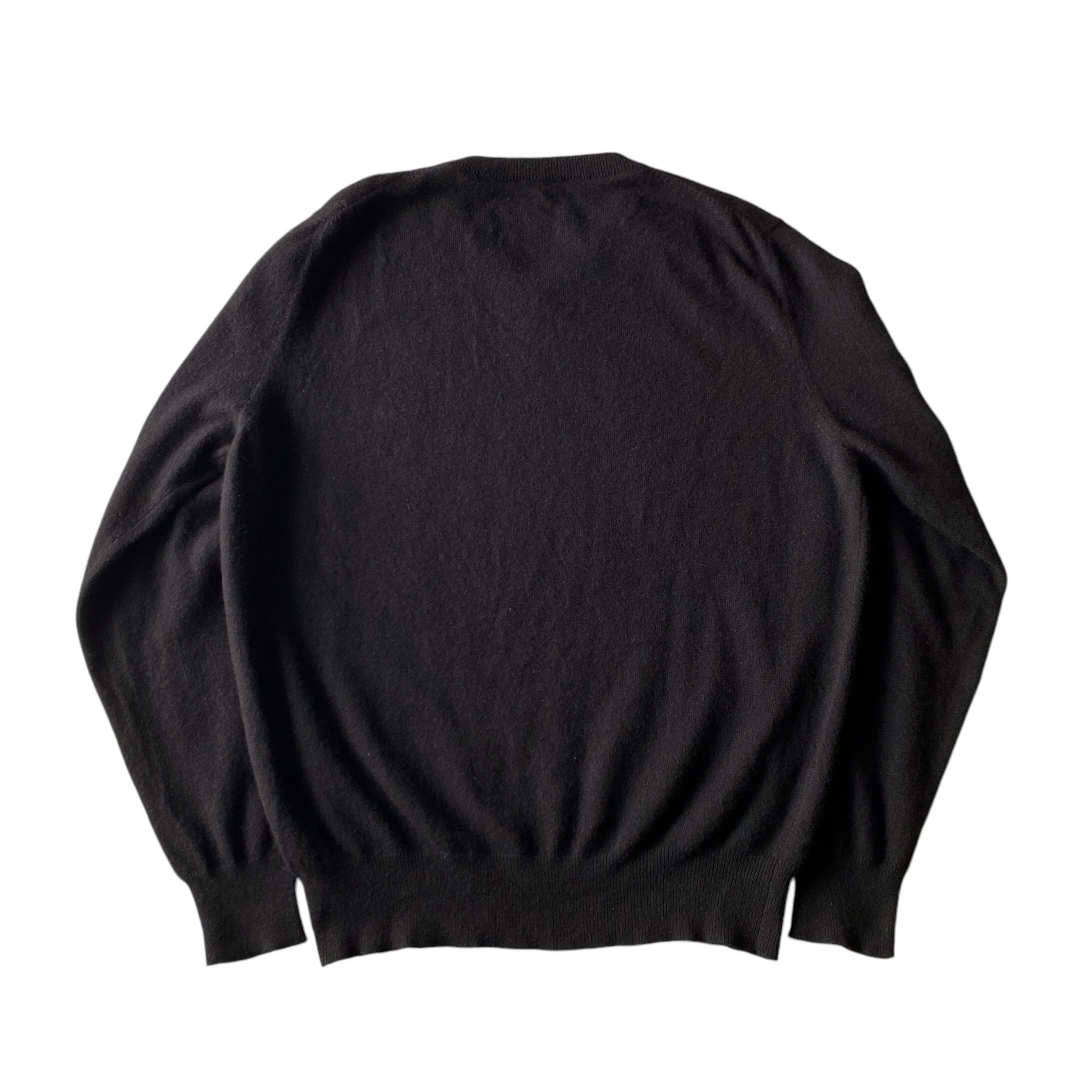 希少なブラックカラーに浅めで着やすいVネックデザイン、程よく肉厚で空気を含んだようなふわっとした上質な手触りのカシミヤ生地が非常に素晴らしい一着。