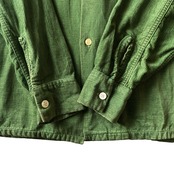 やや褪せたグリーンに、着込まれて柔らかくなった生地の雰囲気が最高です。