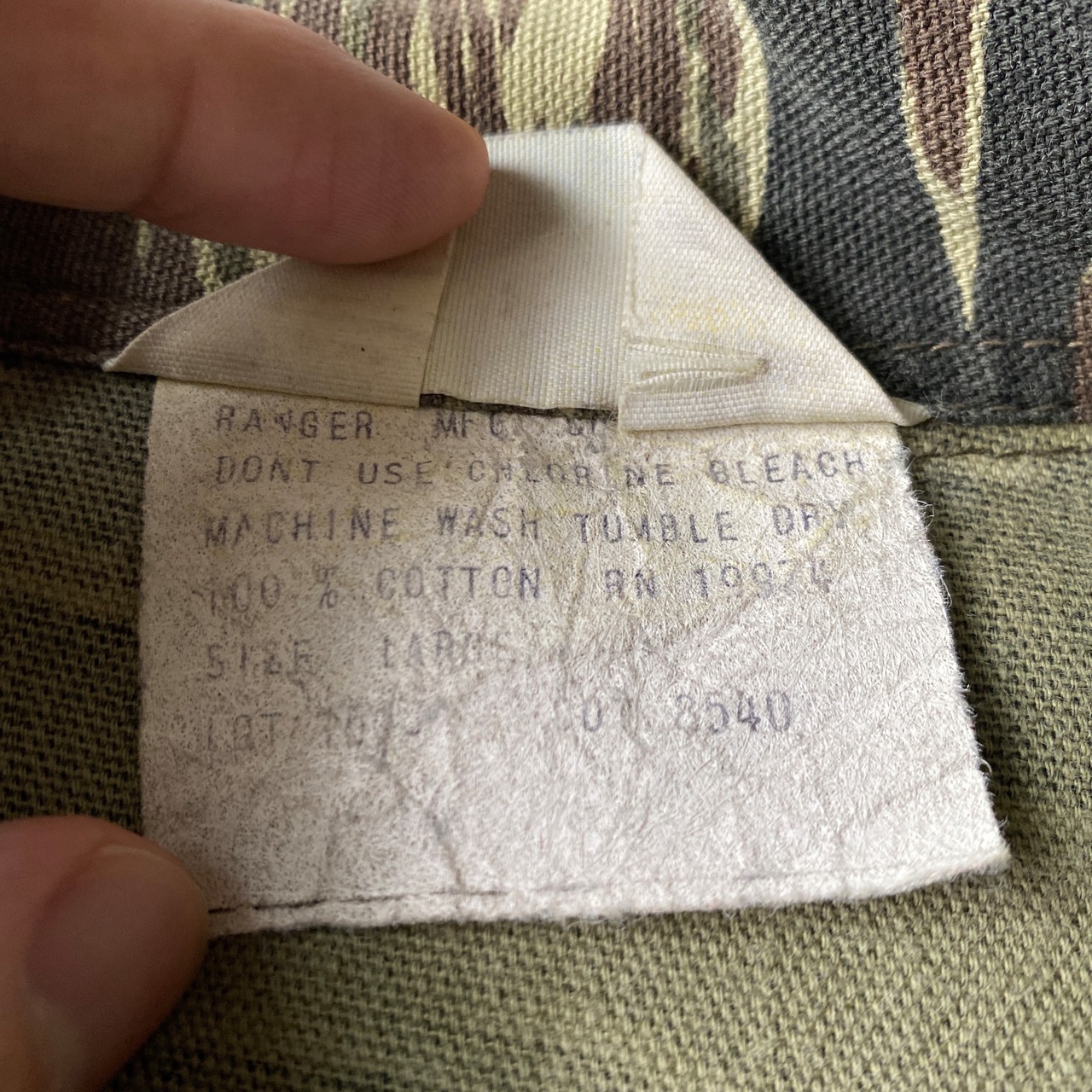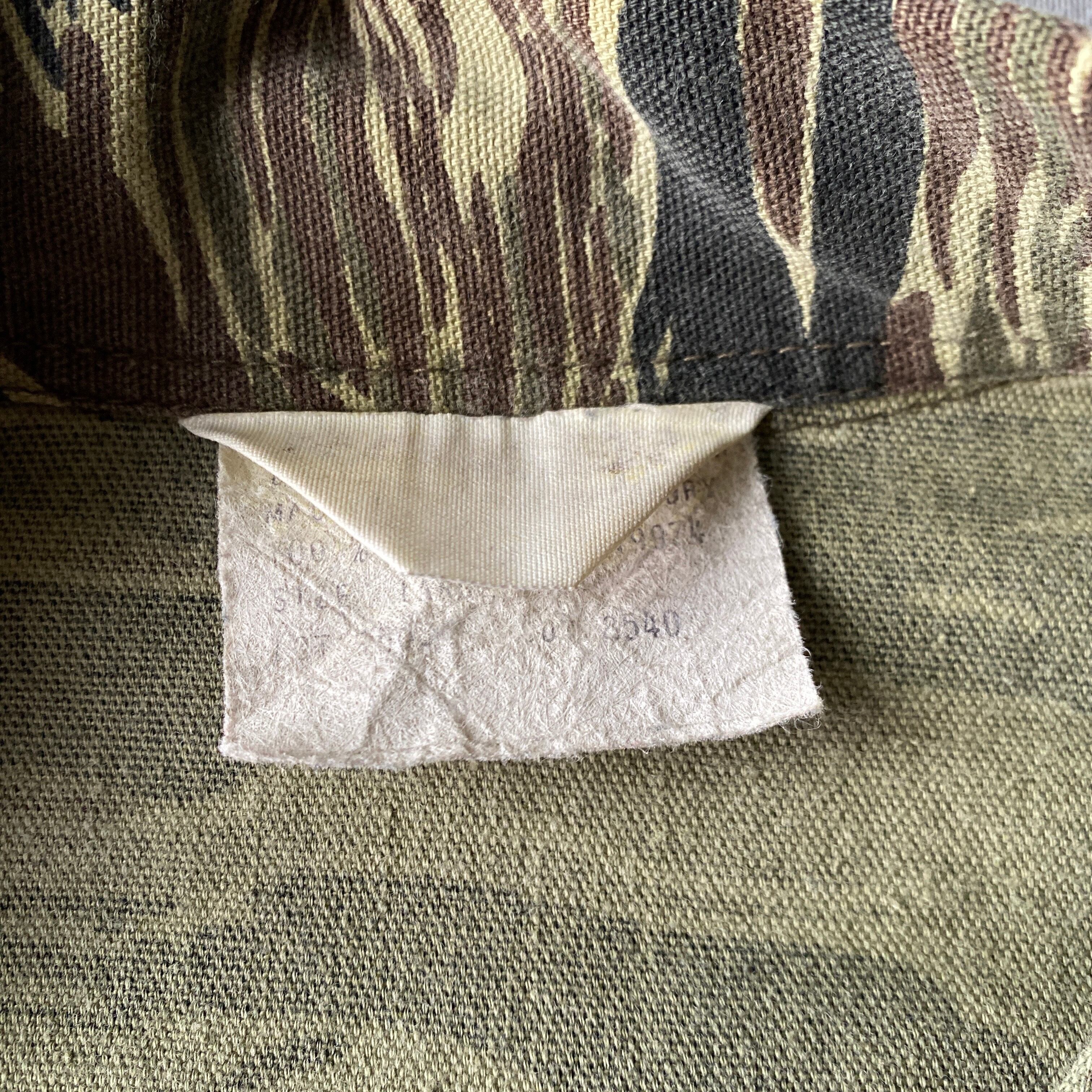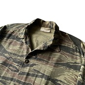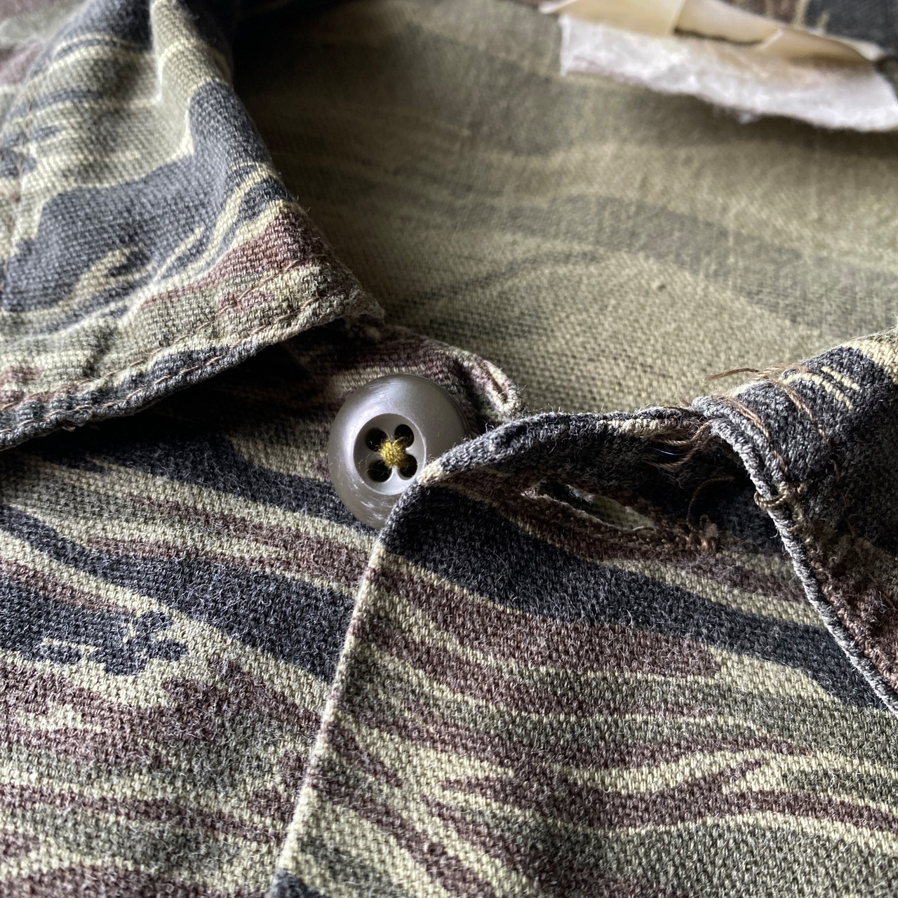 このタイプだと少し珍しい小さめ襟のオープンカラーに、タイガーカモ柄、ゆったりとした短丈ボックスシルエットが非常に格好良い一着。
