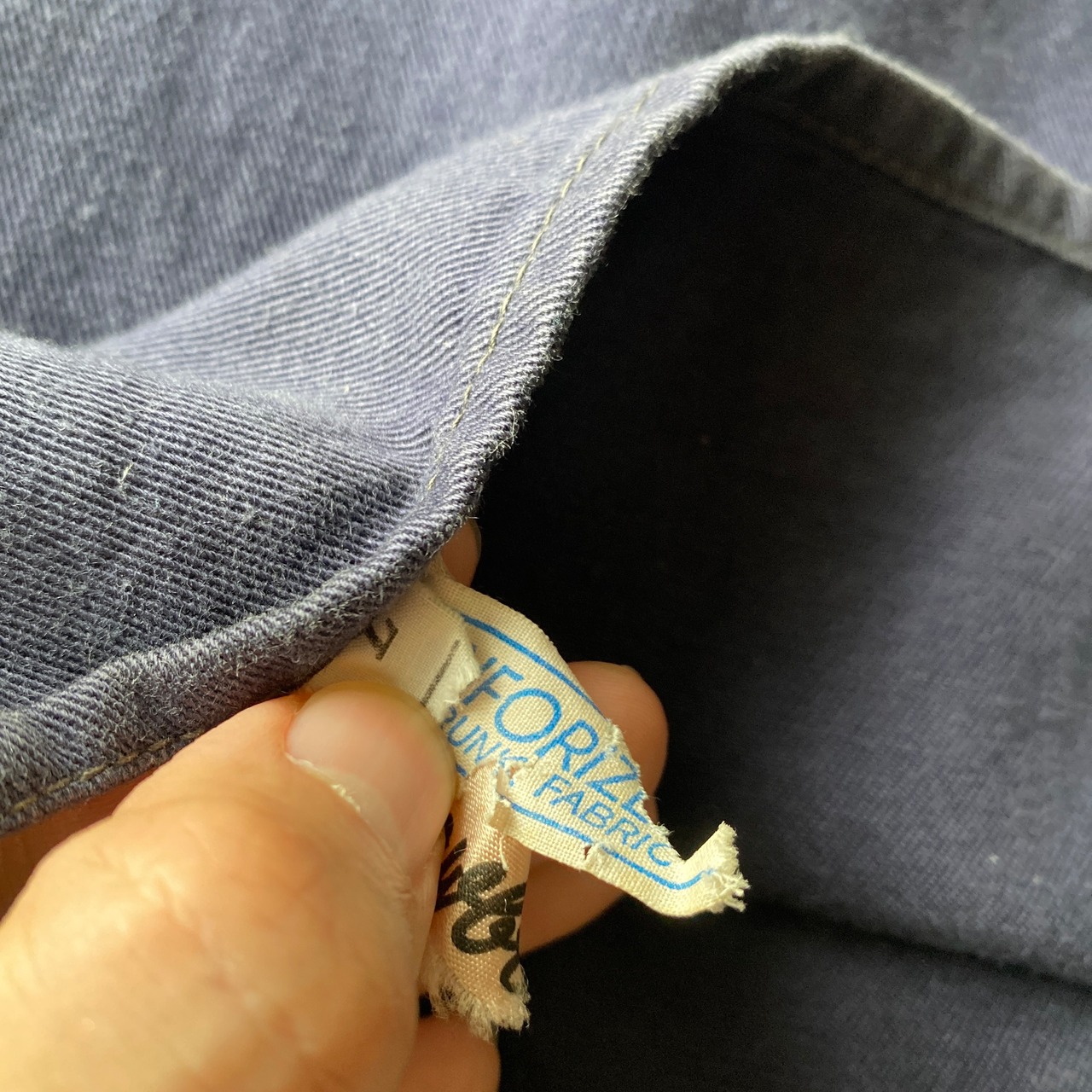1950〜60年代ごろのイギリスヴィンテージフィッシャーマンスモックになります。(ブランド名は切れていて読めませんが、SANFORIZED SHRUNK FABRICのタグがつくので、50-60で間違いないと思います)