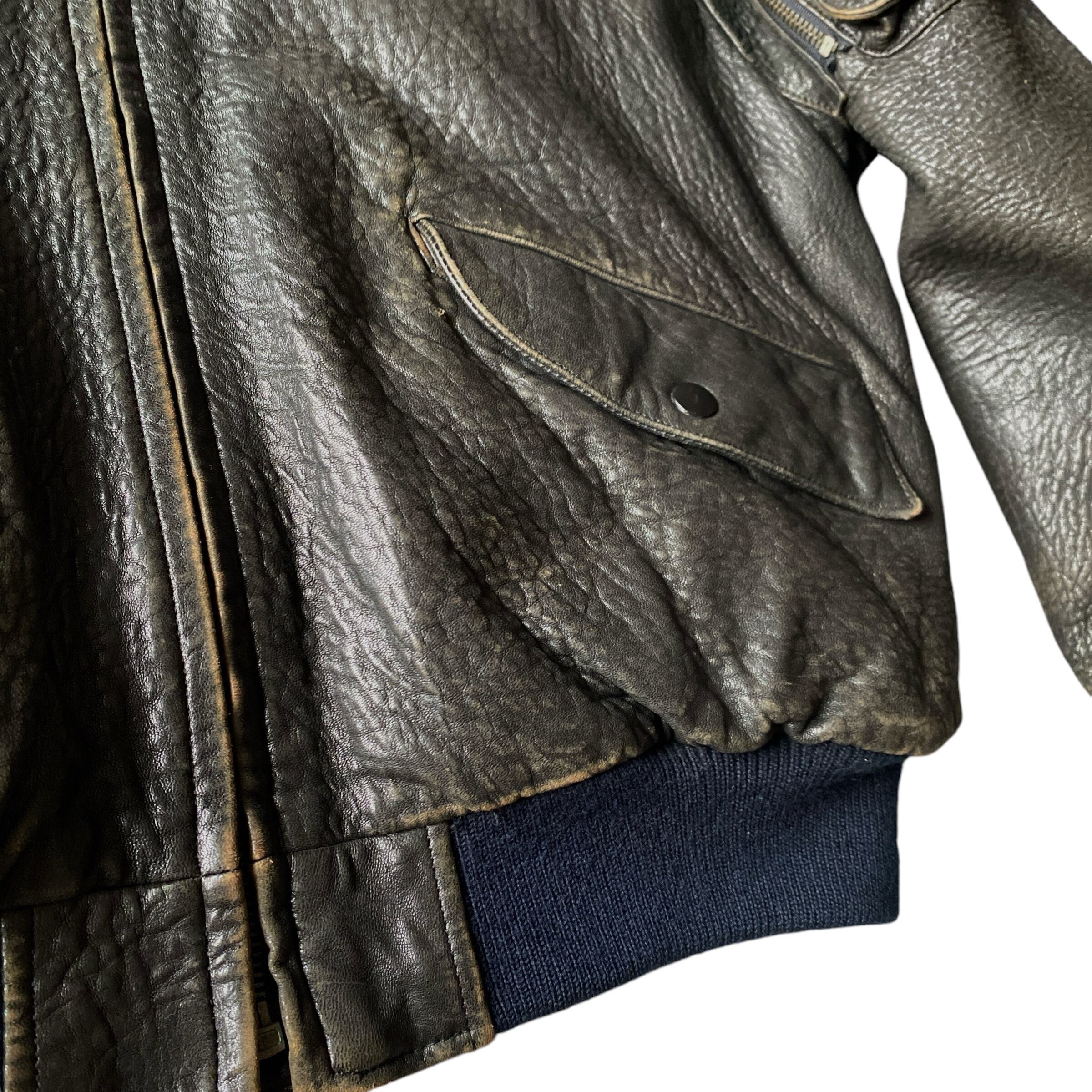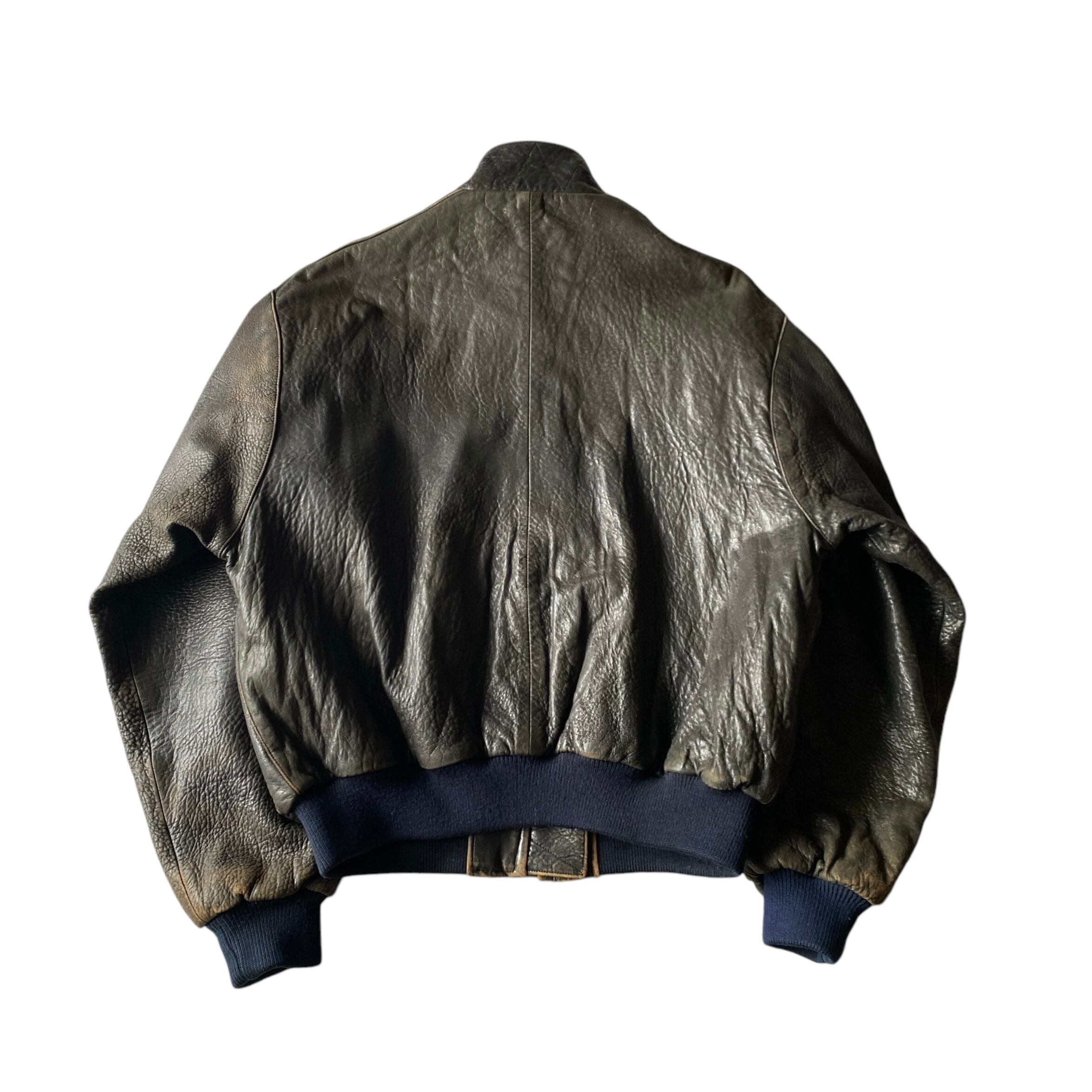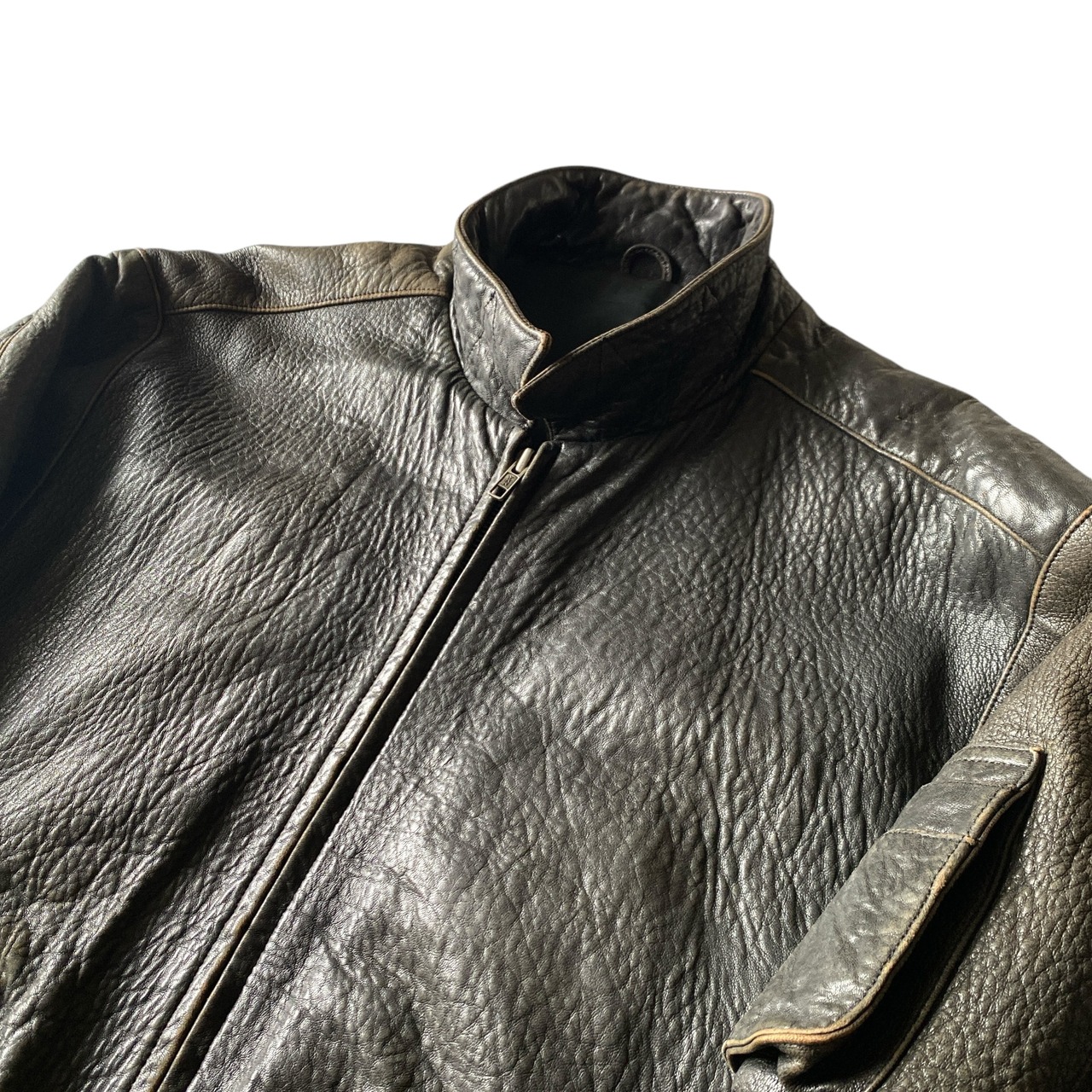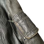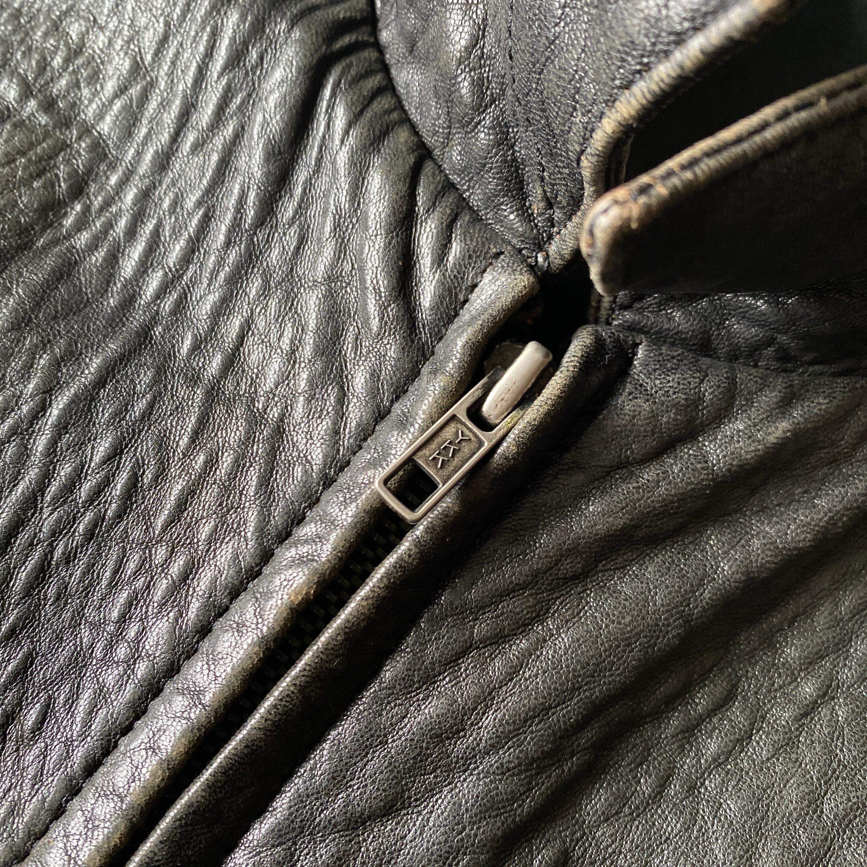 肉厚でシボ感が強く、モチッと柔らかな極上のラムレザーに、ヴィンテージ感溢れるエイジング、フライトジャケットのようなしっかり肩の落ちる短丈ボックスな丸みのあるシルエットが非常に格好良い一着。