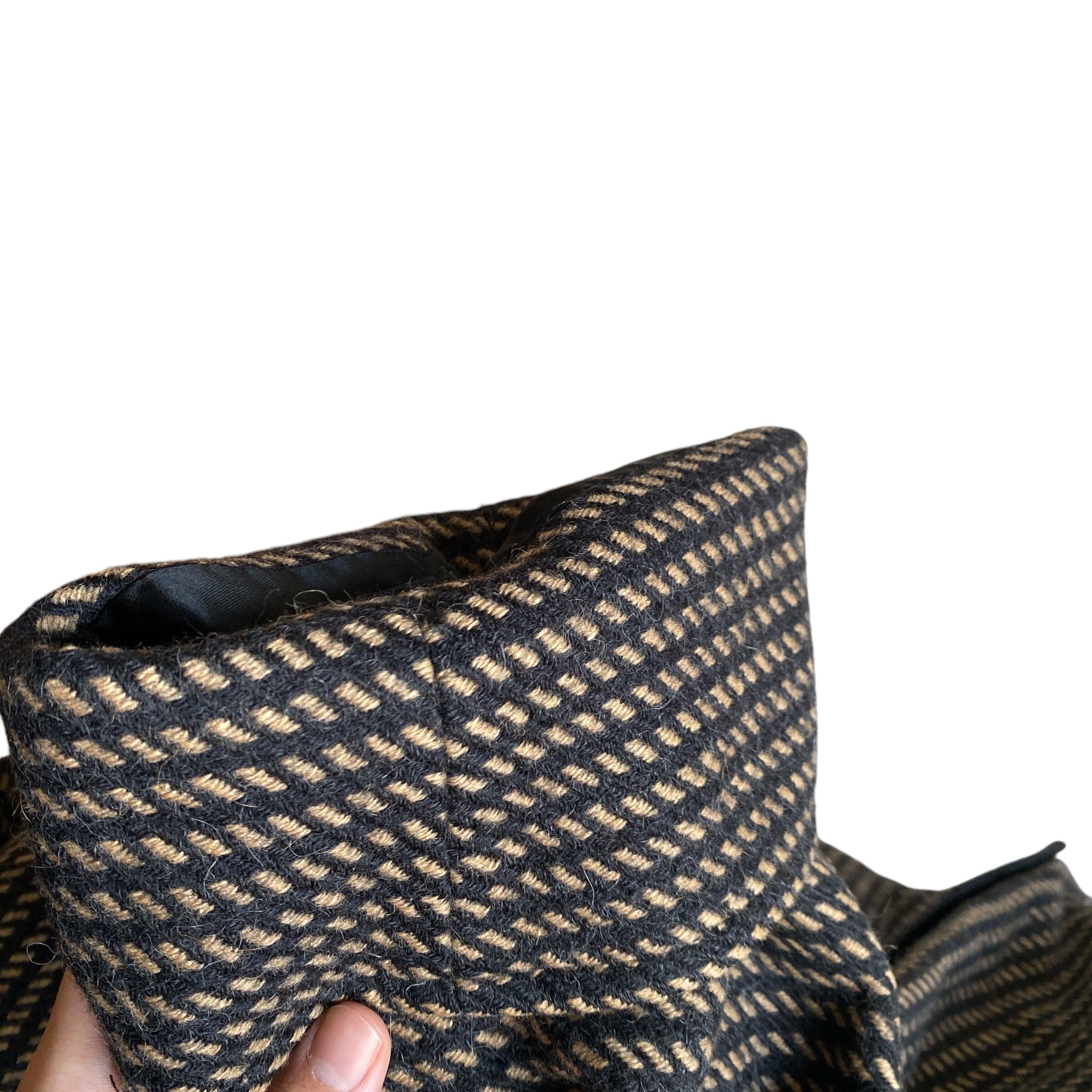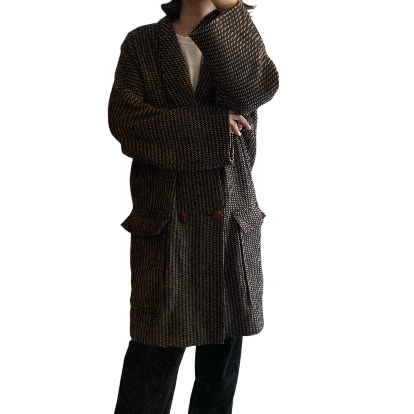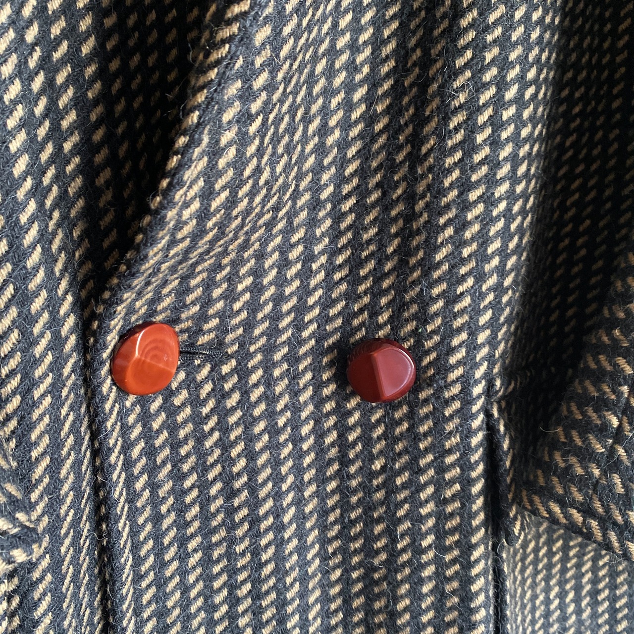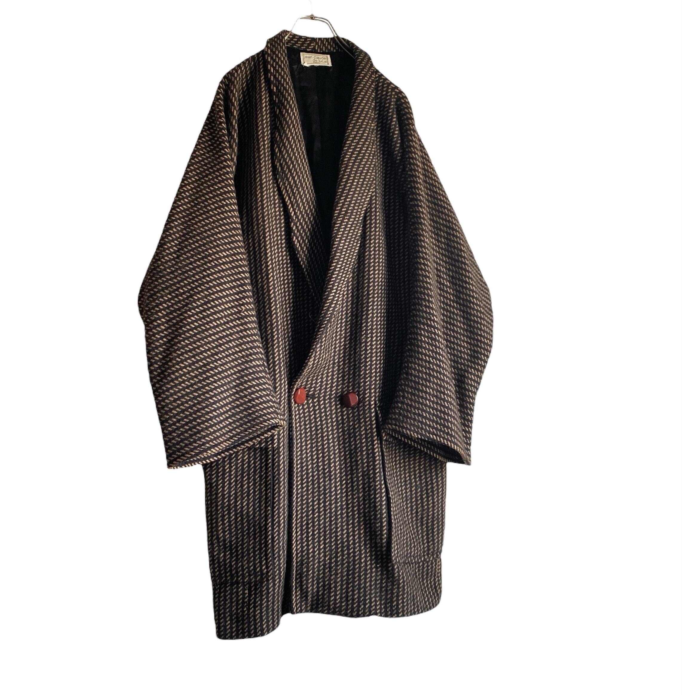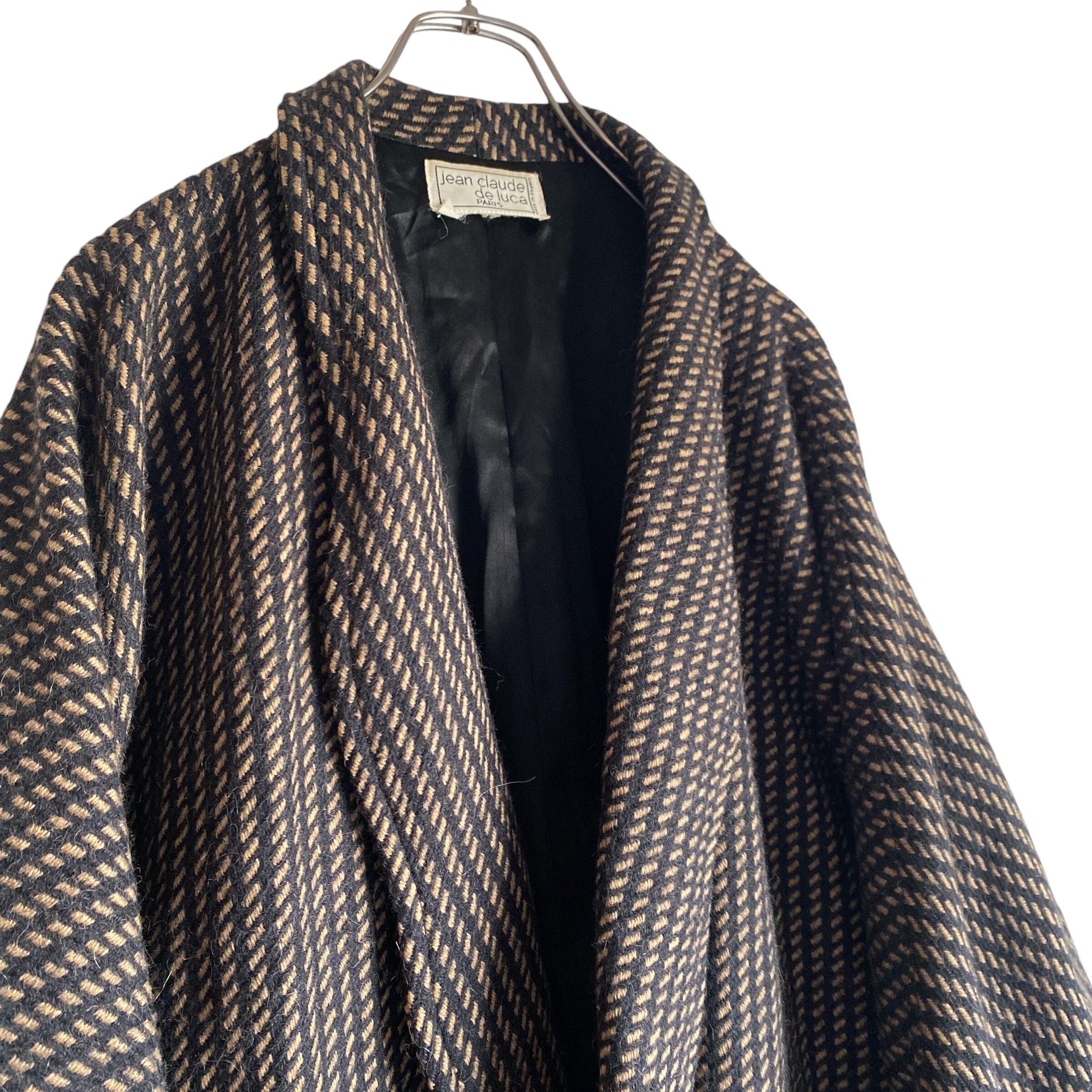 どこか和服を彷彿とさせるような、大判な用尺とドルマンスリーブを採用した美しいシルエット、品質タグが欠損しておりますが、おそらくウールモヘア素材の肉厚で織柄が効いたファブリックが大変素晴らしい一着。