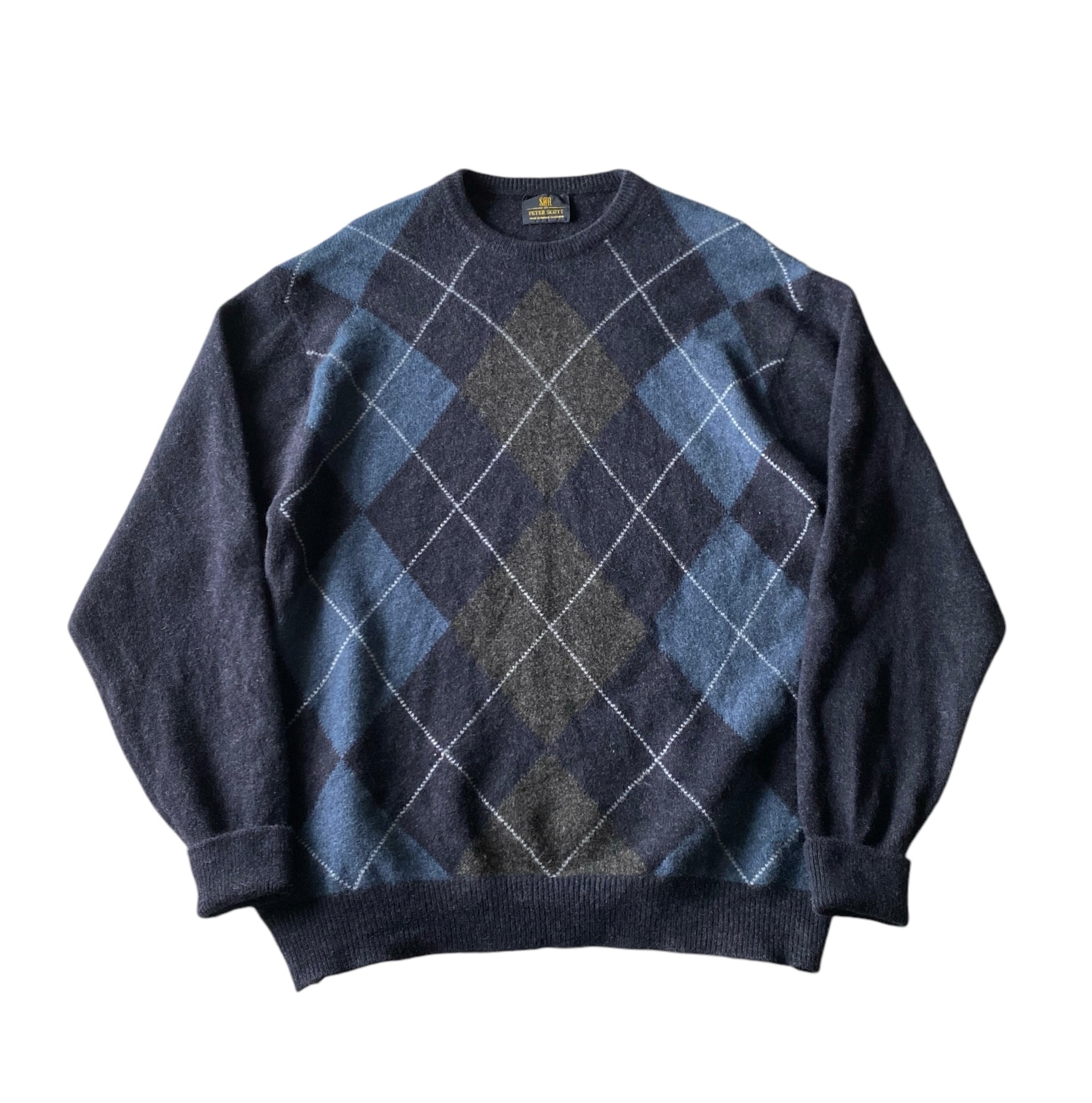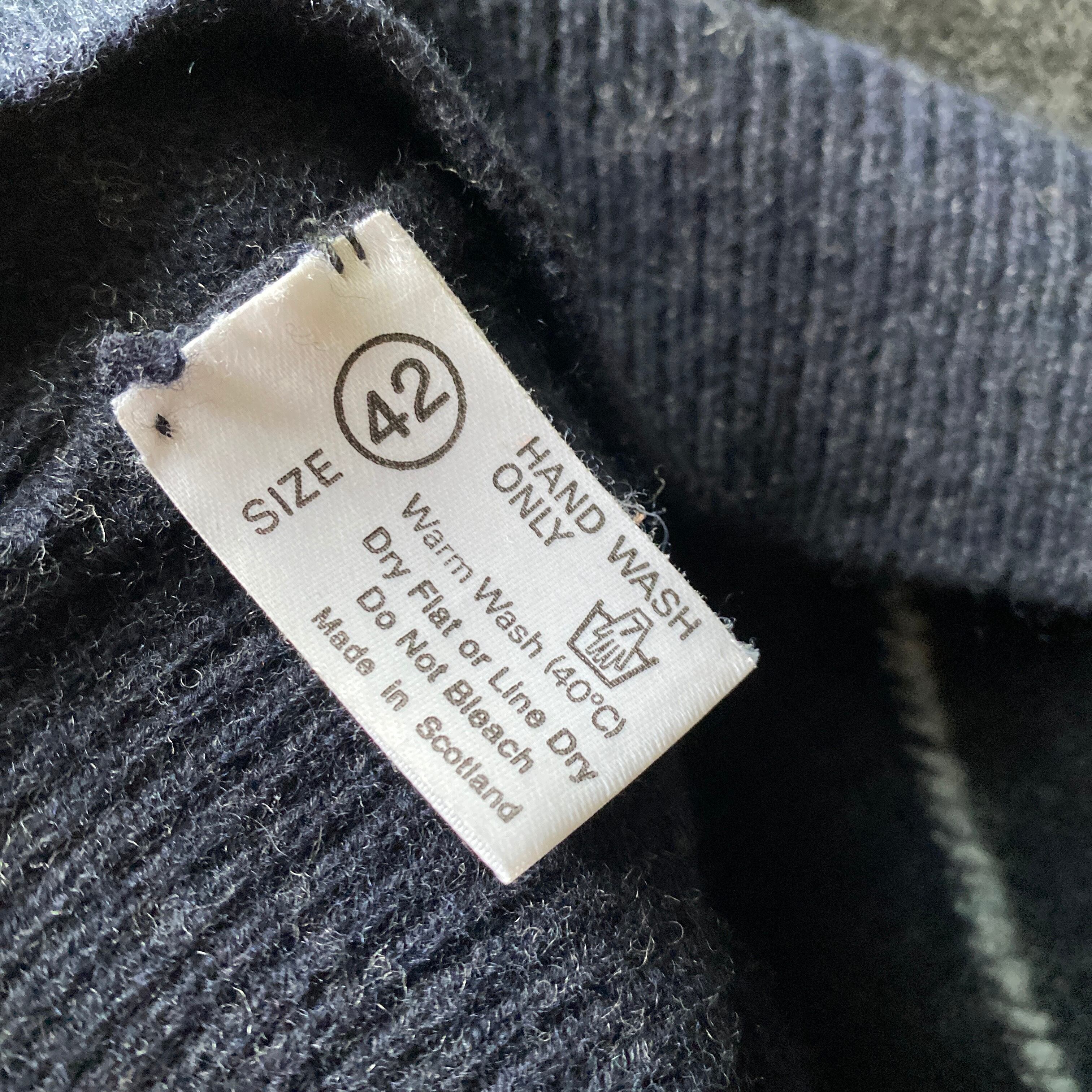 1980年代頃のスコットランド製イエーガーカシミアVネックセーターになります。(1884年創業イギリスの老舗ニットメーカー)
