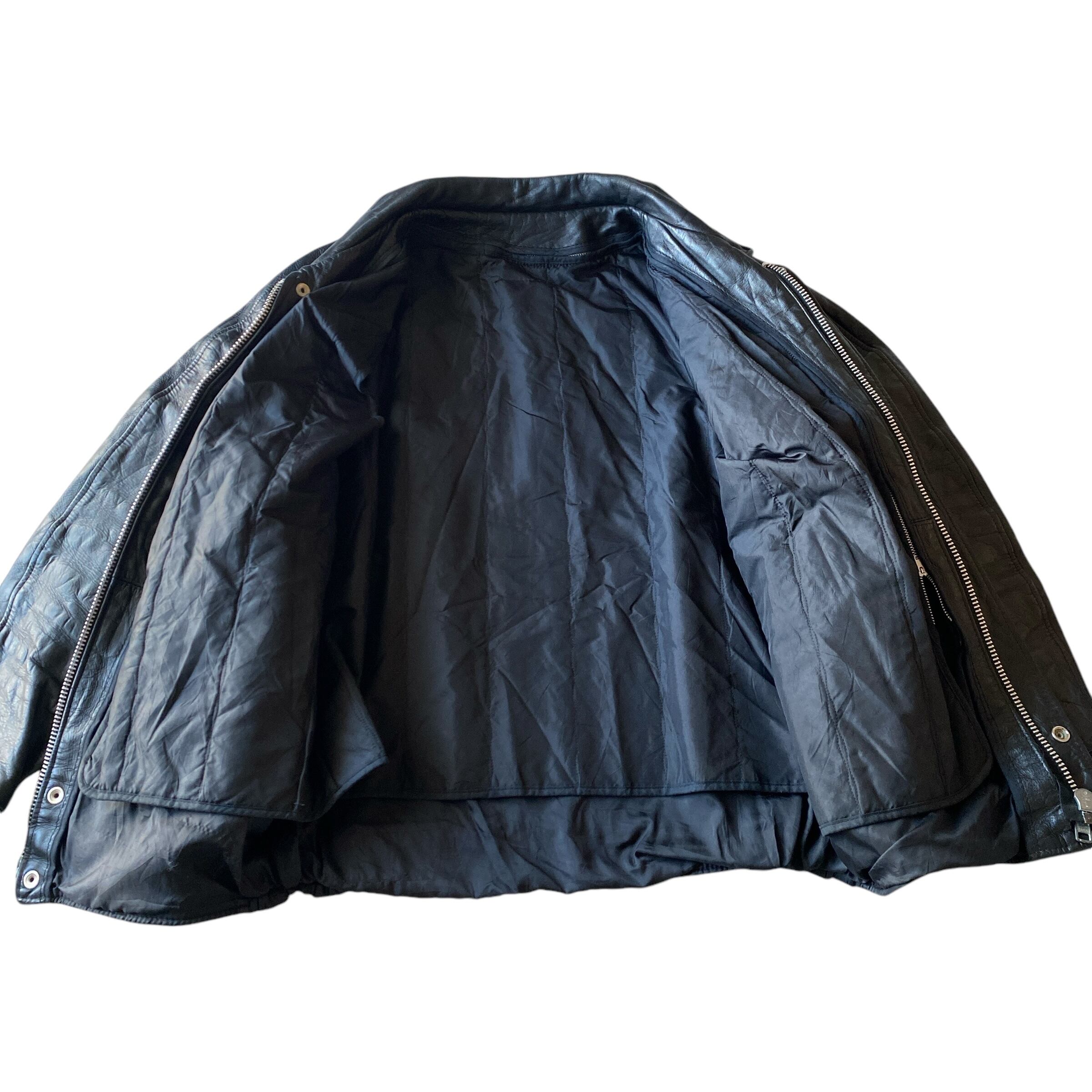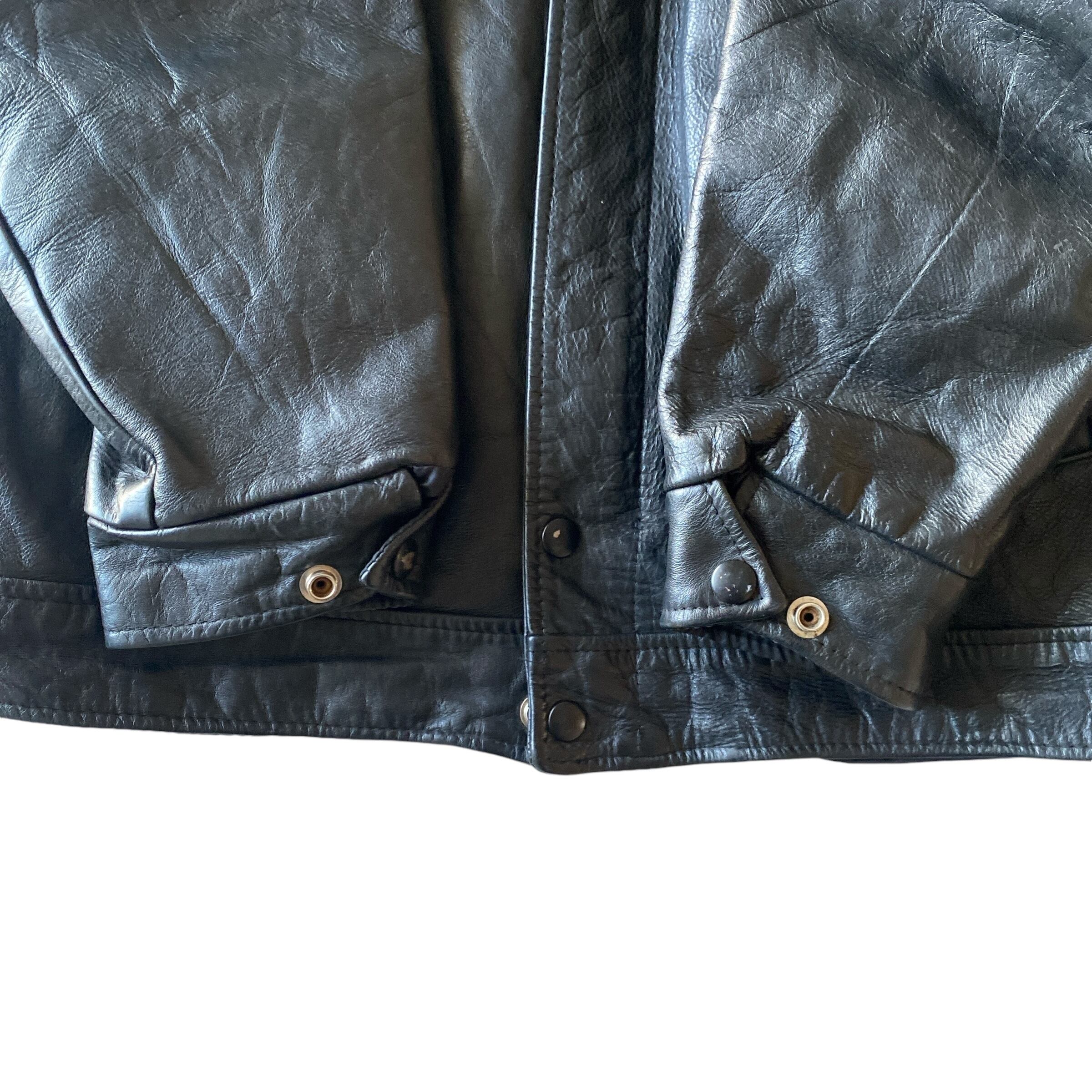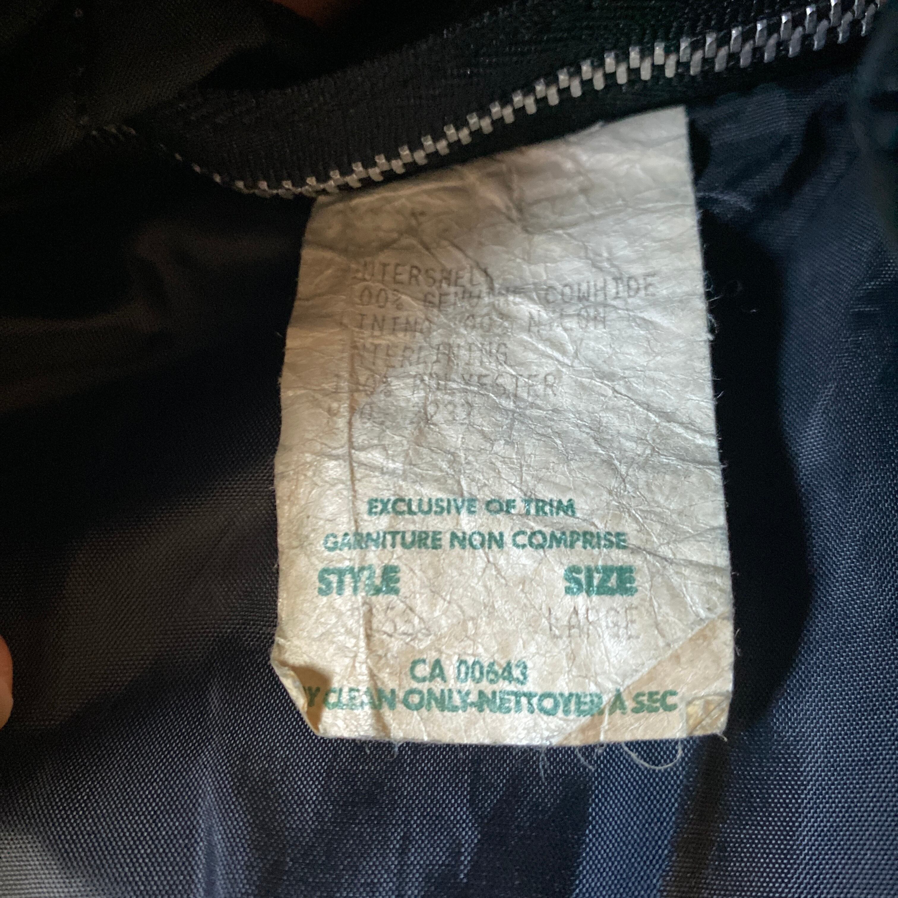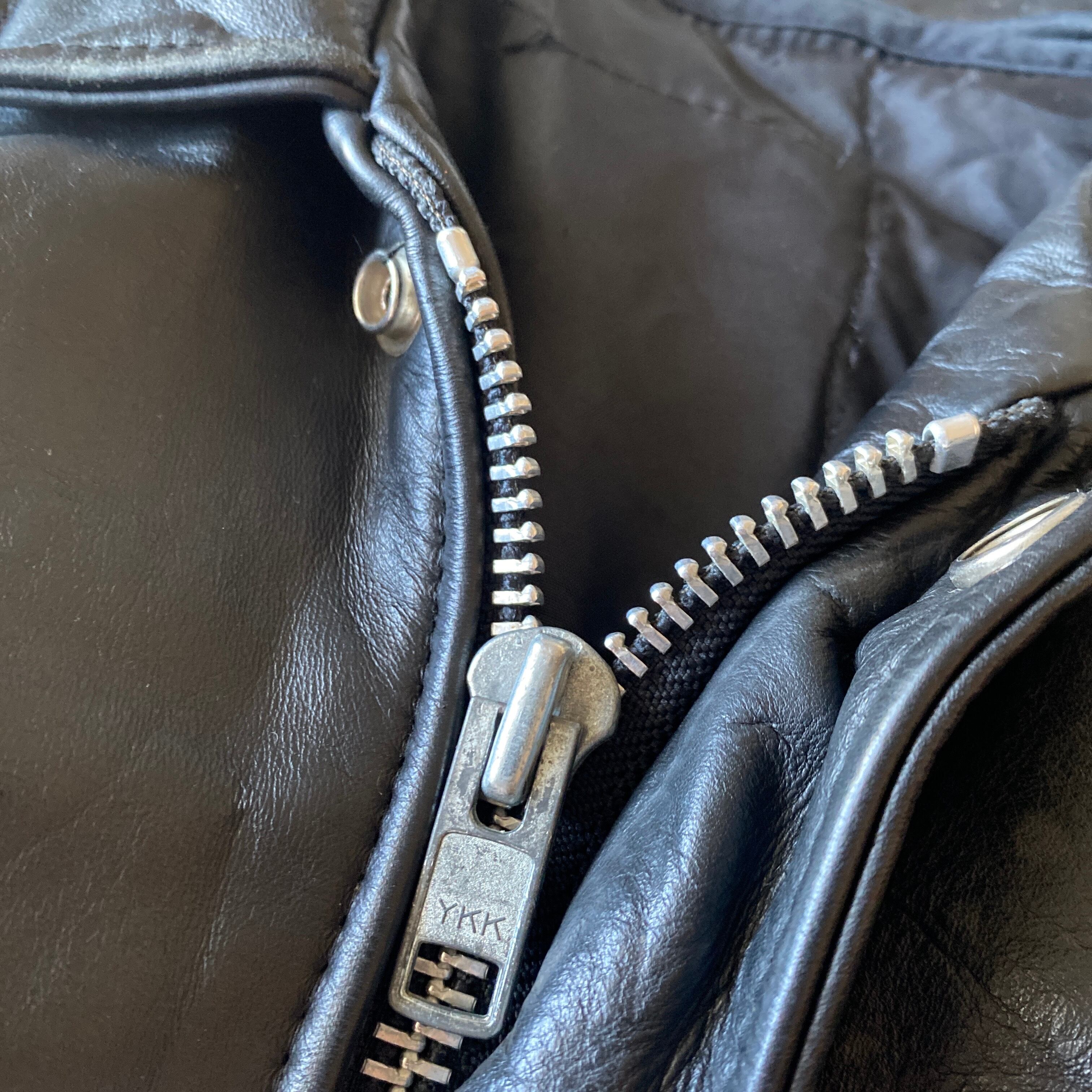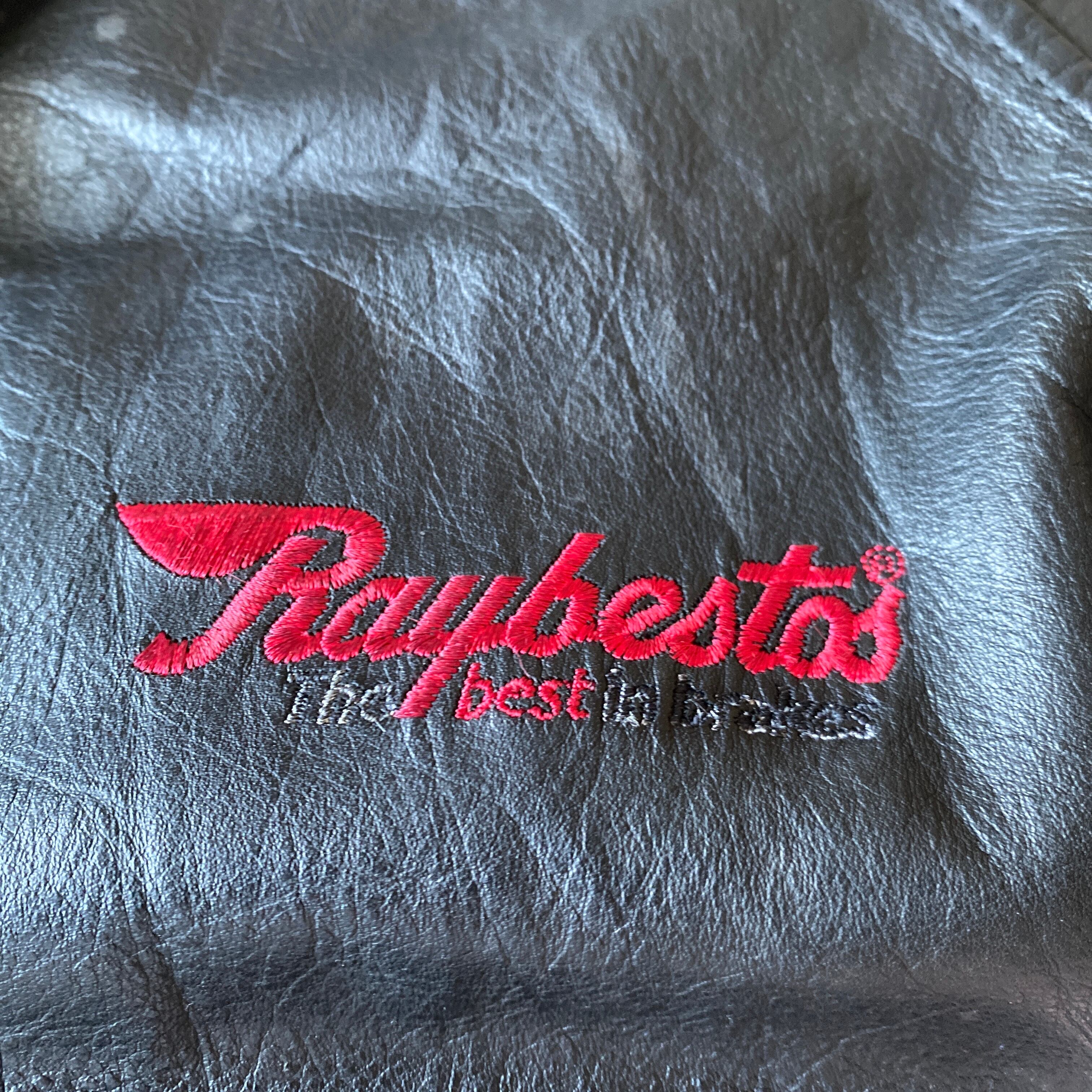 〜1990年代頃のカナダ製企業刺繍ロゴレザージャケットになります。(CAから始まるレジスターナンバーなのと、RAYBESTAというカナダのレーシング系カーパーツメーカーの刺繍なのでカナダ製で間違いないかと)